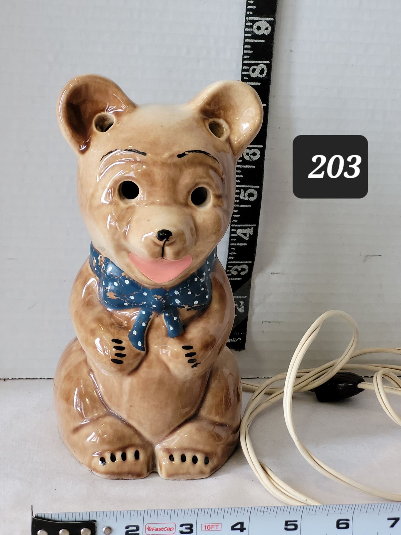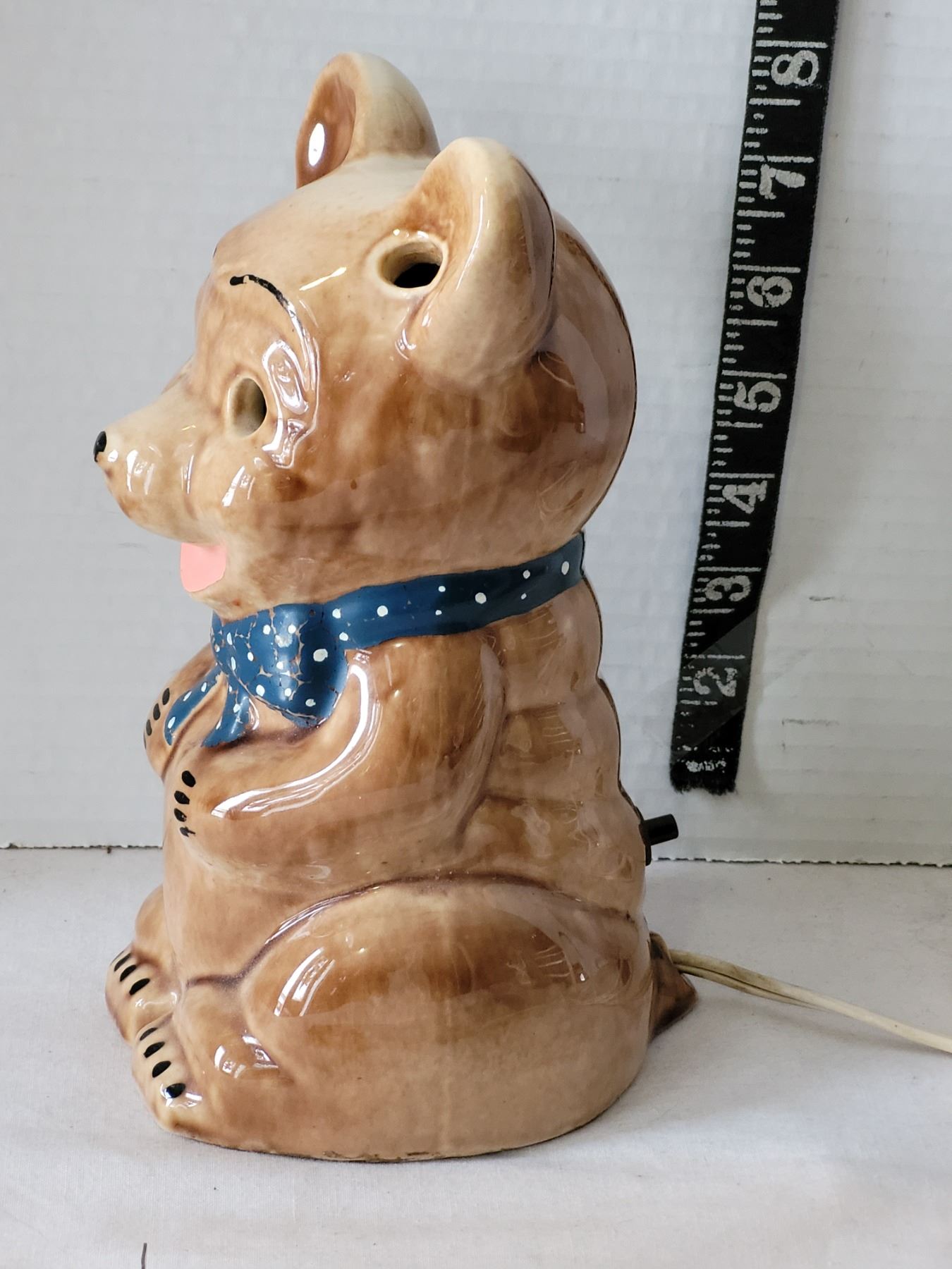 Vintage ceramic teddy bear night lamp. Push button switch on back.