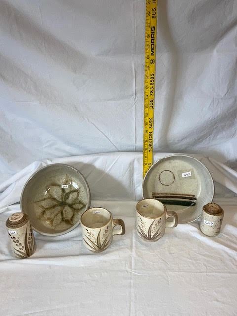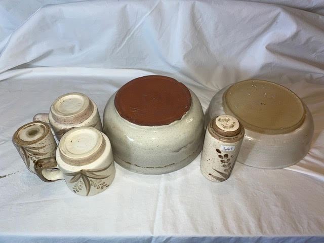 Vintage collection of pottery pieces- includes salt and pepper shaker, 2 bowls, and two mugs
