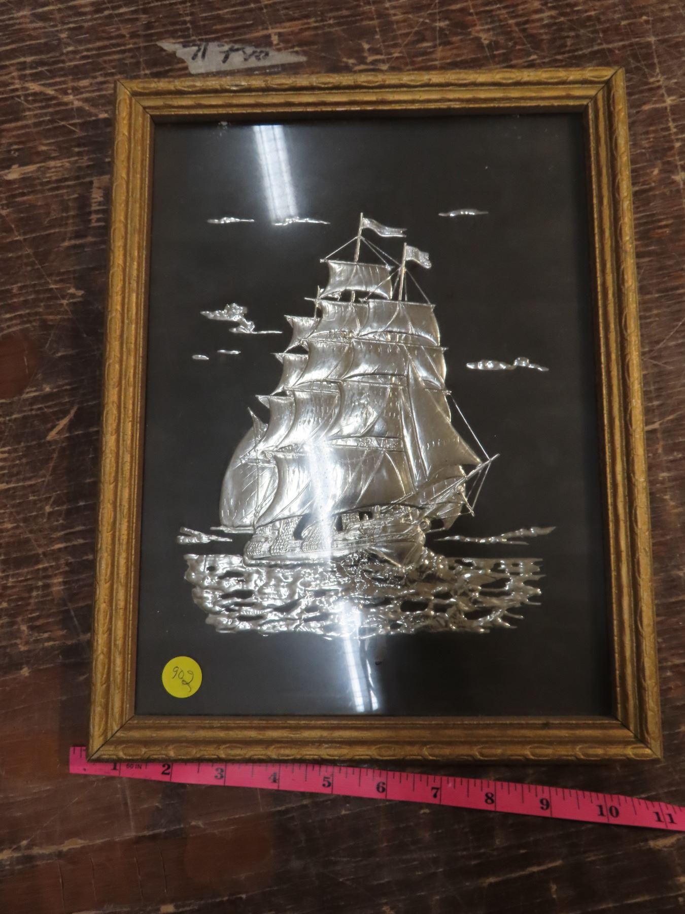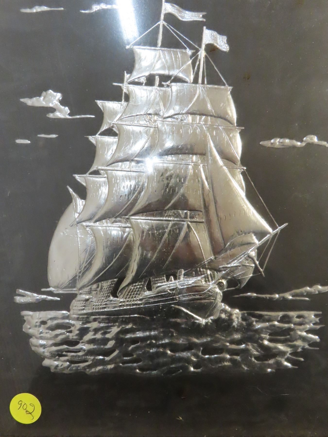 Vintage copper embossed picture Hawaiian tall ship waive tiki 10"x13"
