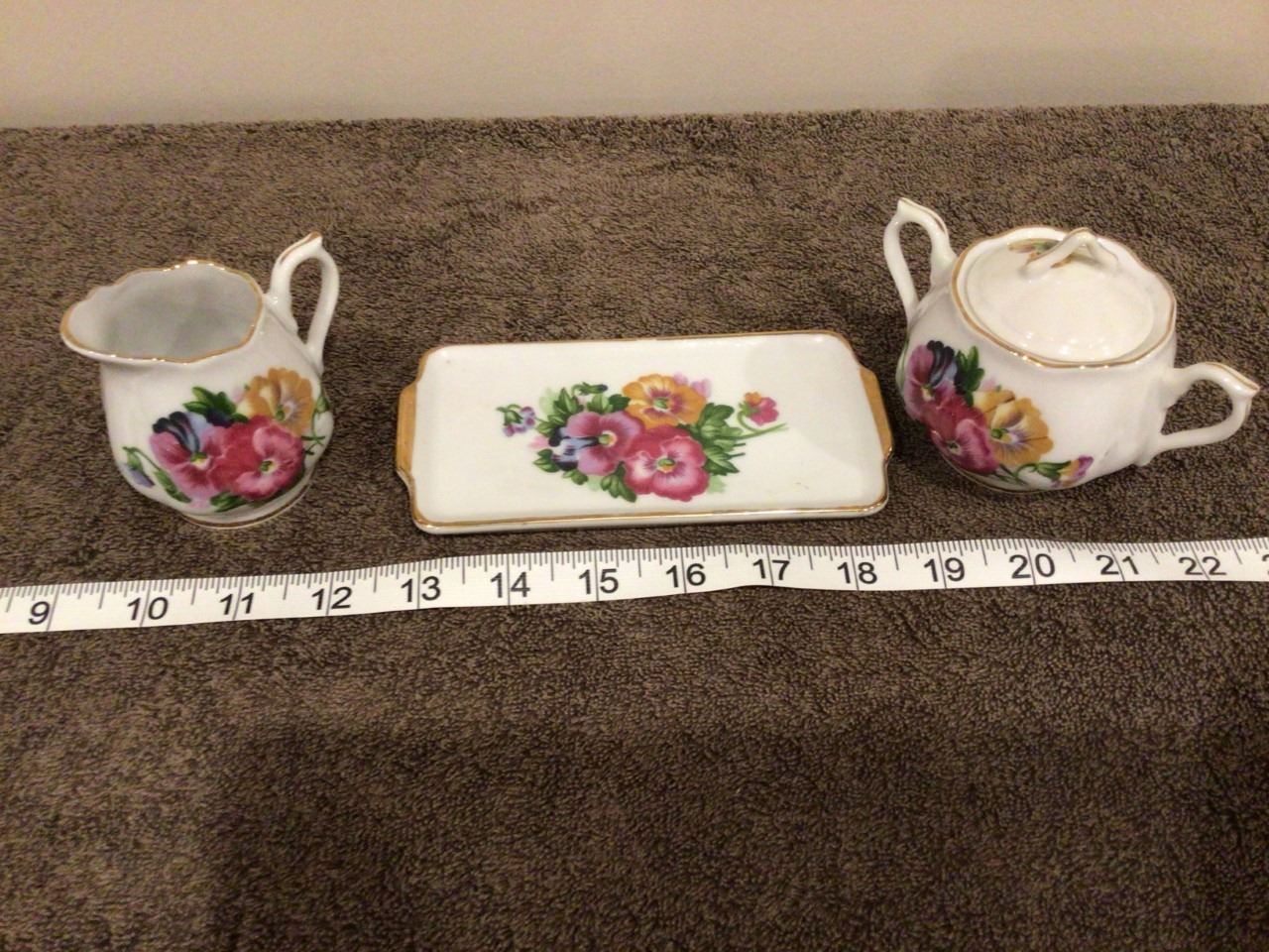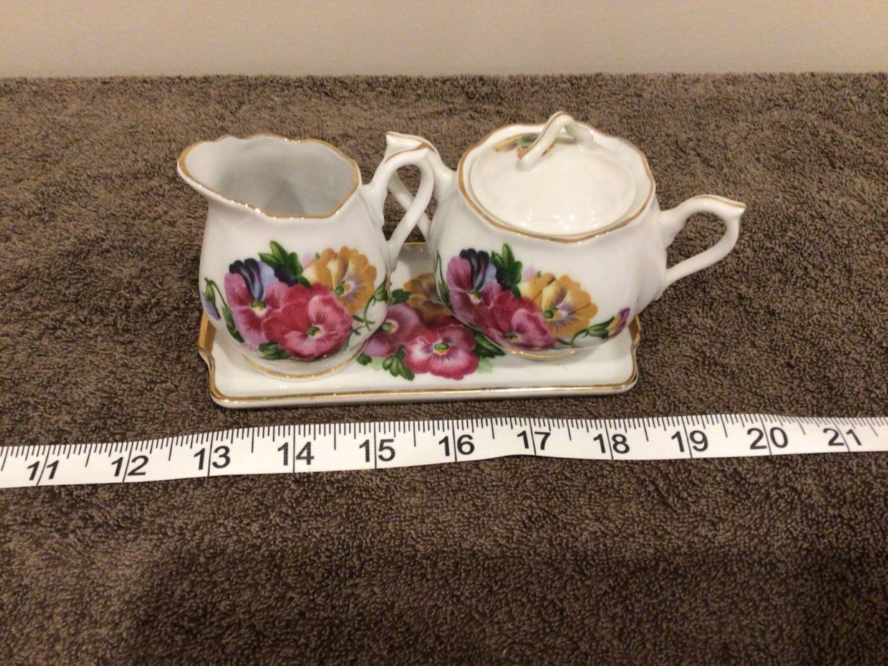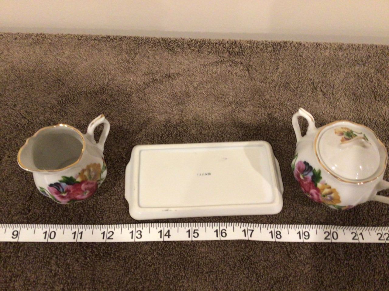 Vintage cream/sugar/tray set, stamped Japan, no chips - 3 photos