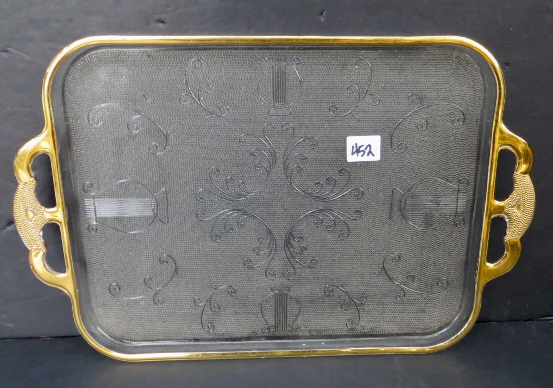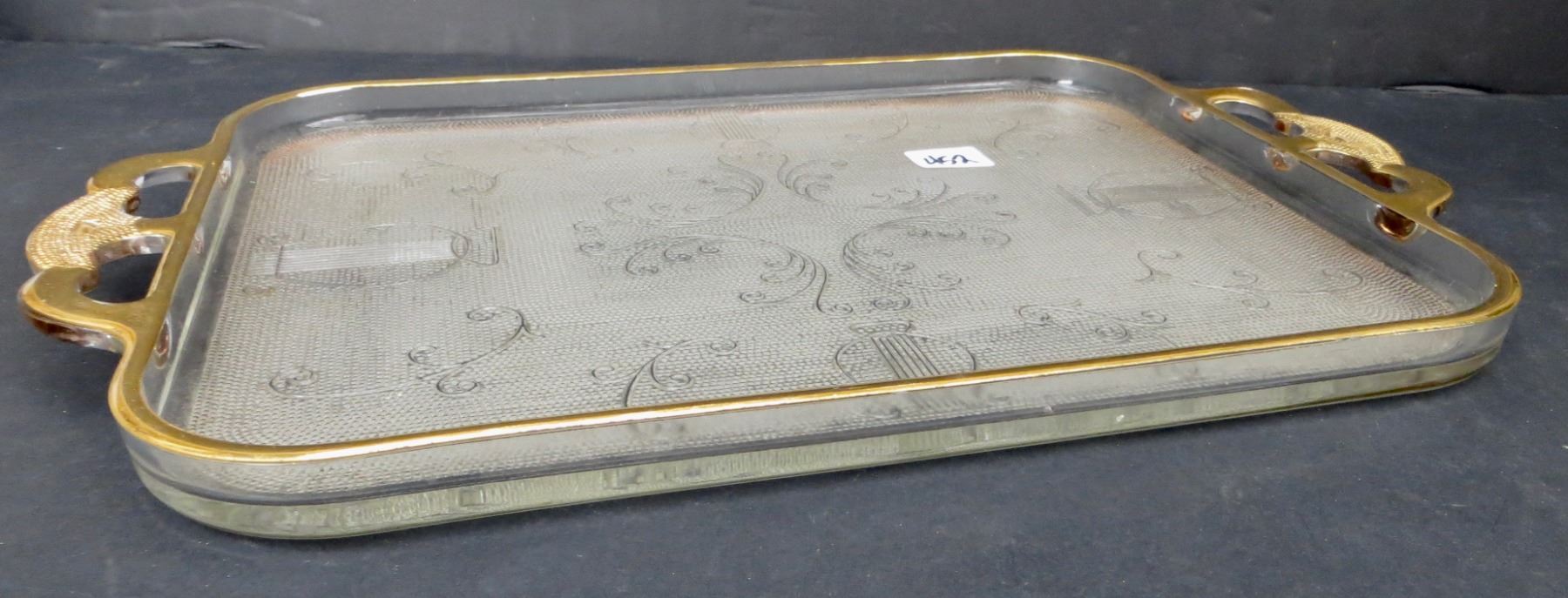Vintage depression glass - Harp design - Jeanette glass serving tray, gold trim - 10"x15"