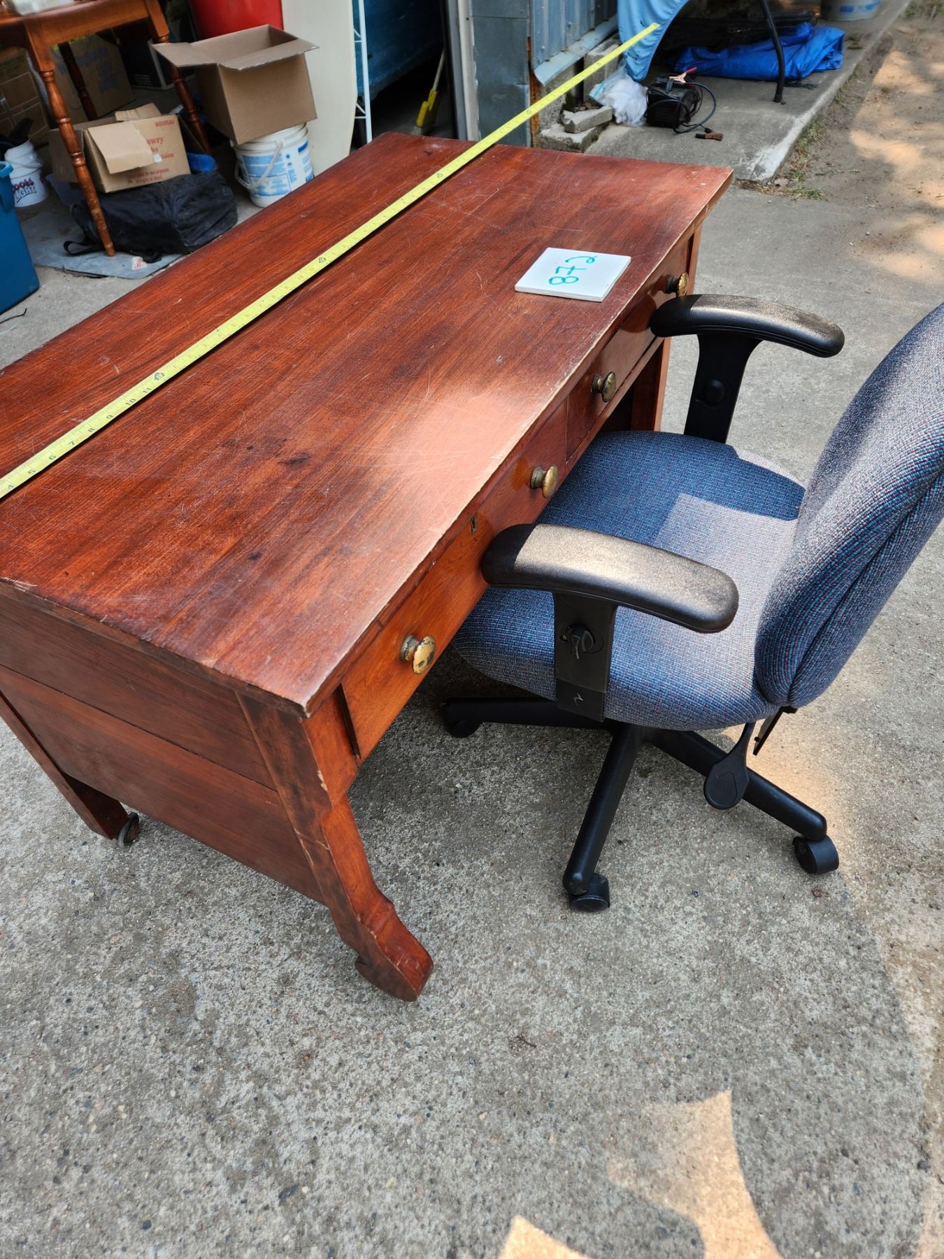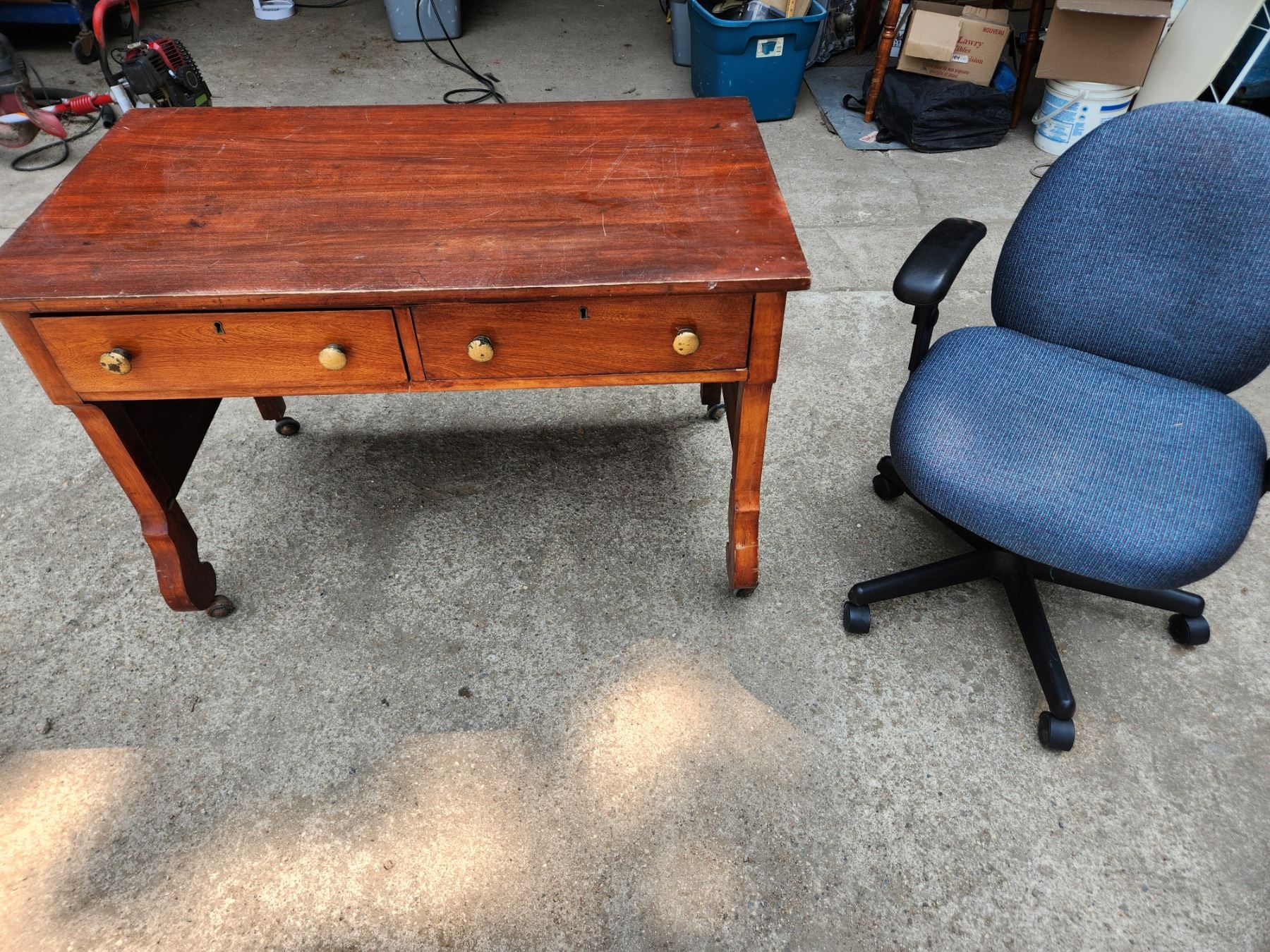 Vintage desk on wheels and adjustable office chair - desktop is 42 by 23 inches
