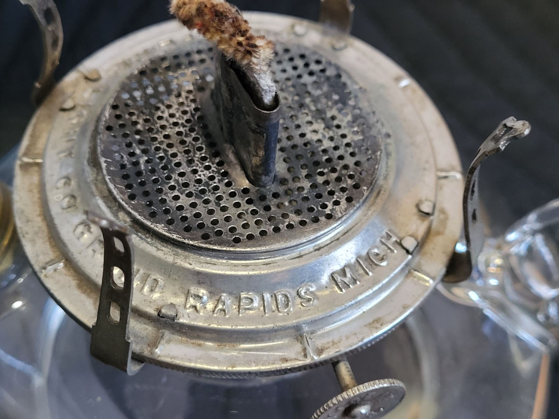 Vintage finger oil lamp. White Flame Light Co. Grand Rapids, Michigan.