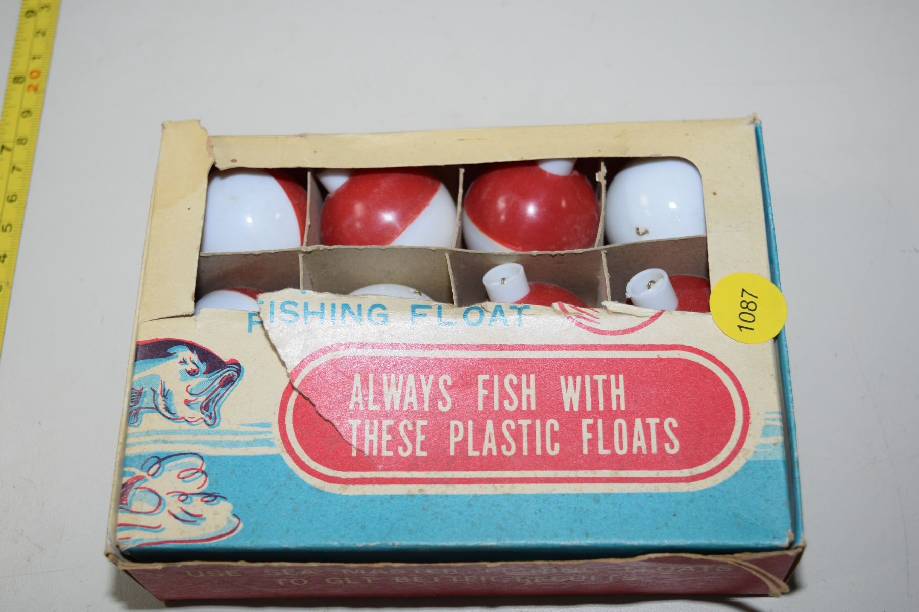 Vintage fishing floats in box
