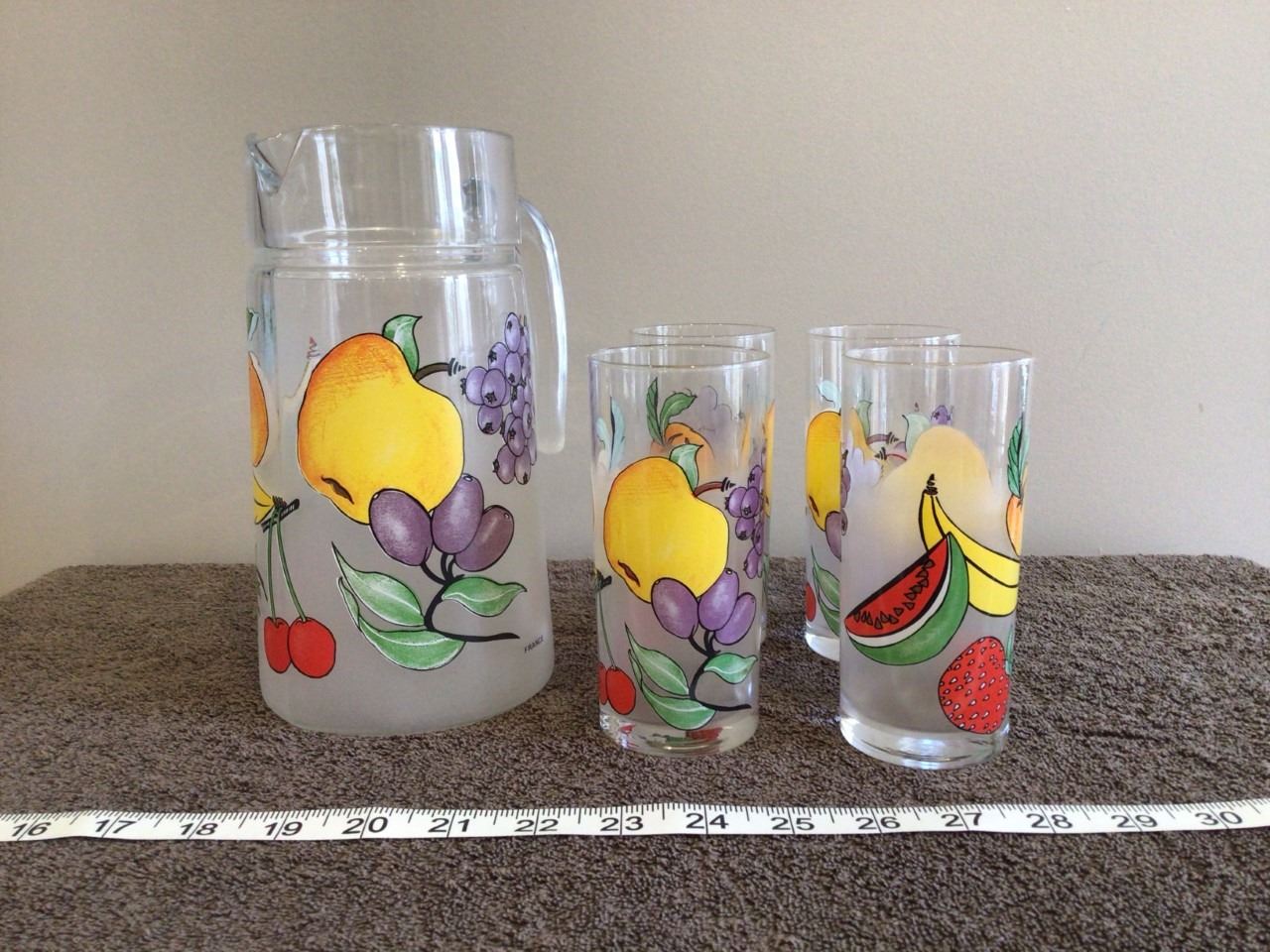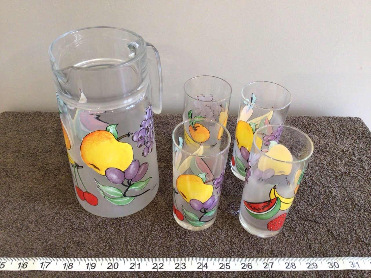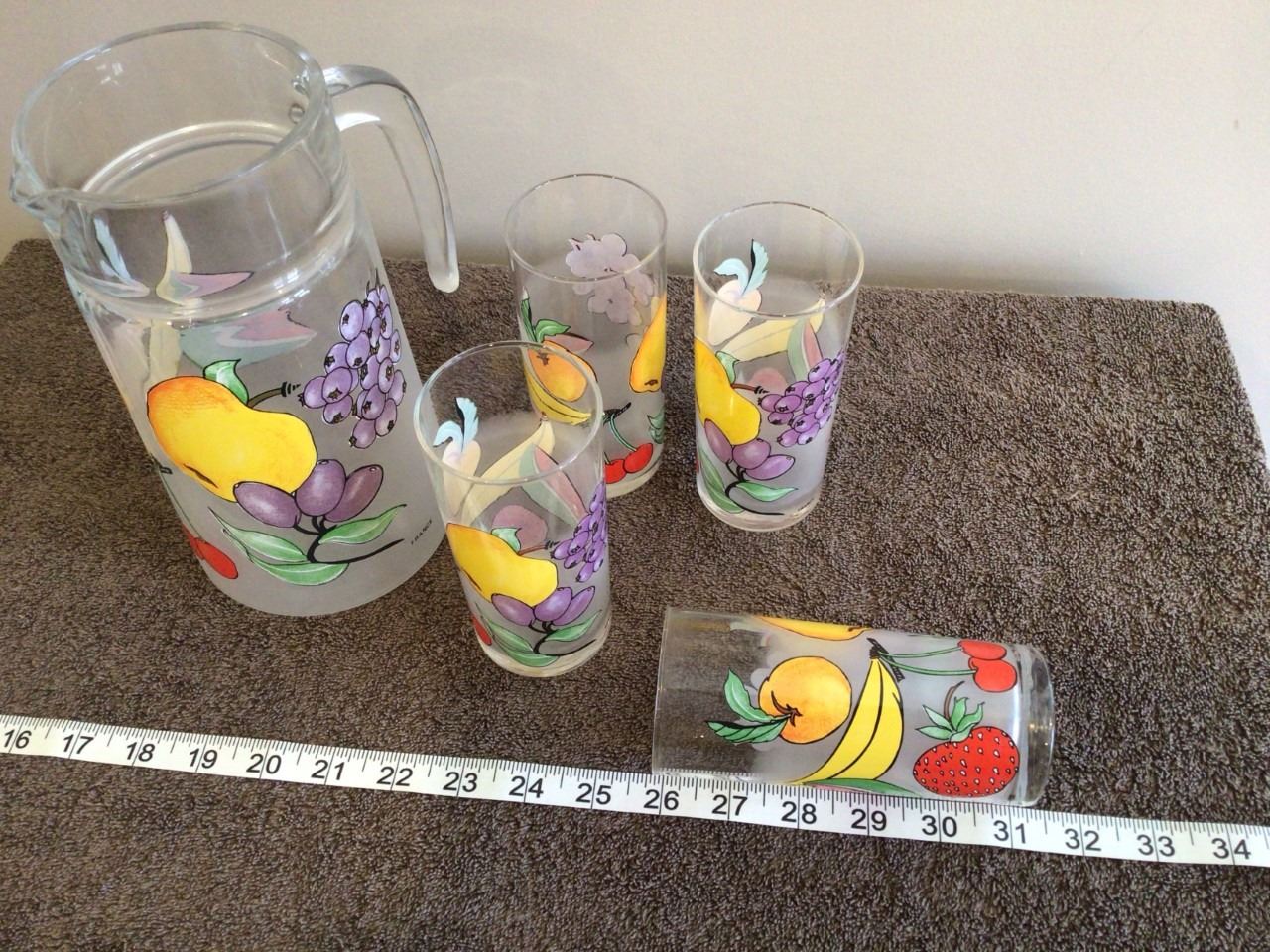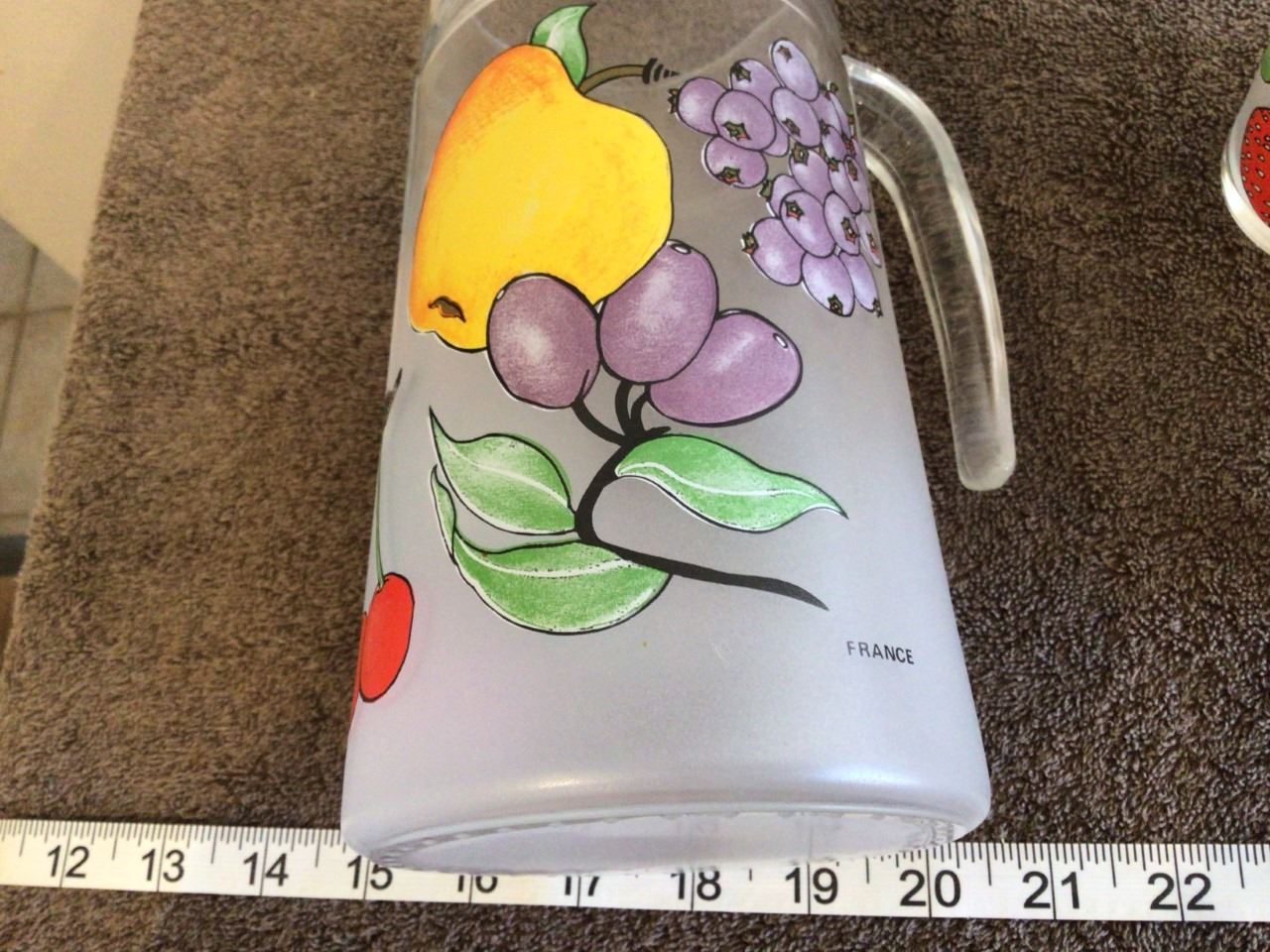 Vintage fruit pitcher with 4 glasses, stamped FRANCE, mint condition - 4 photos