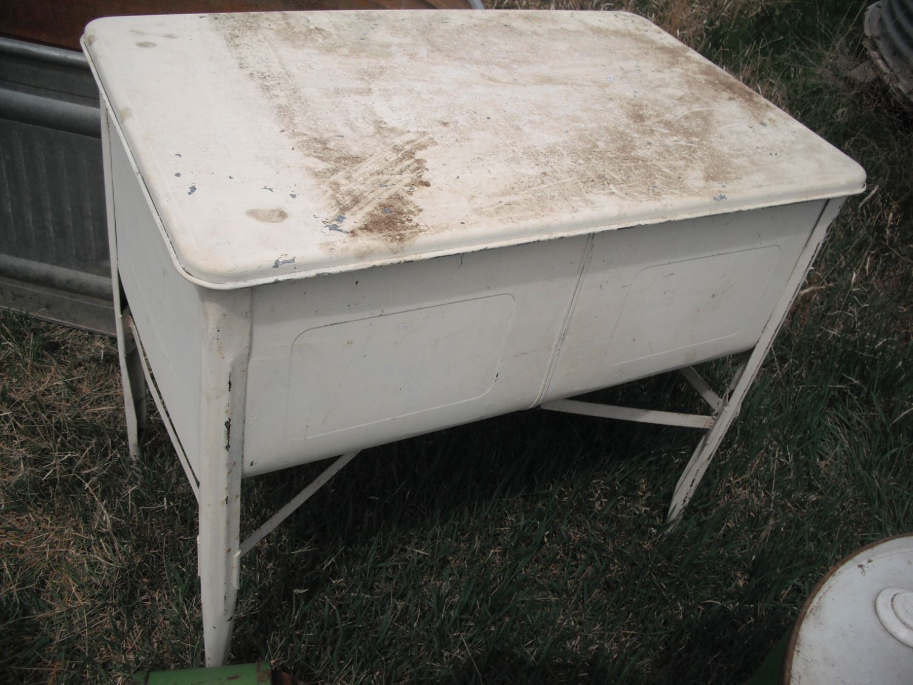 Vintage galvanized standing washtub with lid - 34"x20"x31"H