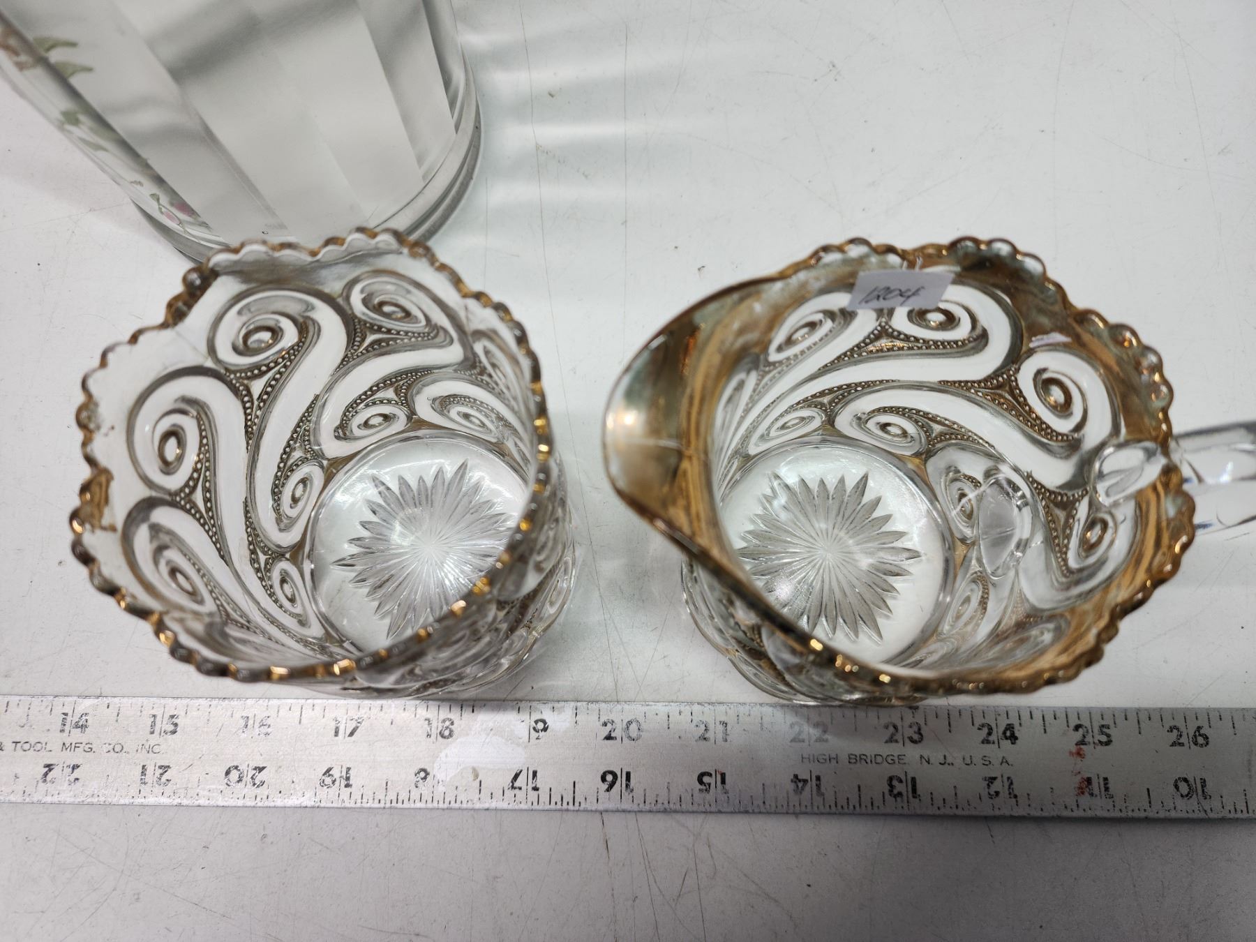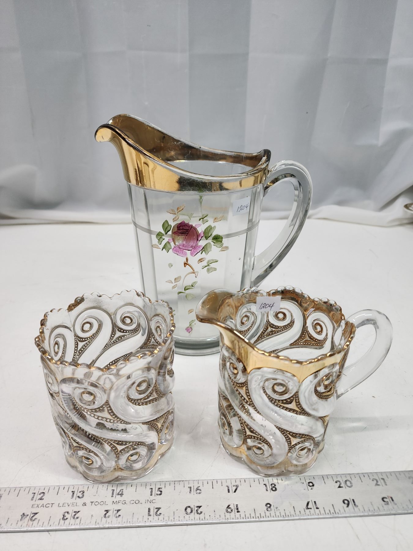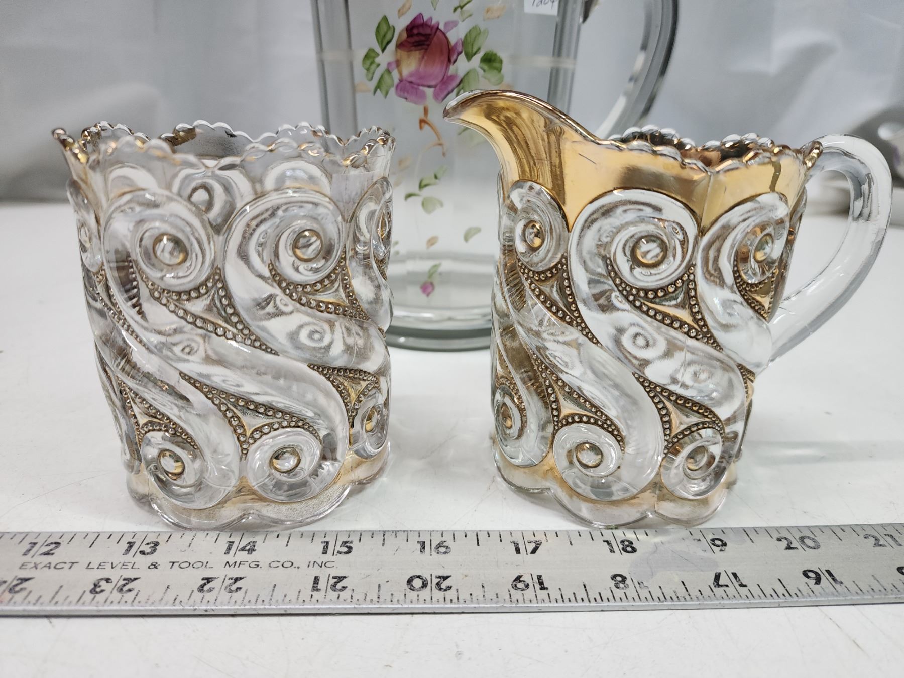 Vintage glass pitcher, and cream n sugar dishes - very old