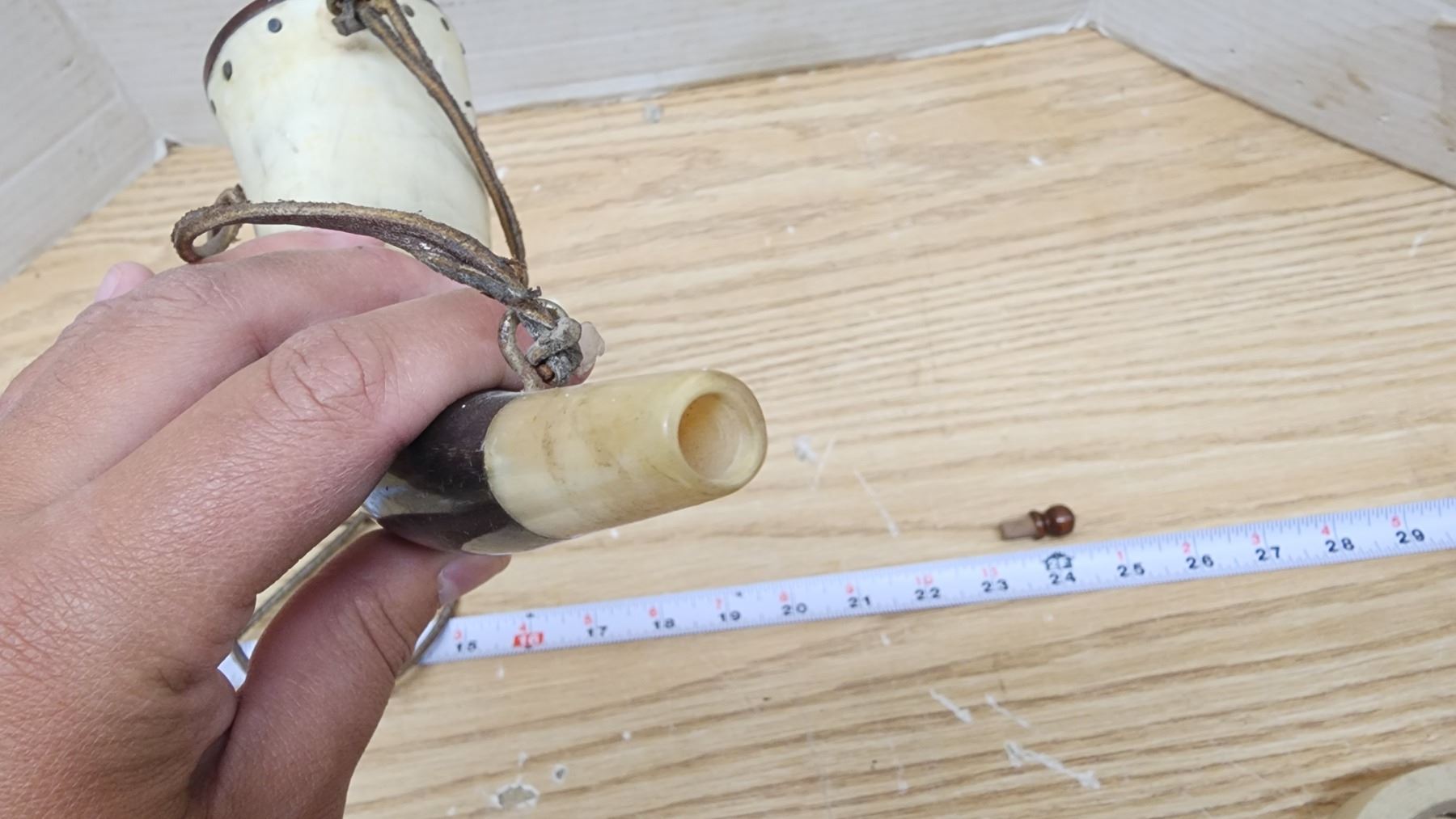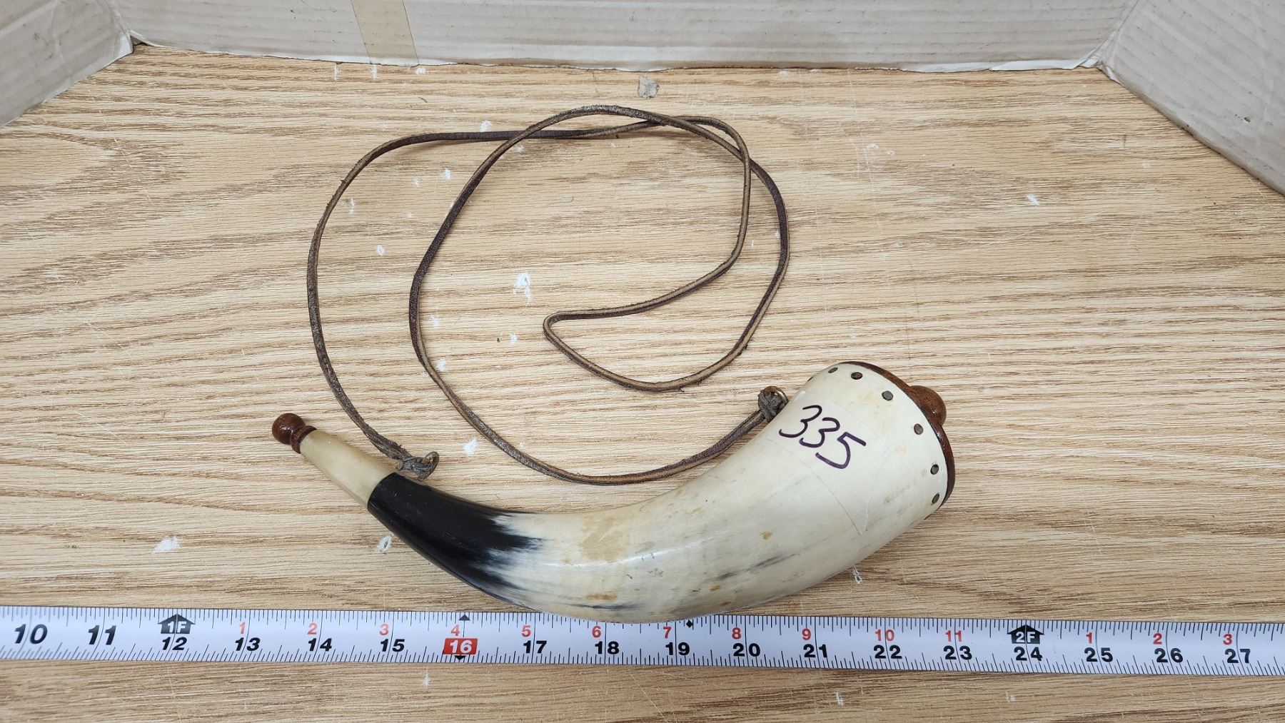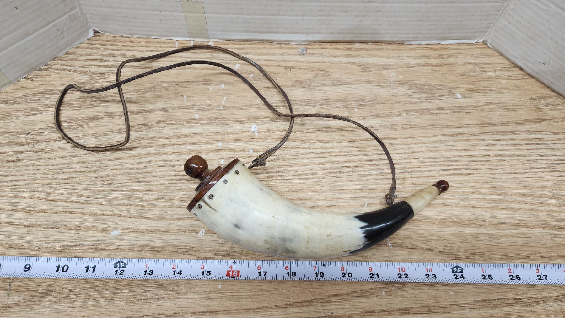 Vintage gun powder horn, with rope handle