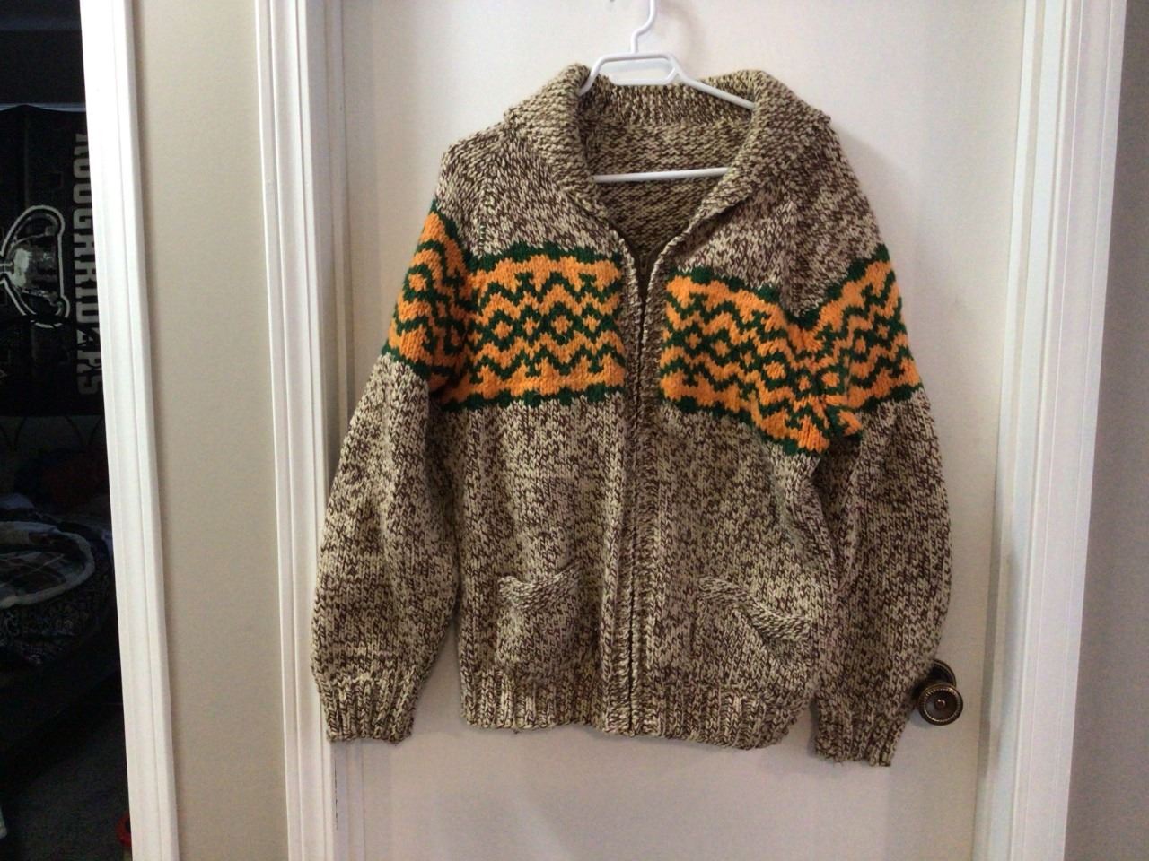 Vintage hand knit wool sweater, large size