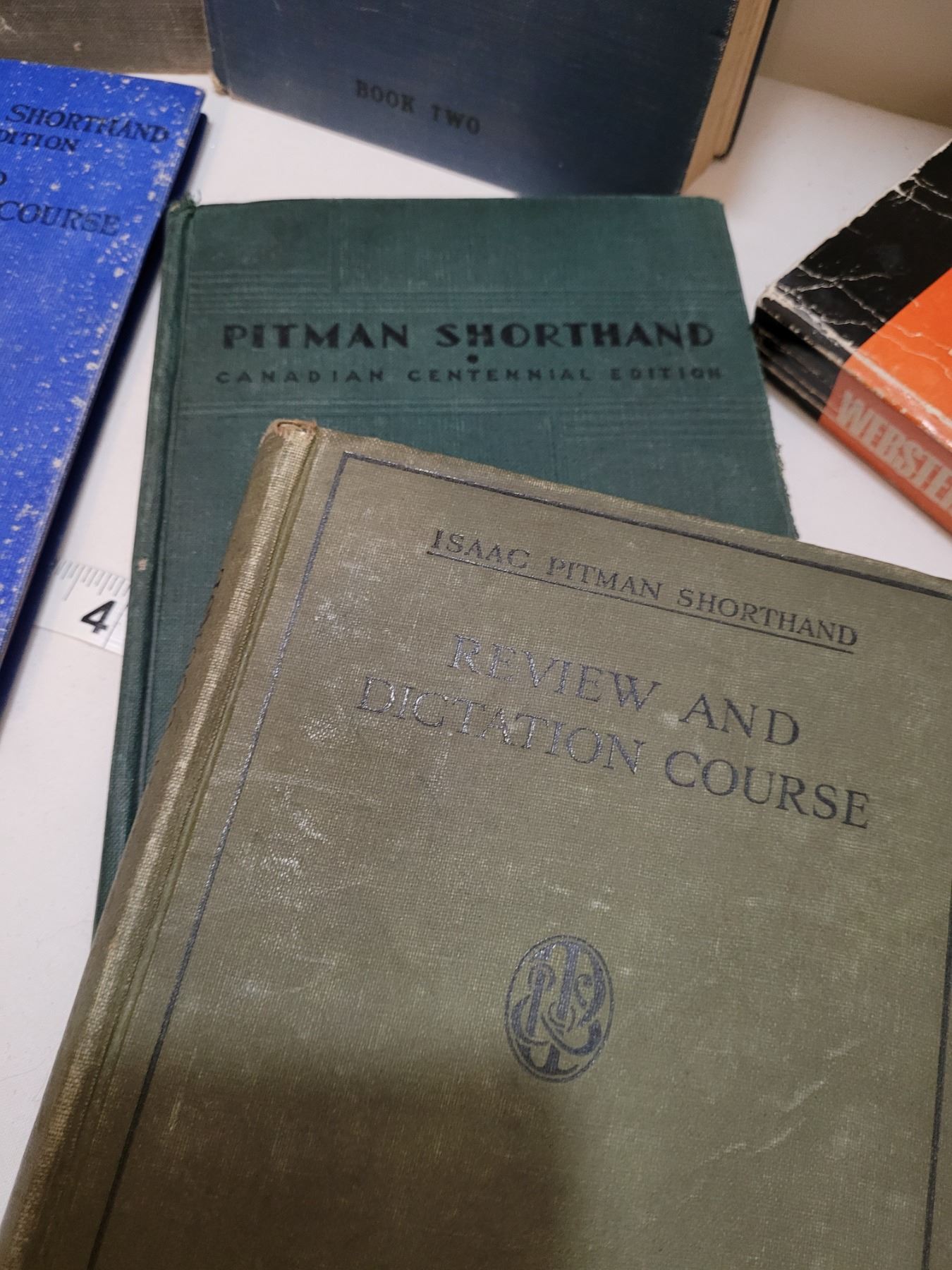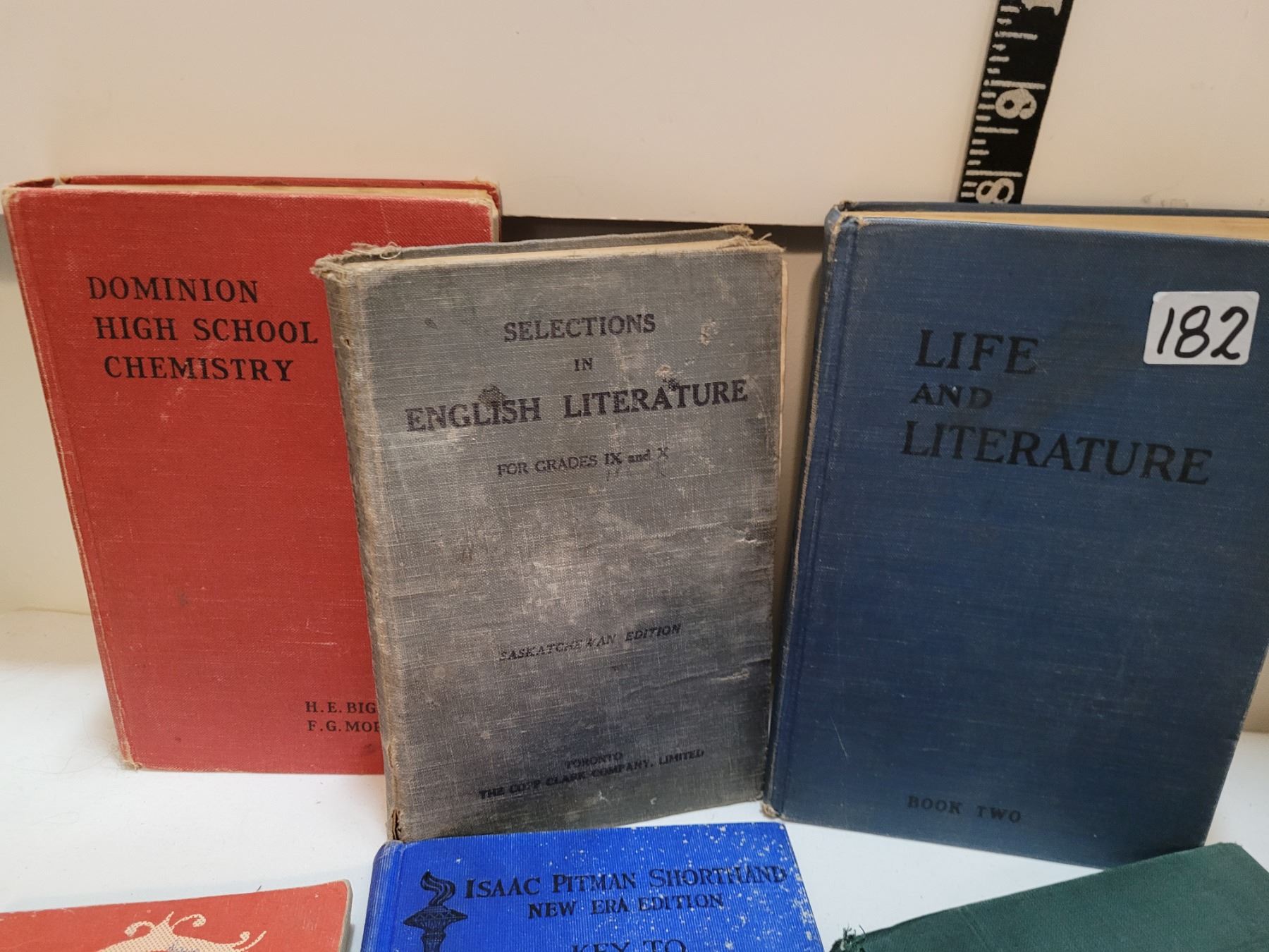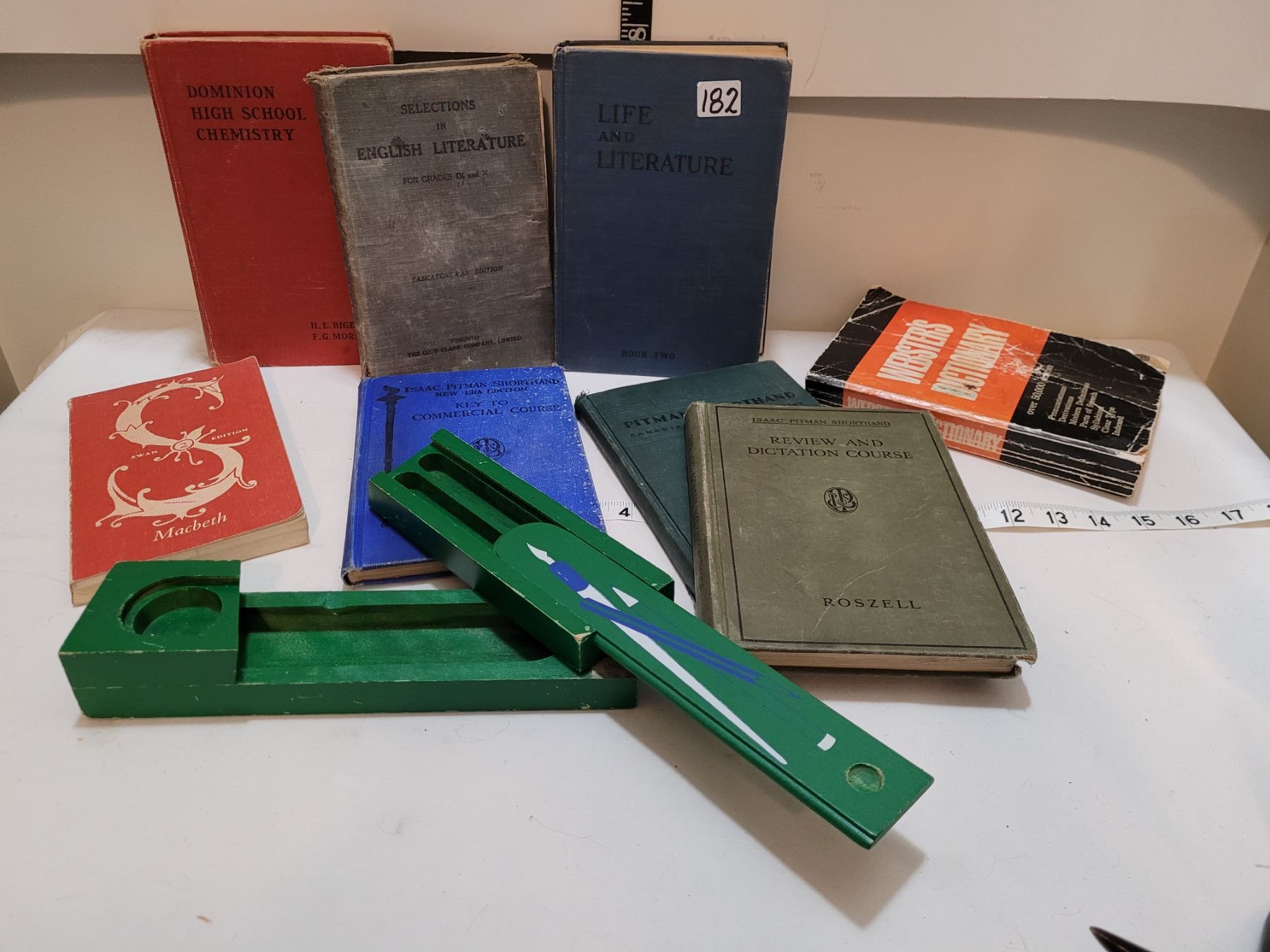 Vintage hard cover school books & fountain pen box.