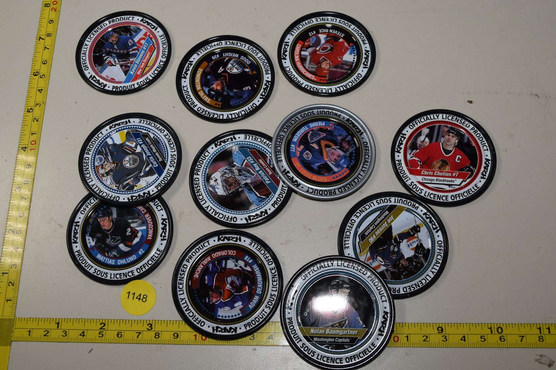 Vintage hockey pucks metal cards