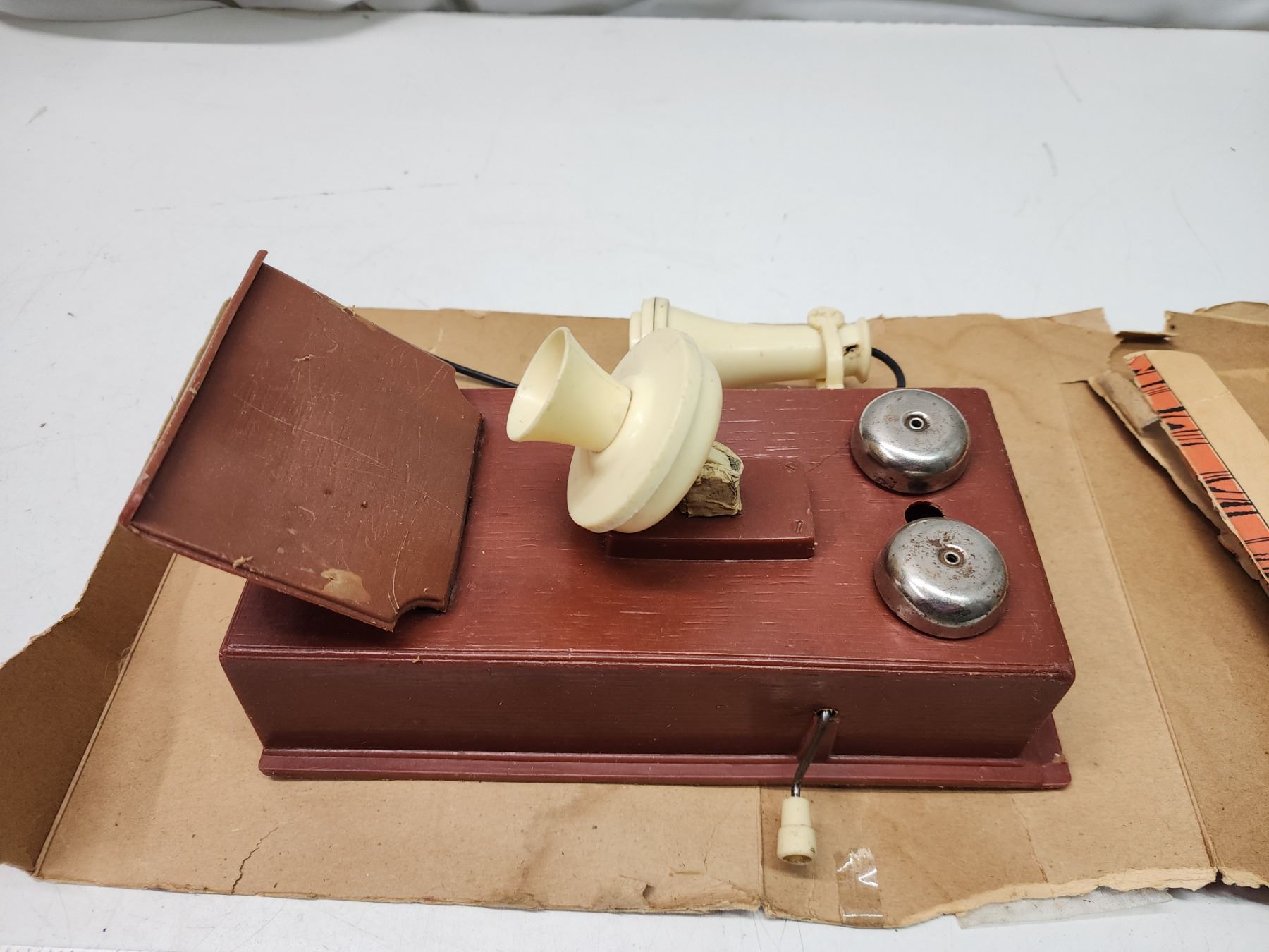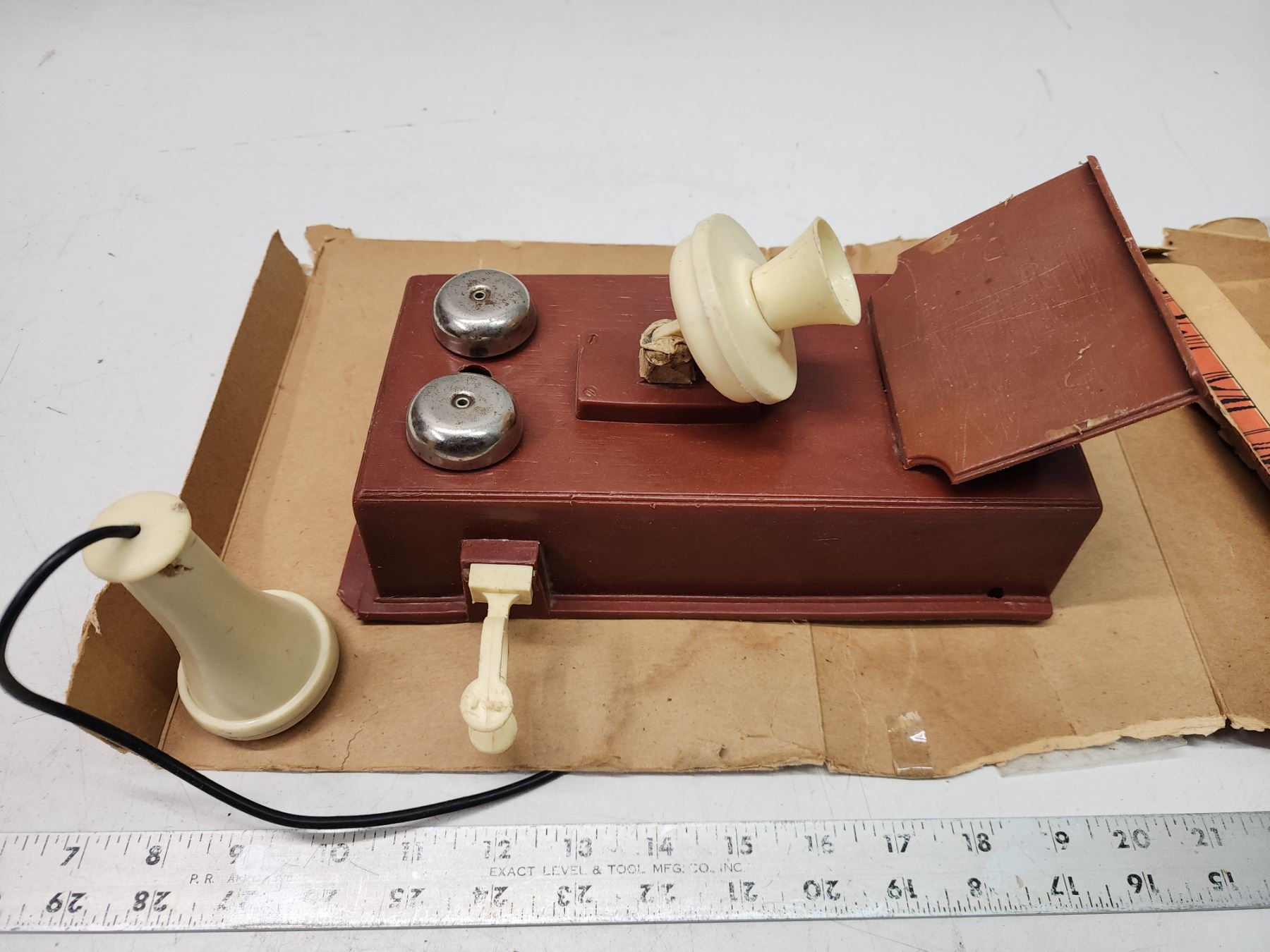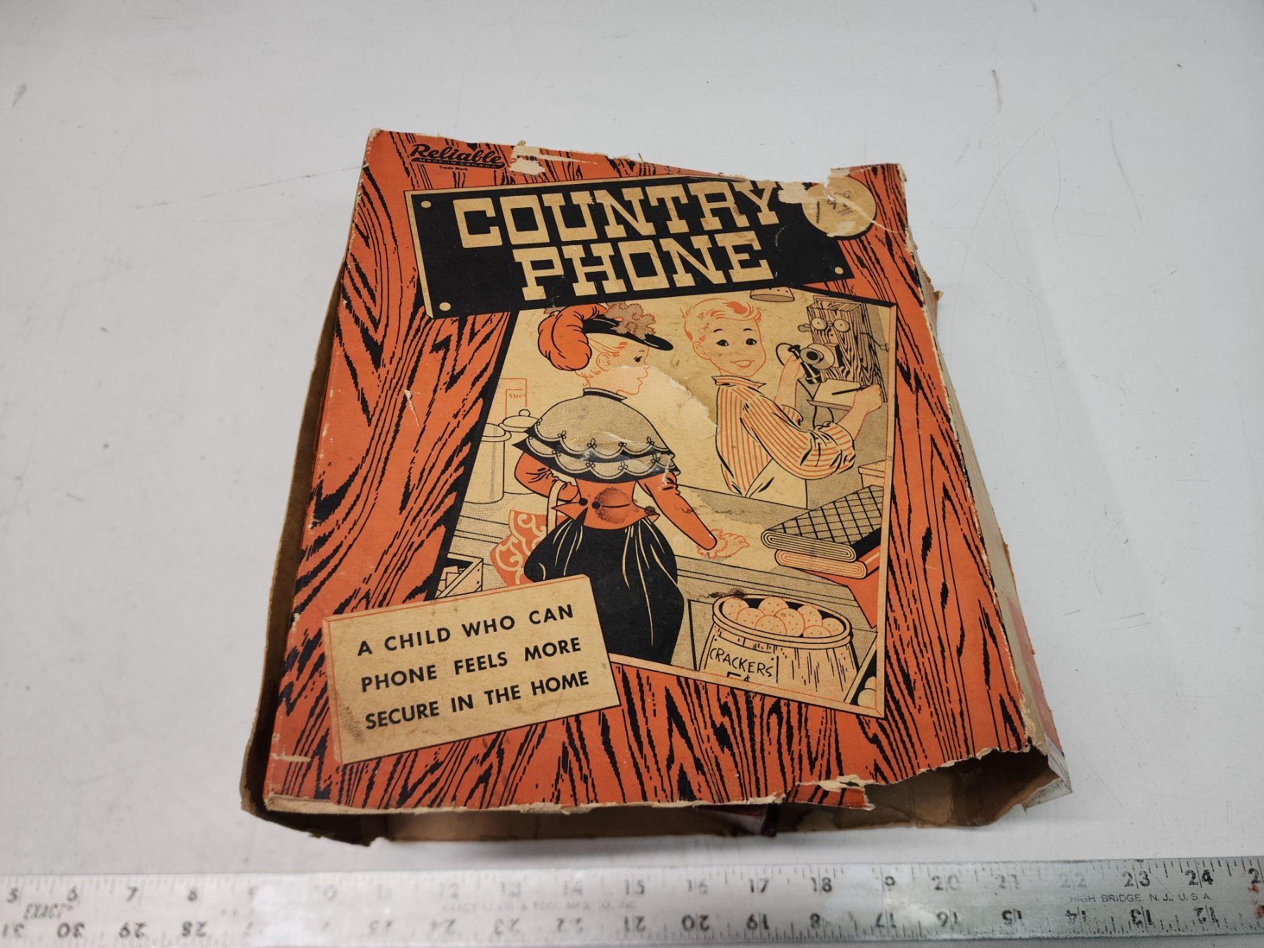 Vintage kid's "Country Phone" toy, in og box - box is damaged