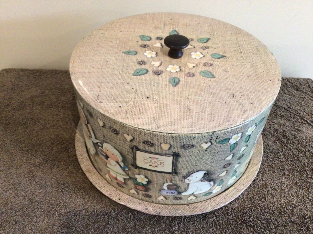 Vintage metal cake carrier, 10" diameter, very nice shape