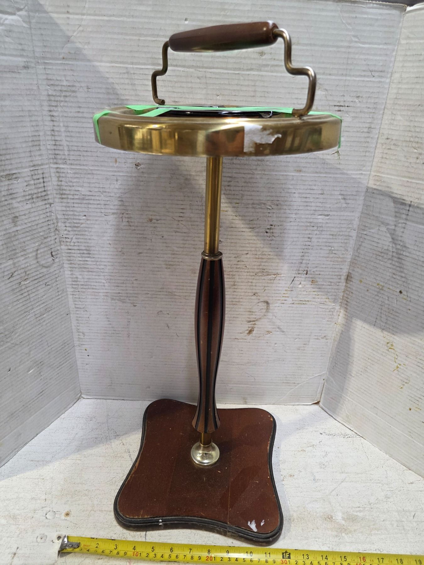 Vintage metal floor standing ashtray with wood base- 22"H