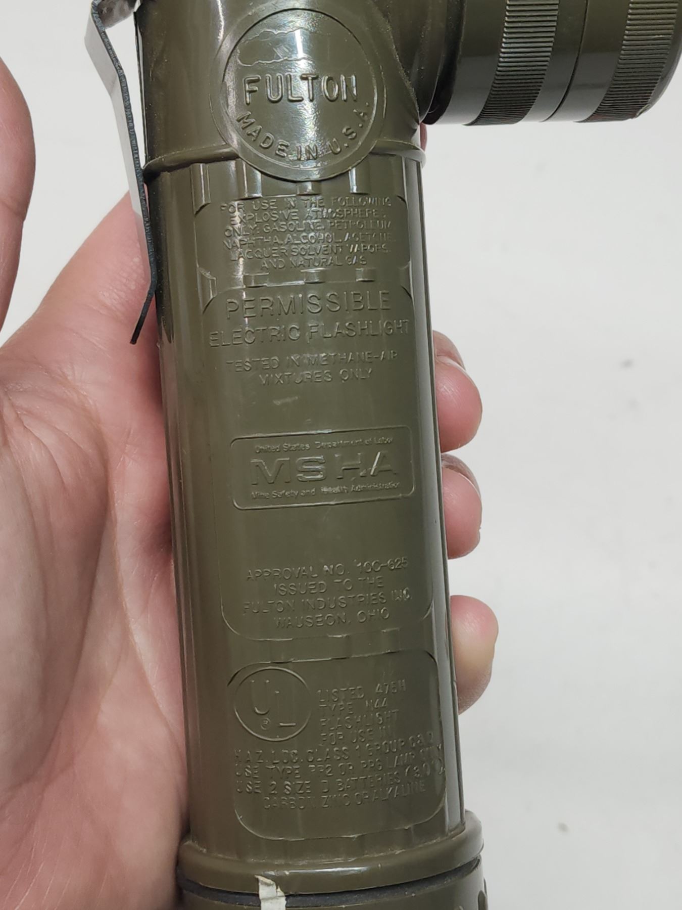 Vintage military "Fulton MX-212/U" flashlight - works, needs new batteries