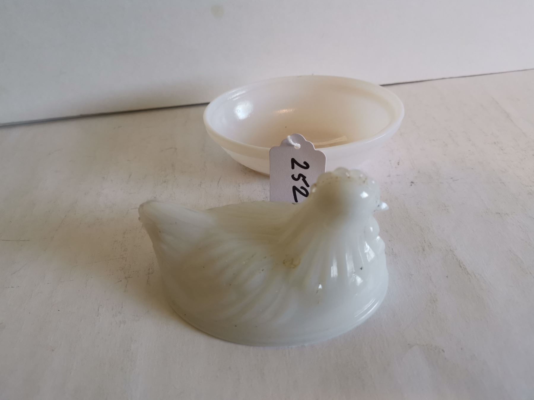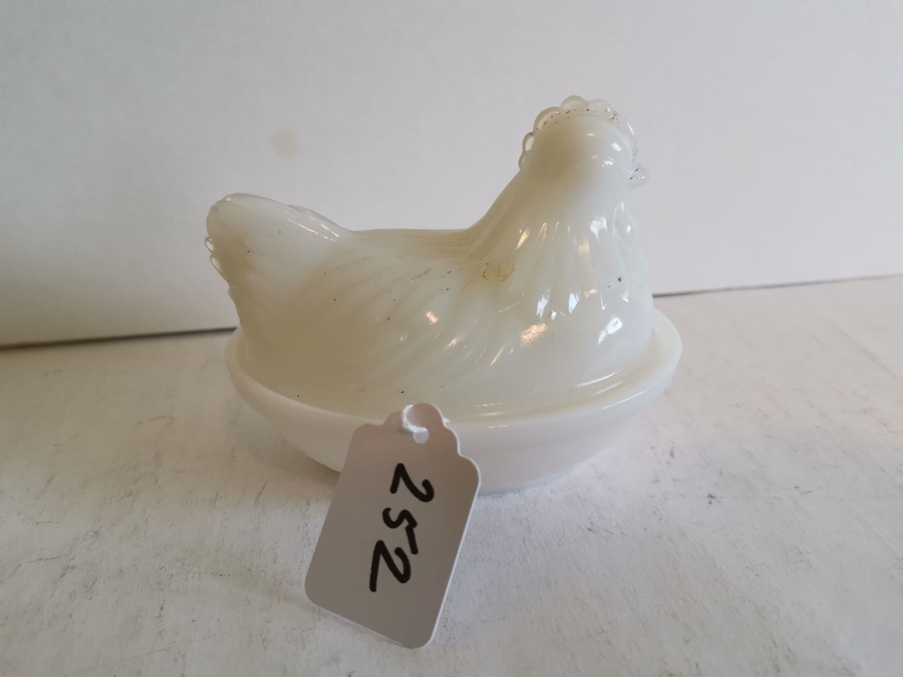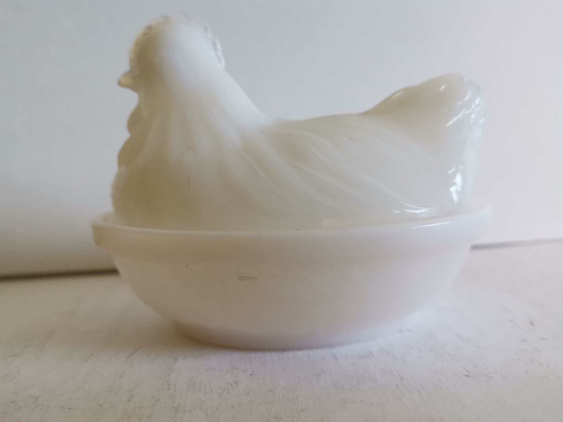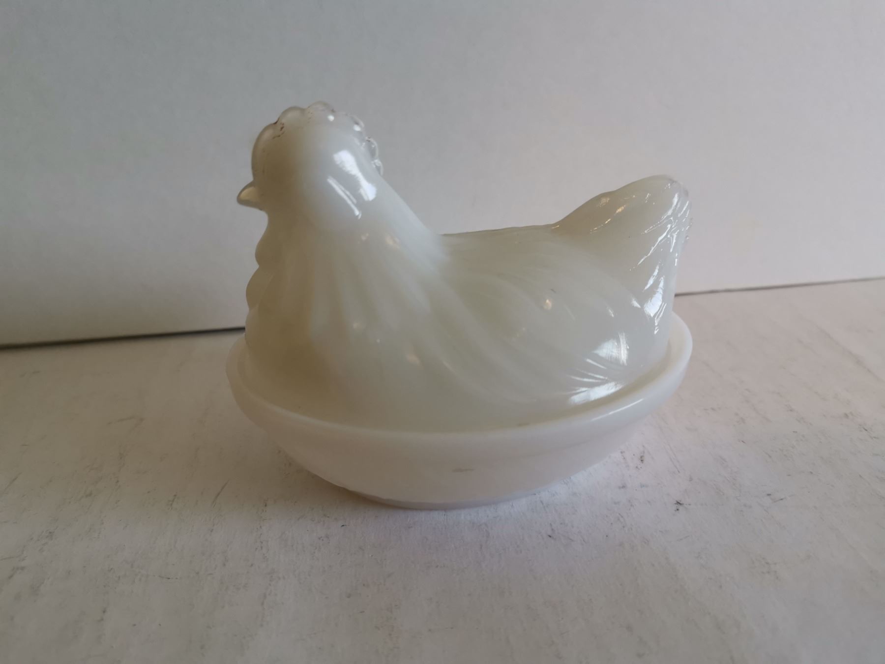 Vintage milk glass Hen on the Nest 4"