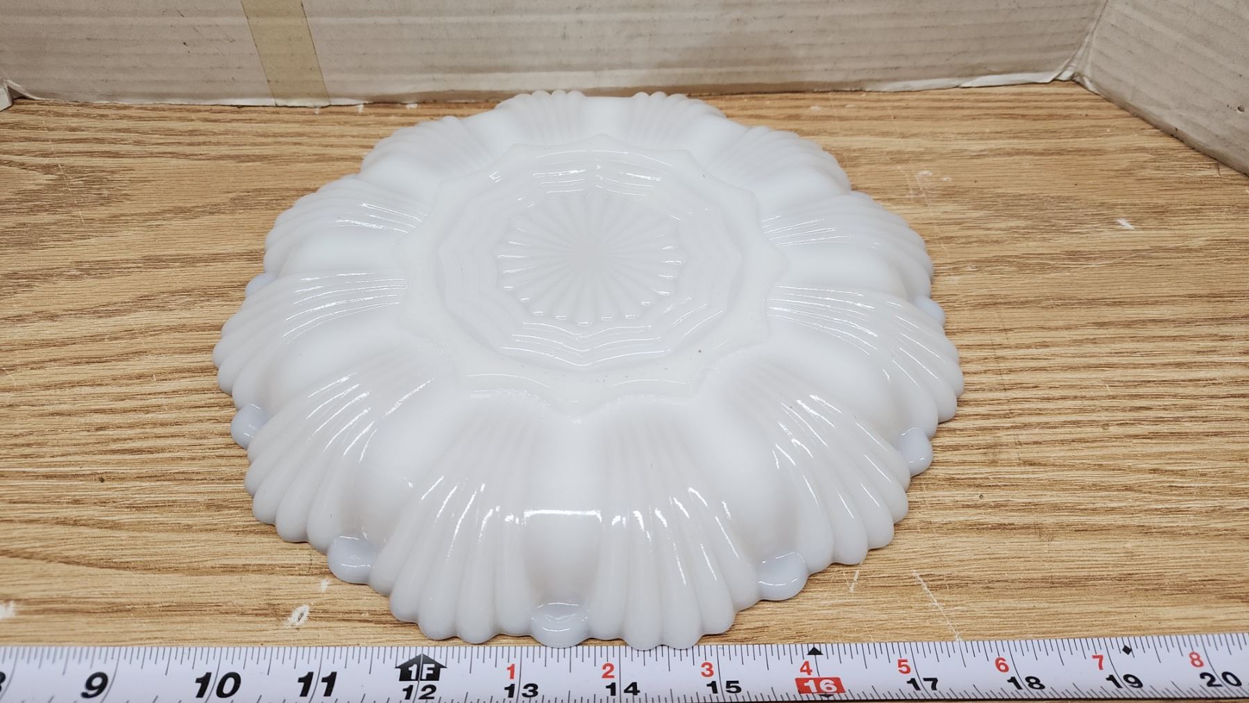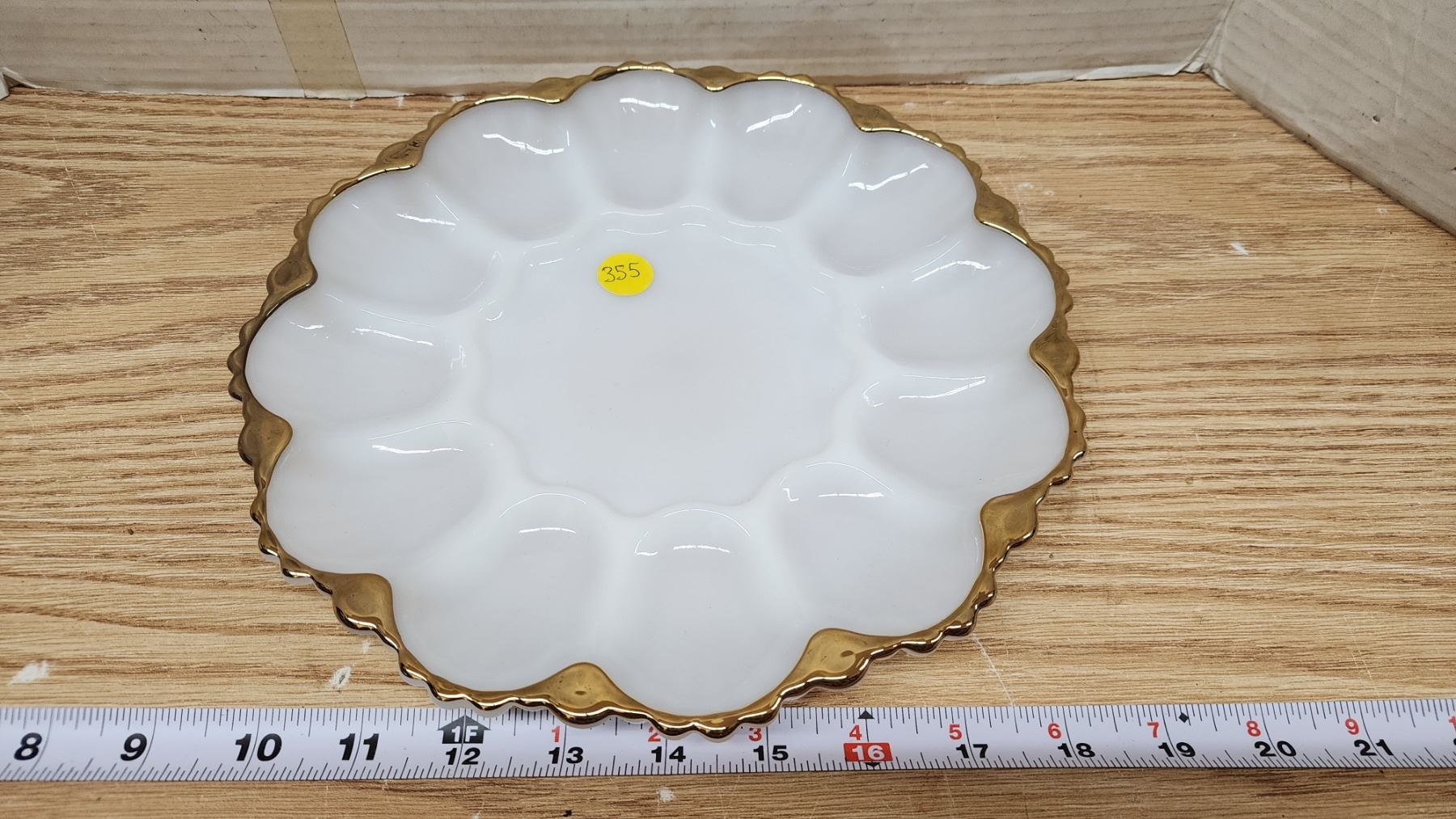 Vintage milk glass egg plate, with gold trim - like new