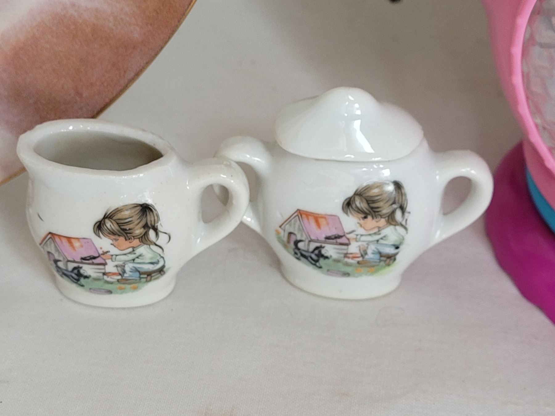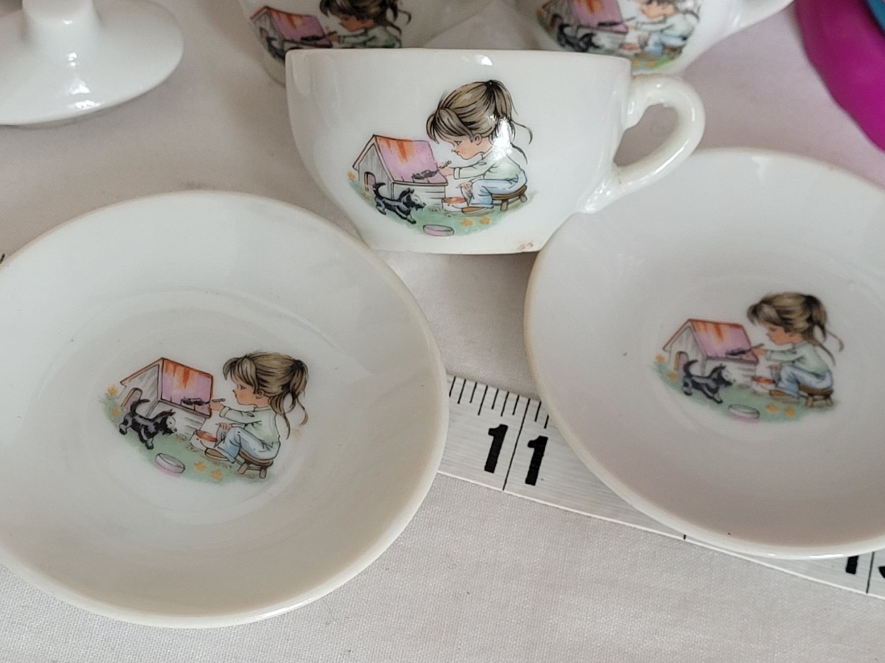 Vintage miniature tea set, Baby's first plate & leap frog talking teapot.