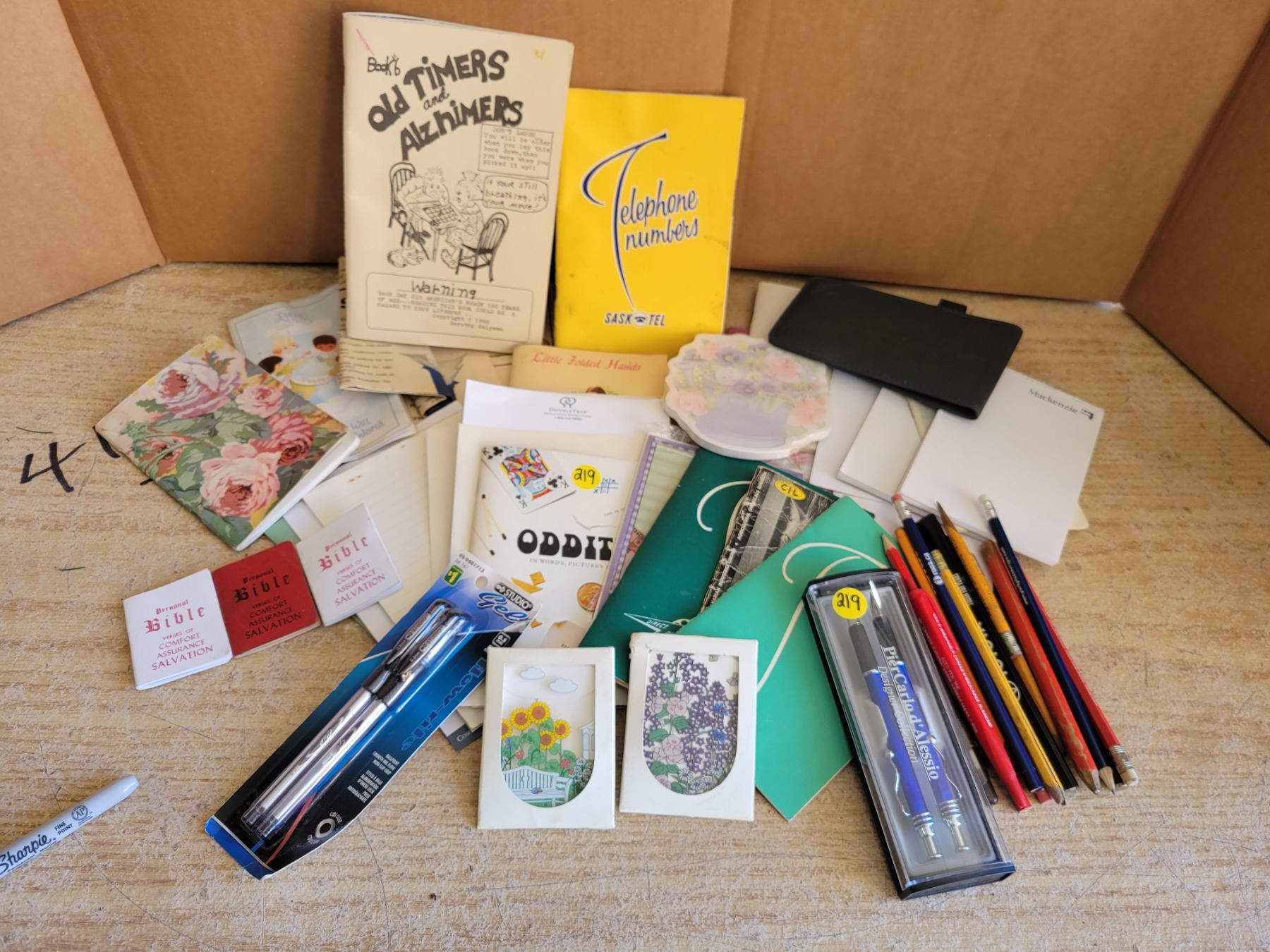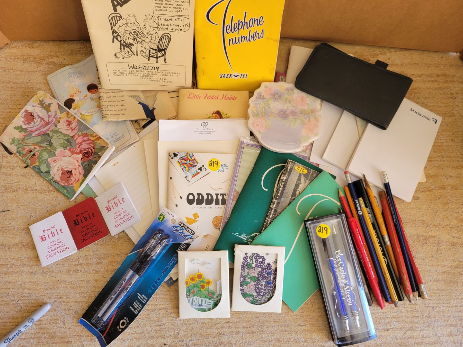 Vintage notepads, telephone books, misc pocket reading material & pens