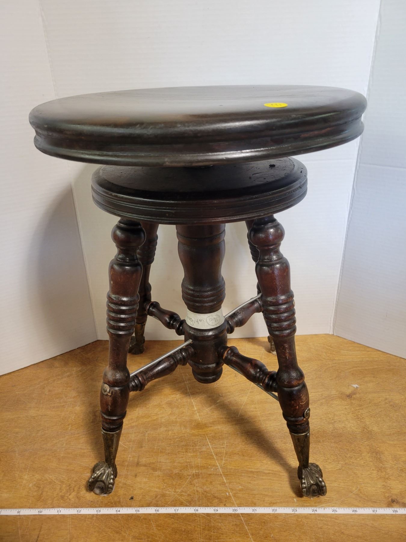 Vintage piano stool with claw feet