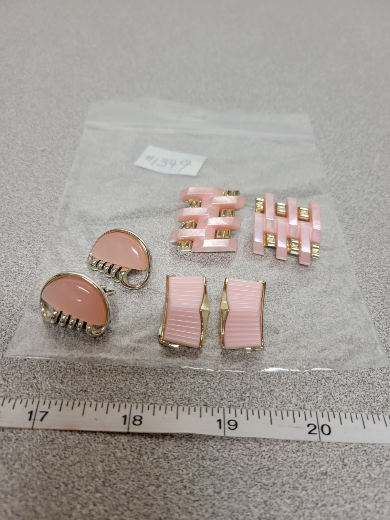 Vintage pink thermoset clip earrings (3 pair)