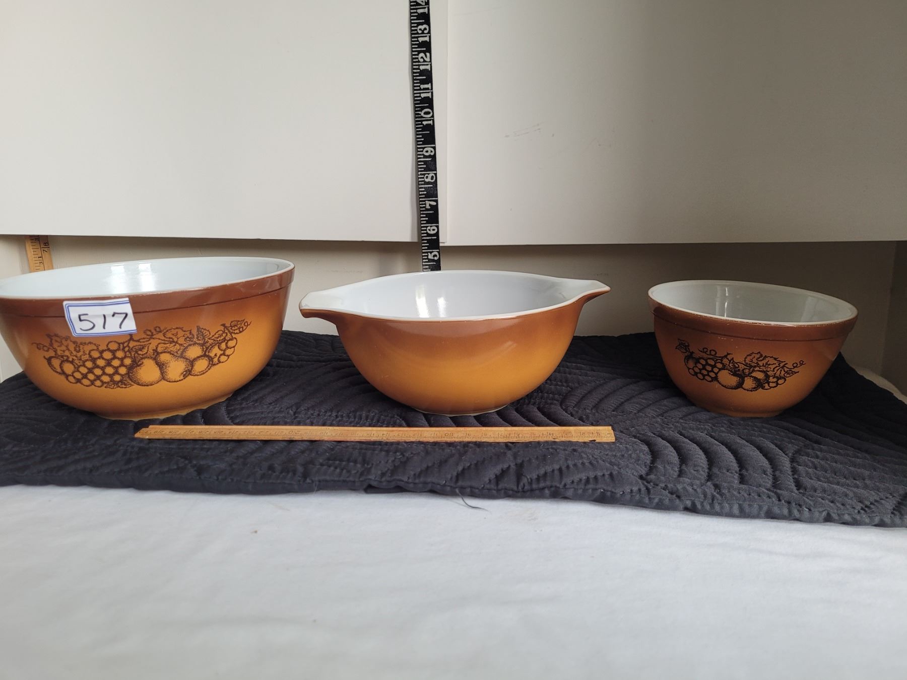 Vintage pyrex 1974-'78 # 401, 403, 442 old orchard pattern.
