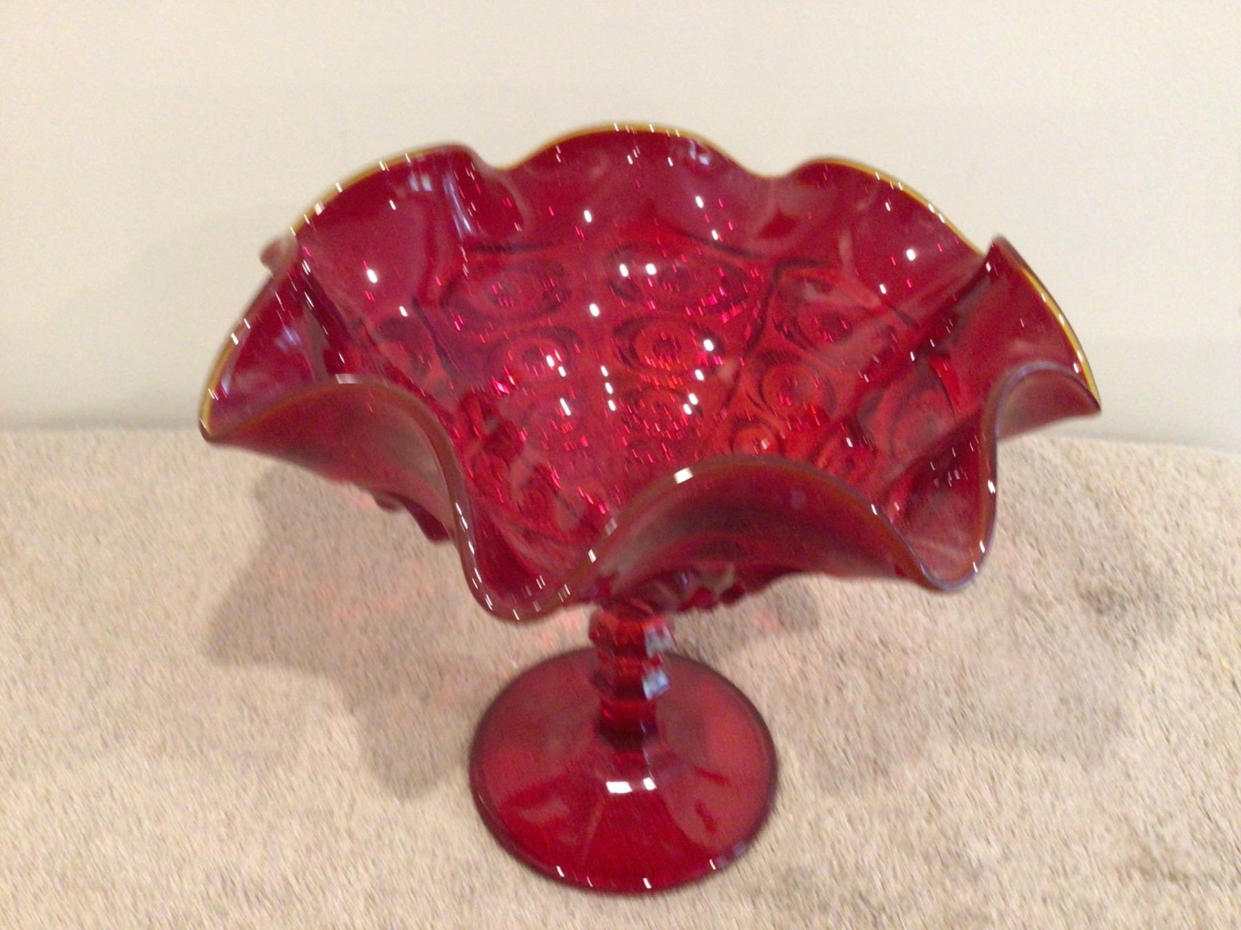 Vintage red pedestal glass bowl. 7" tall. No chips or cracks.