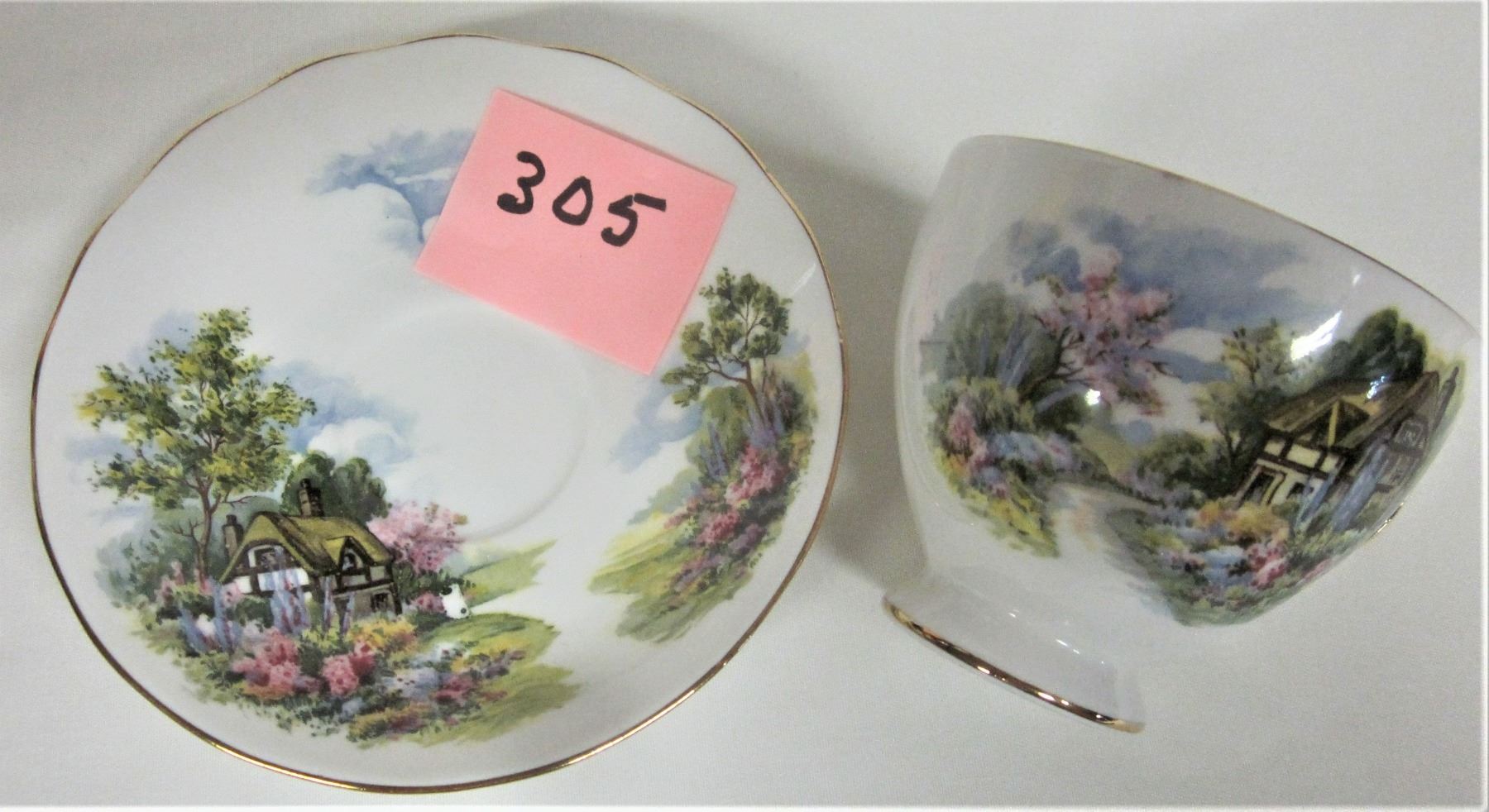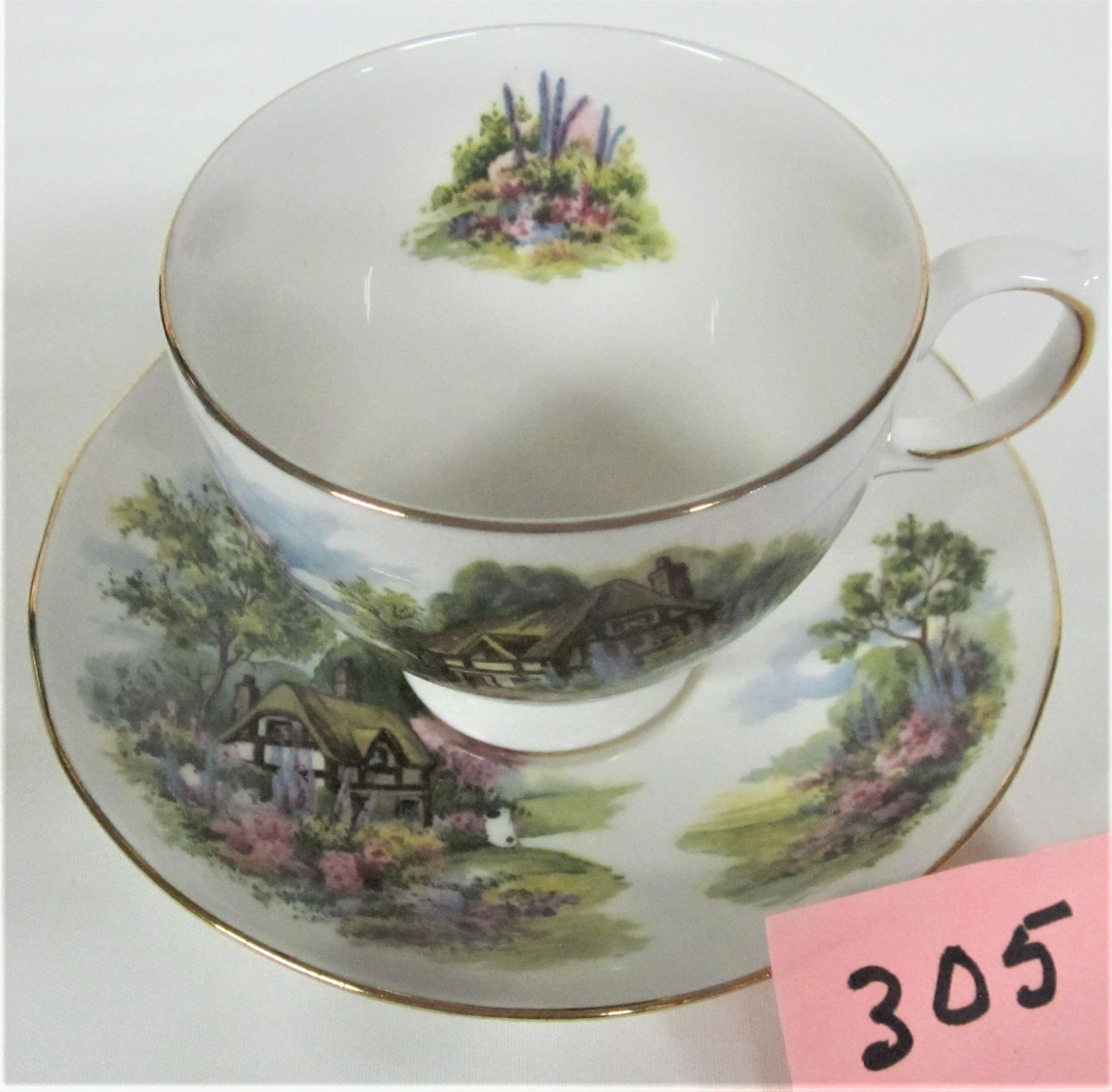 Vintage royal vale colorful countryside bone China cup and saucer -England