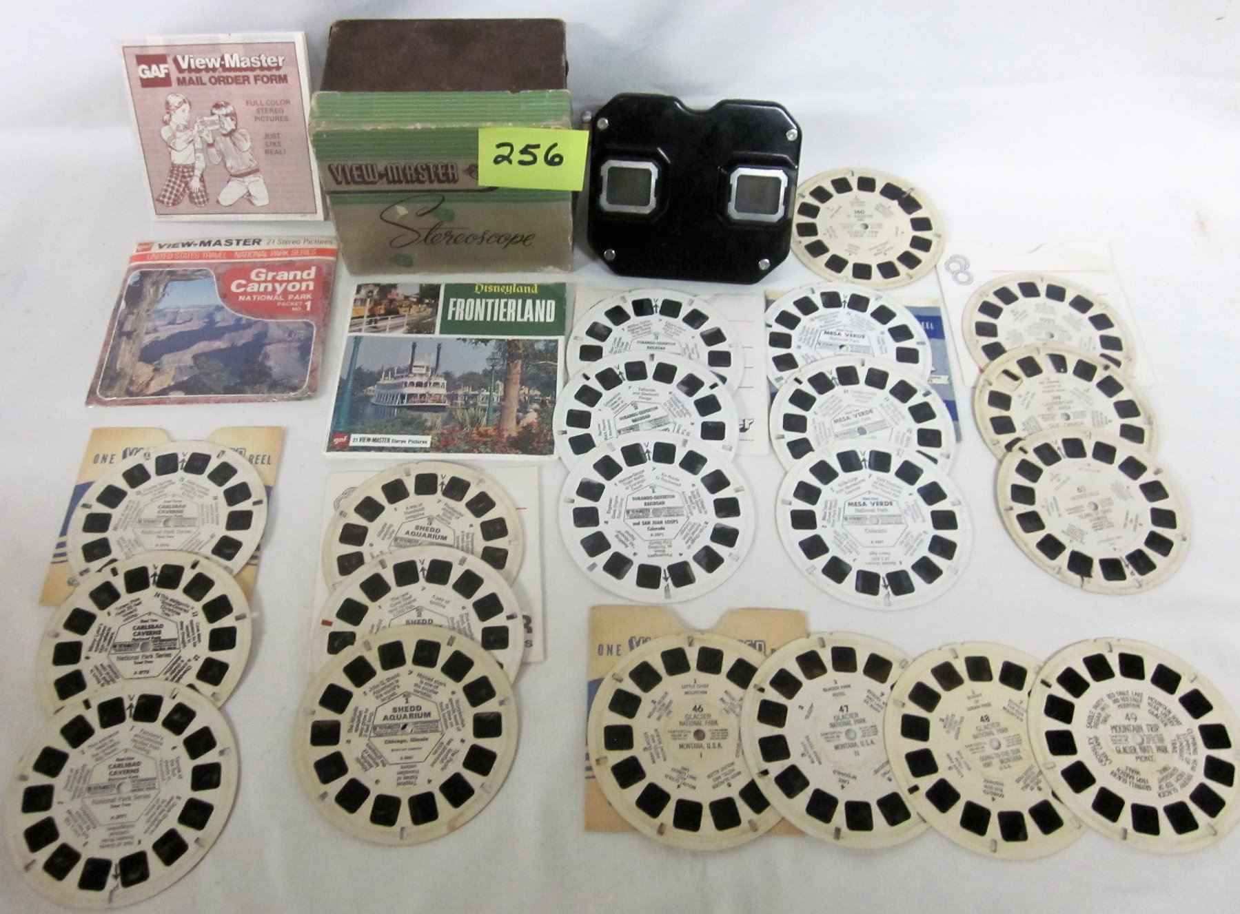 Vintage sawyers Bakelite Steroscope viewer / original box & lid. Assorted vintage reels.