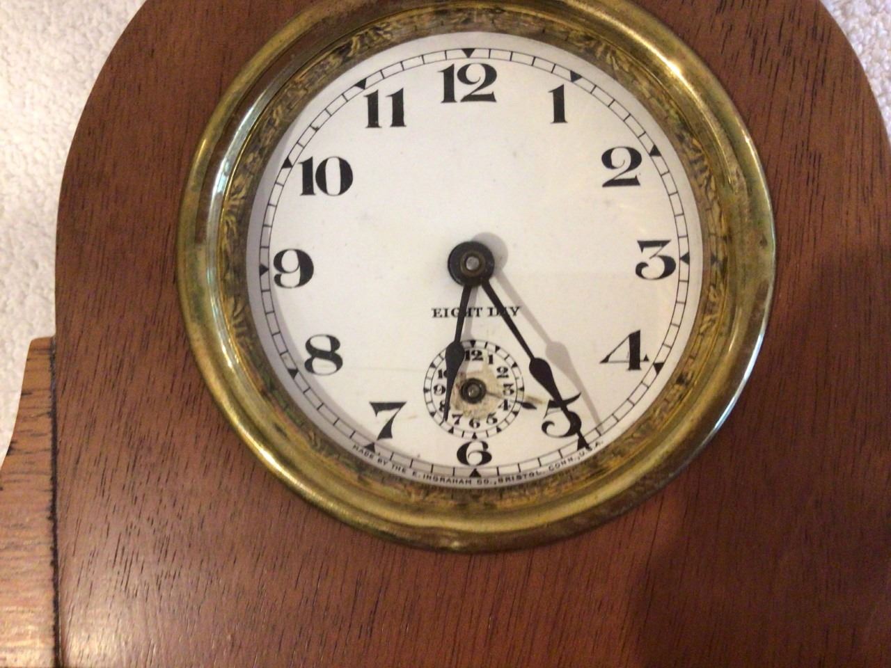 Vintage smaller mantel clock, 8 day, made by the E. Ingraham Co., Bristol, Conn, USA