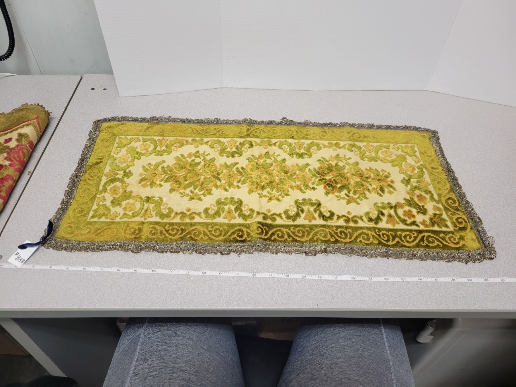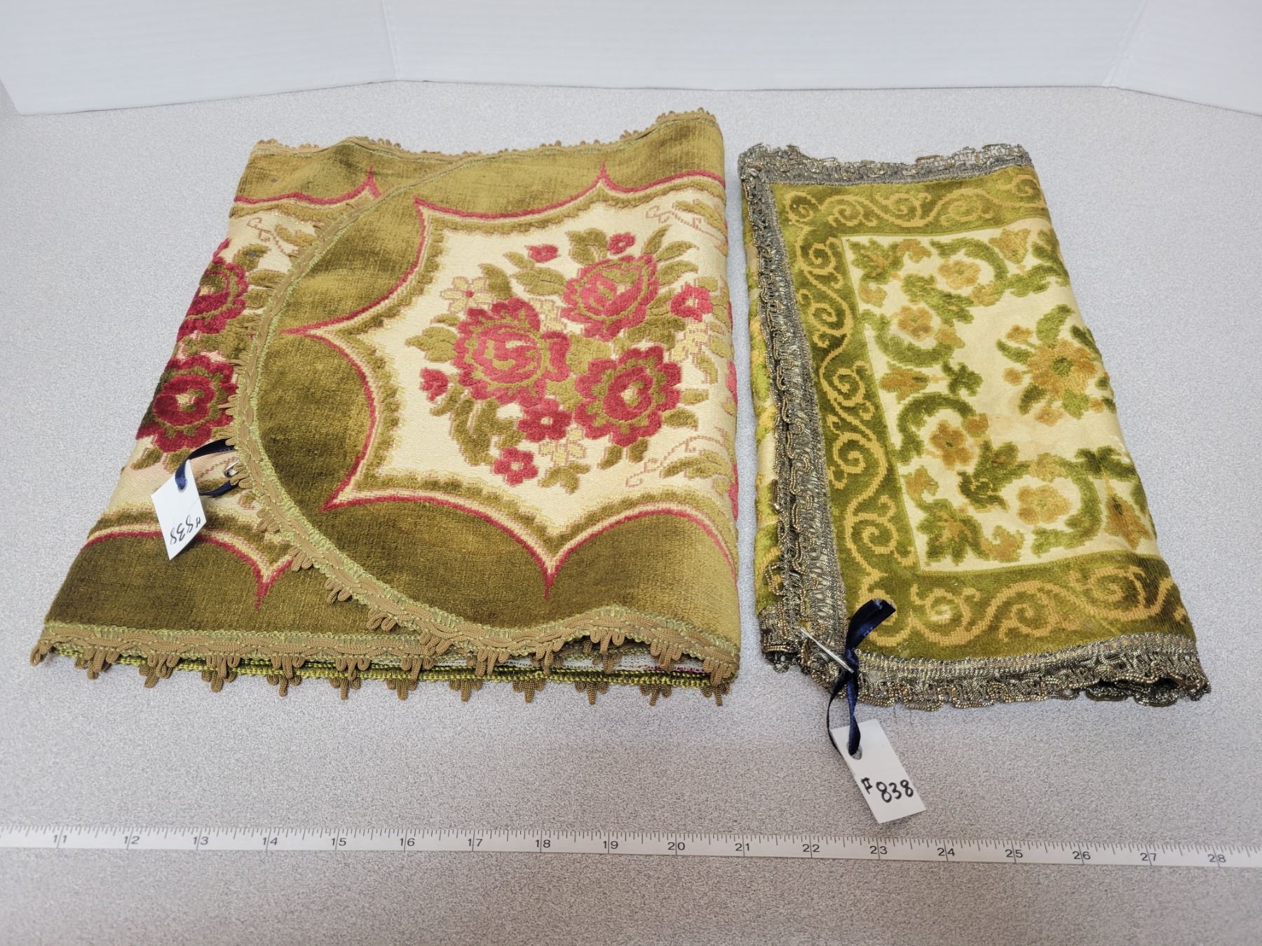 Vintage table runners, viscose and metal made in Belgium