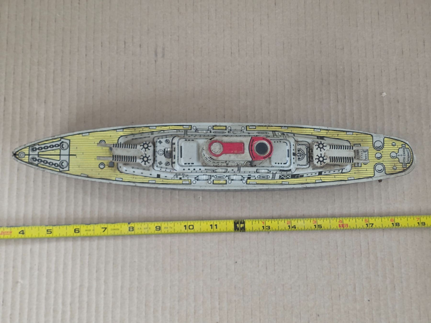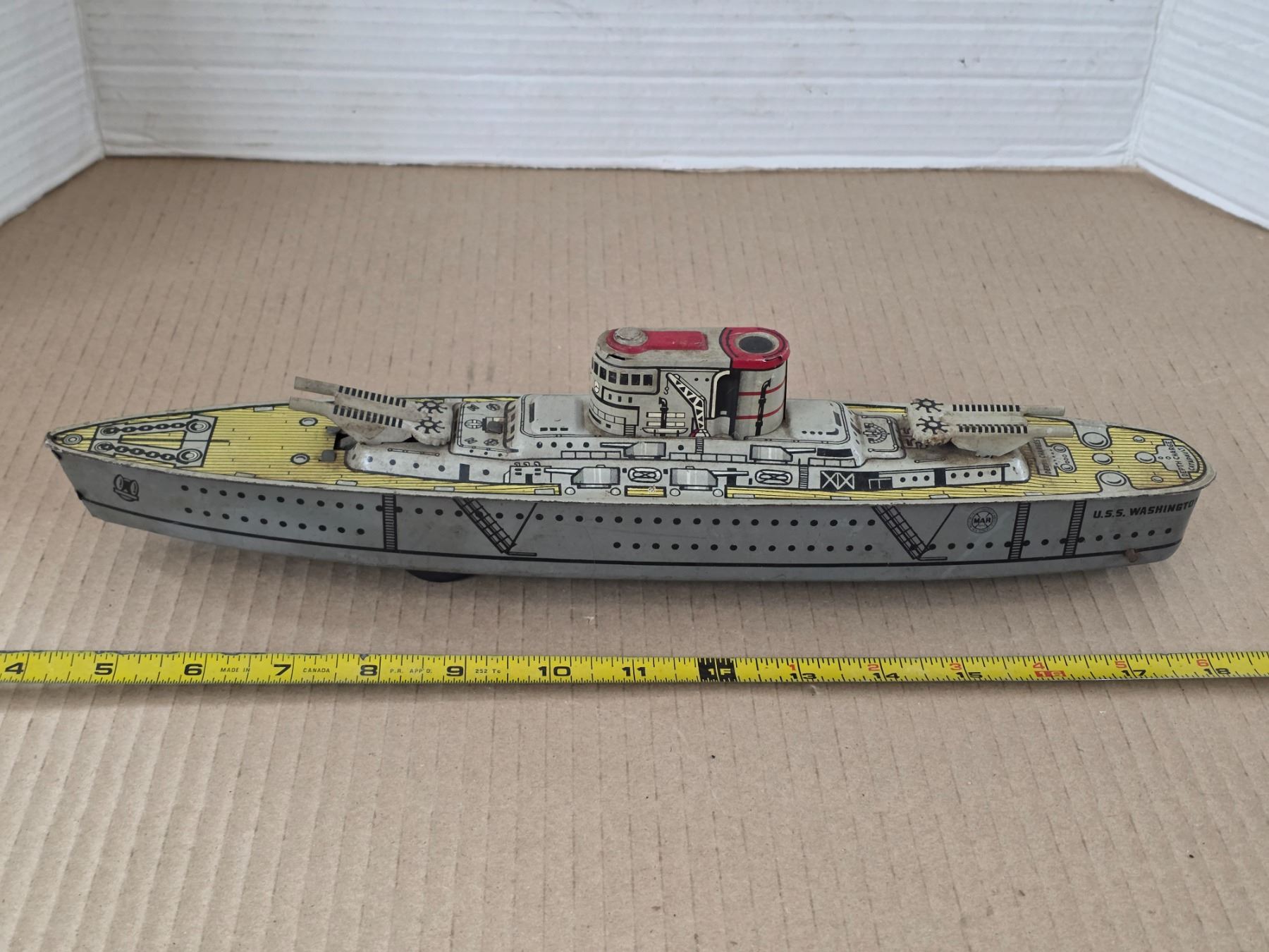 Vintage tin battle ship uss washinton-13"L