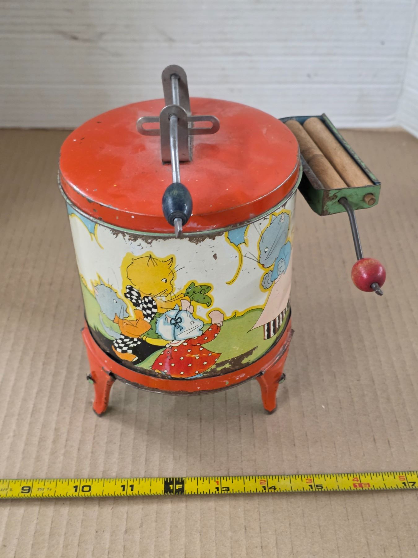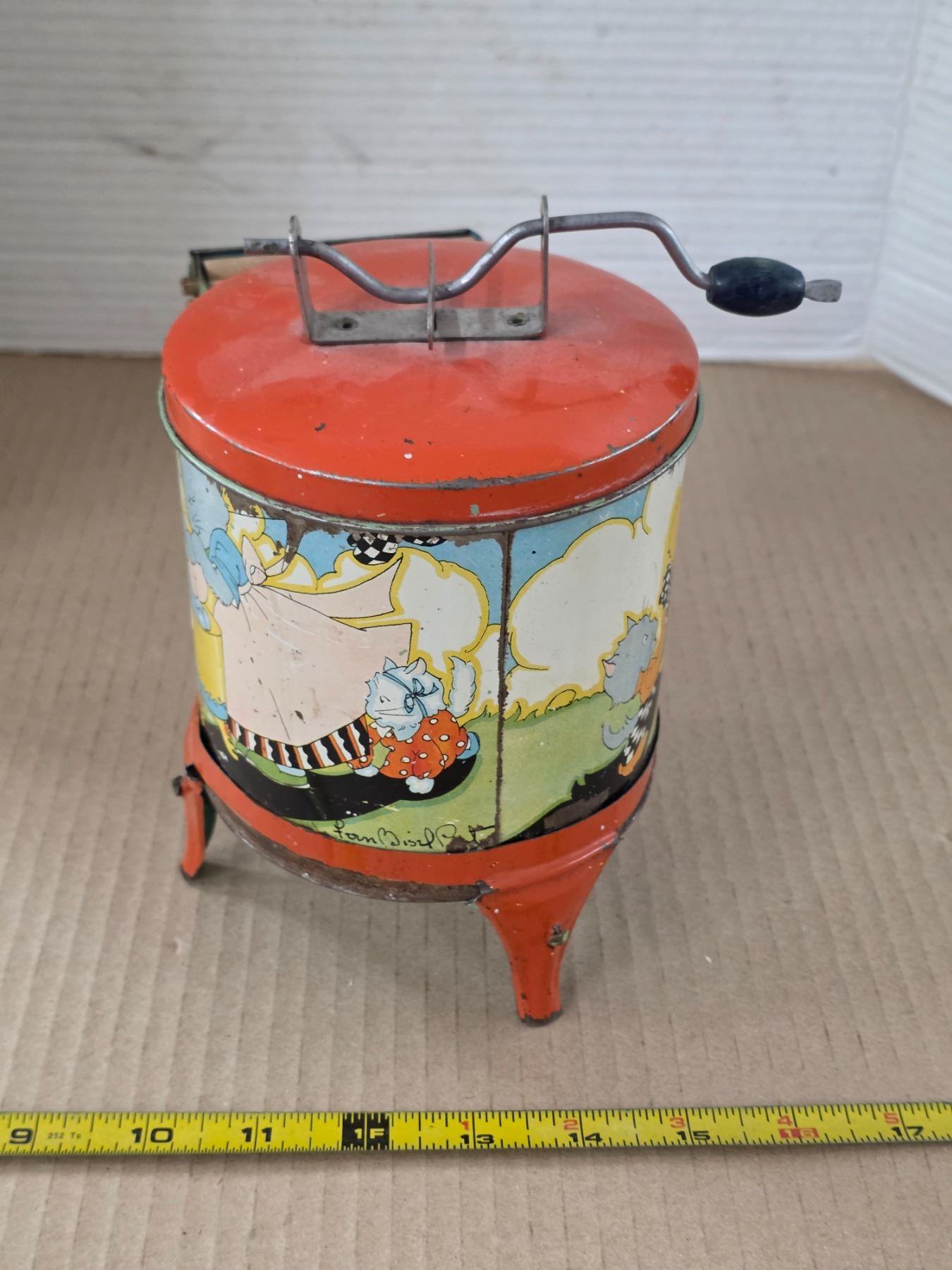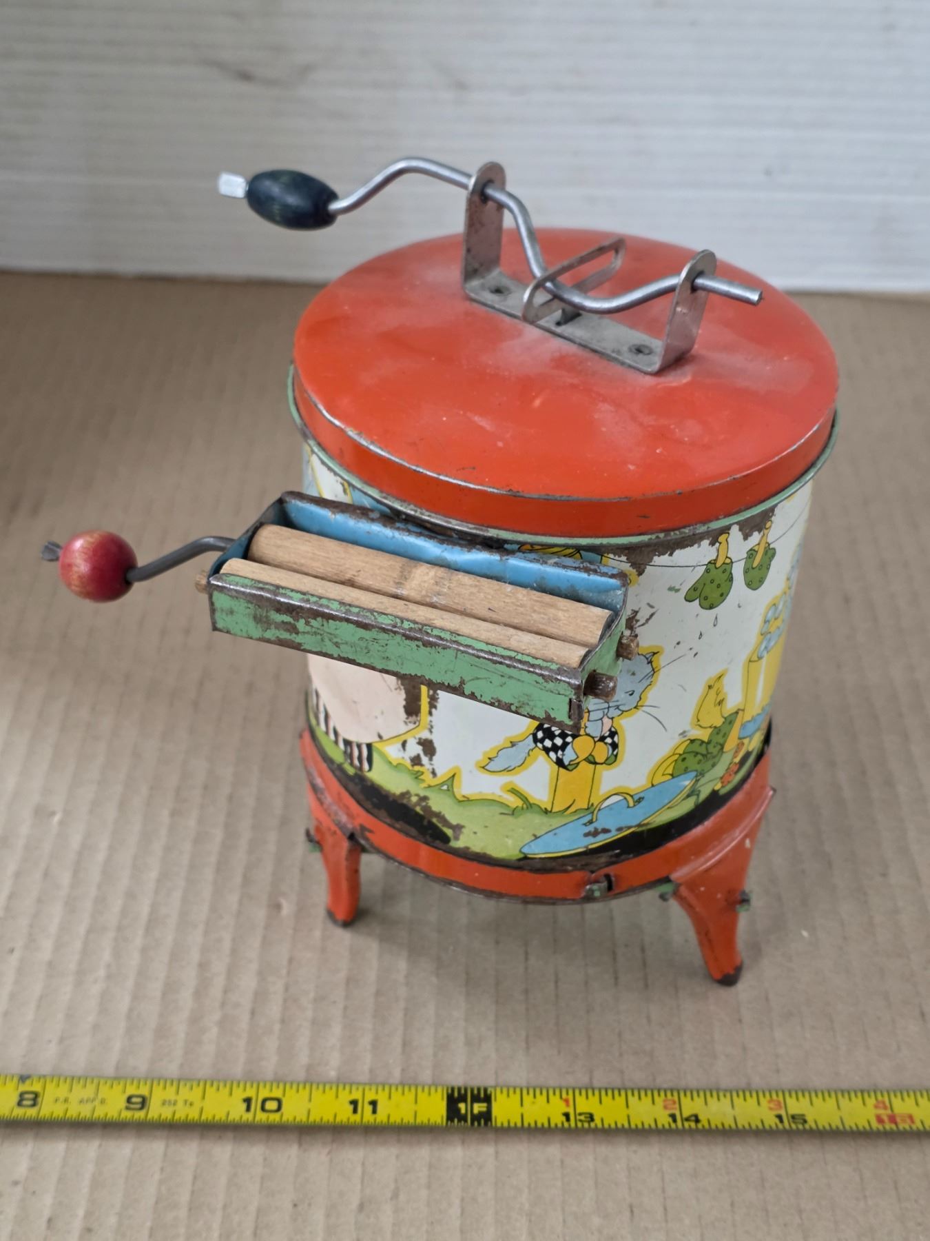 Vintage tin washing machine toy- 7"H