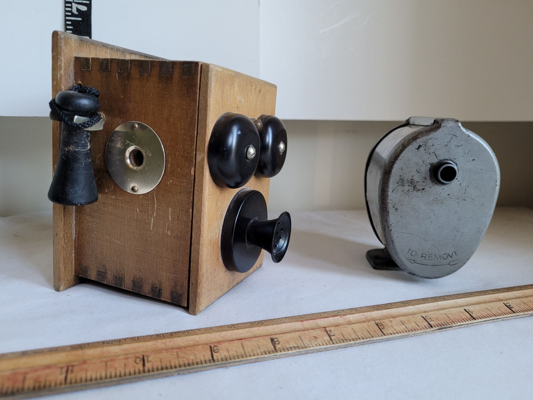Vintage wall pencil sharpener. Unique vintage phone sharpener.