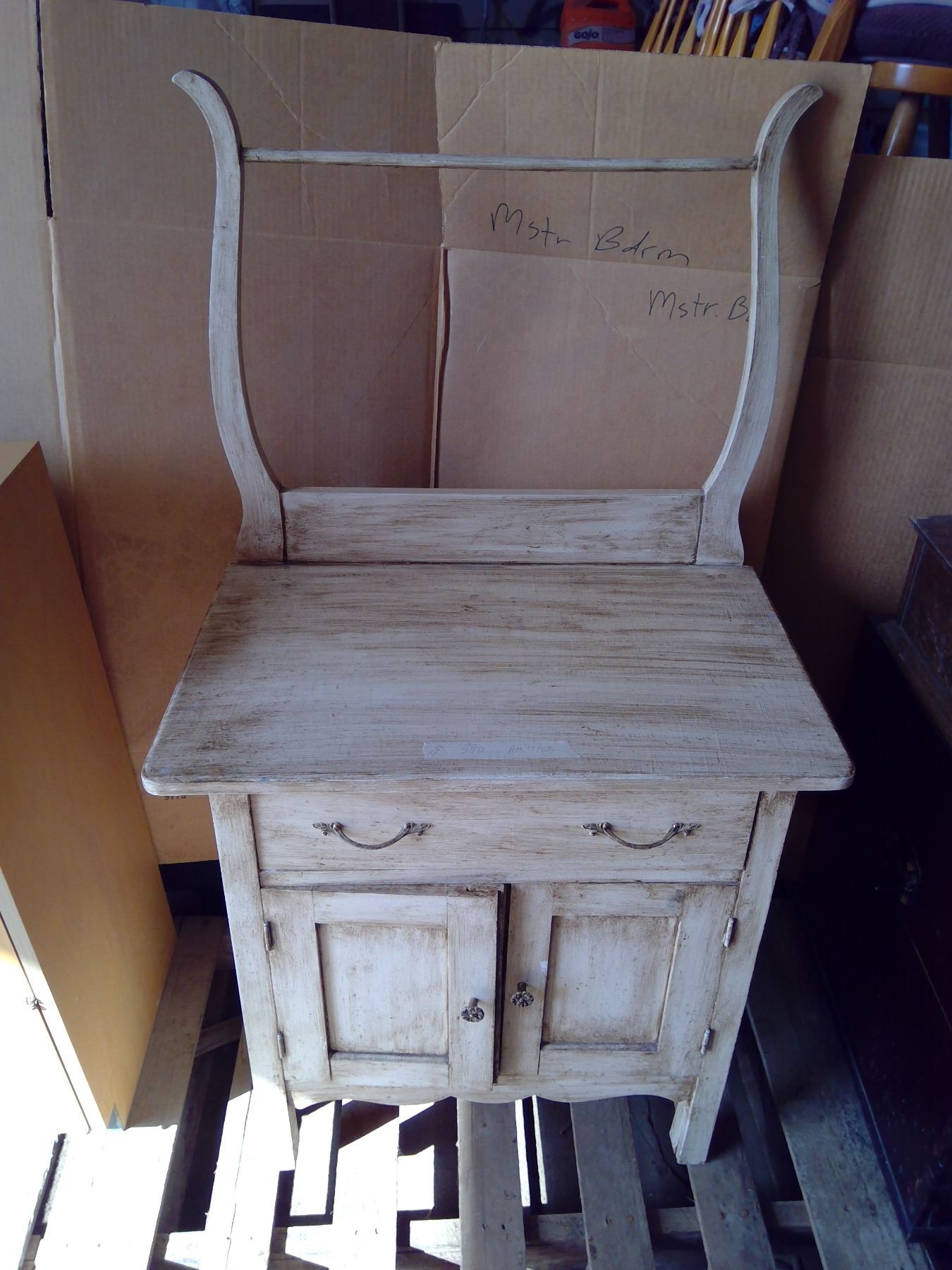 Vintage washing cupboard with contents 16 D 26.5 L, 49 H