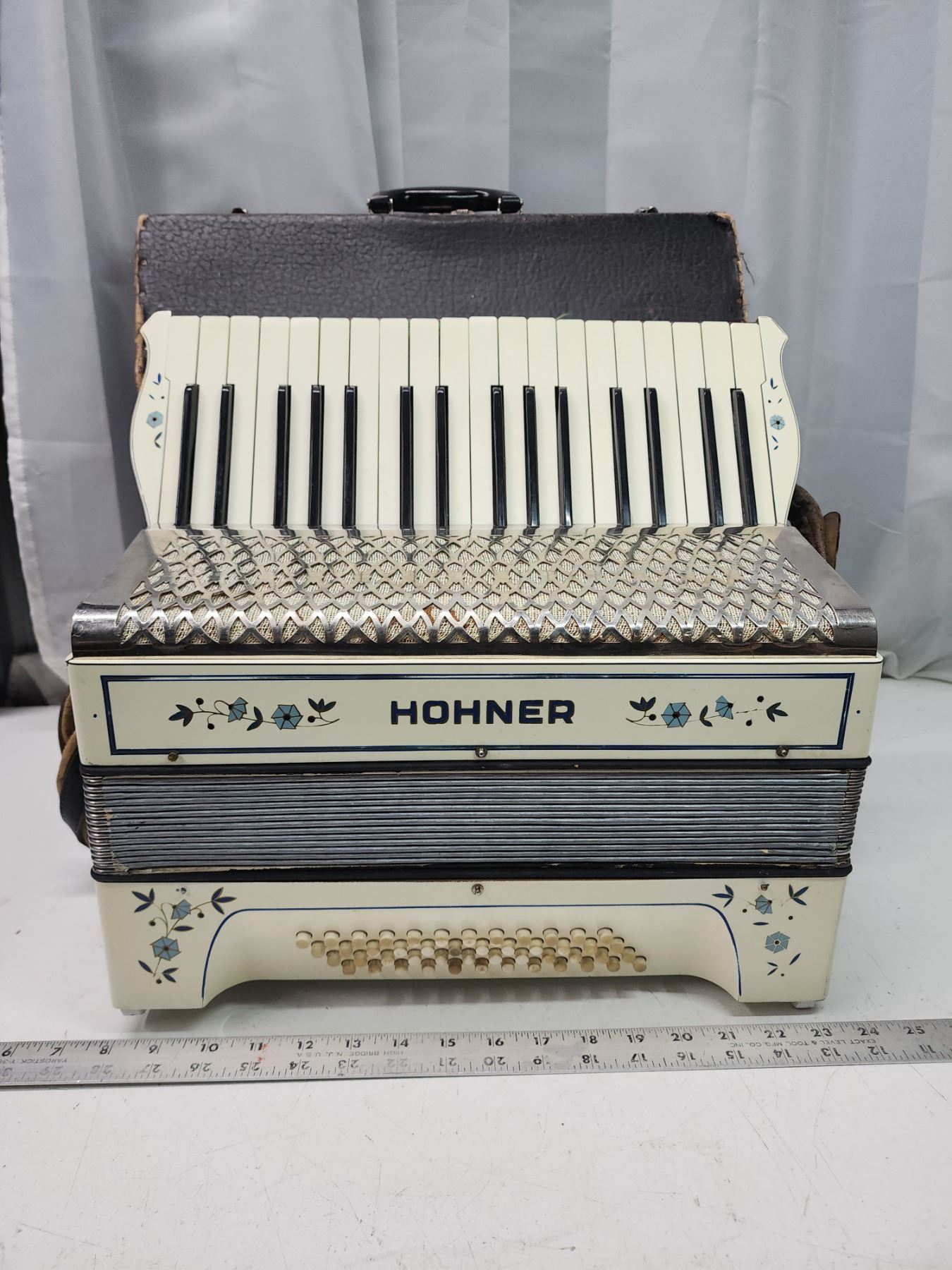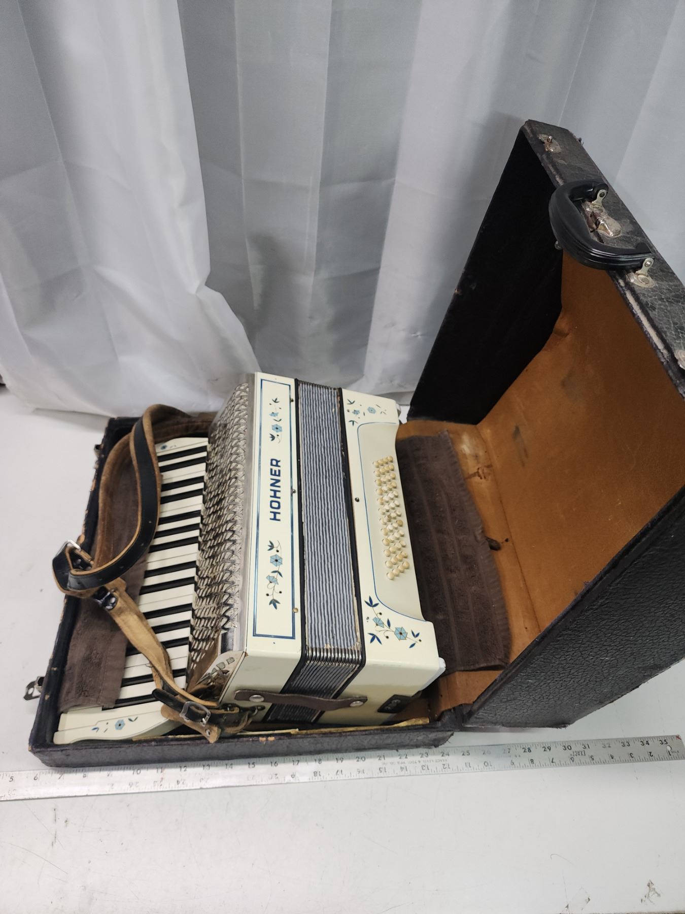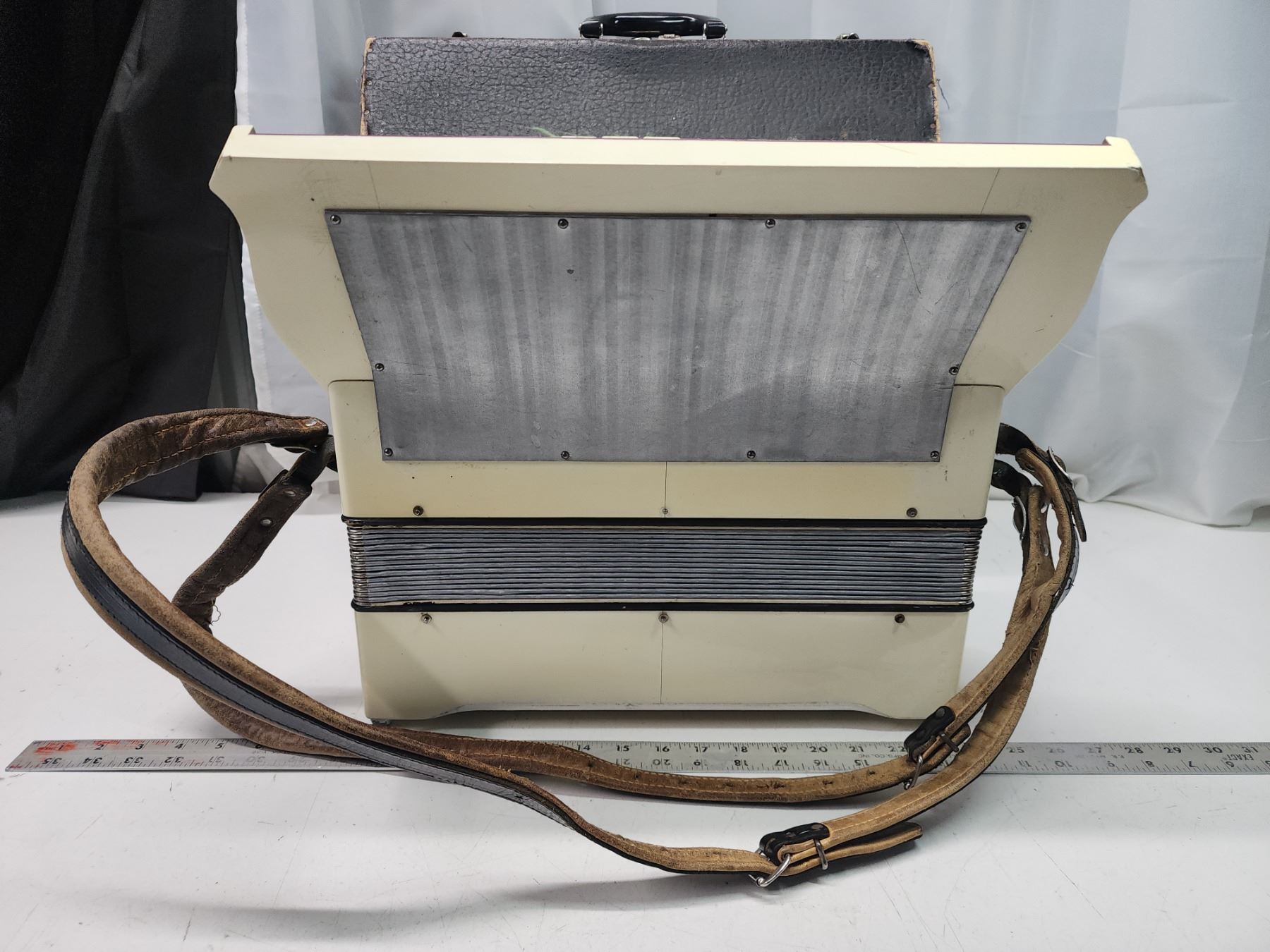 Vintage white "Hochner" accordion, plays beautifully - c/w carrying case