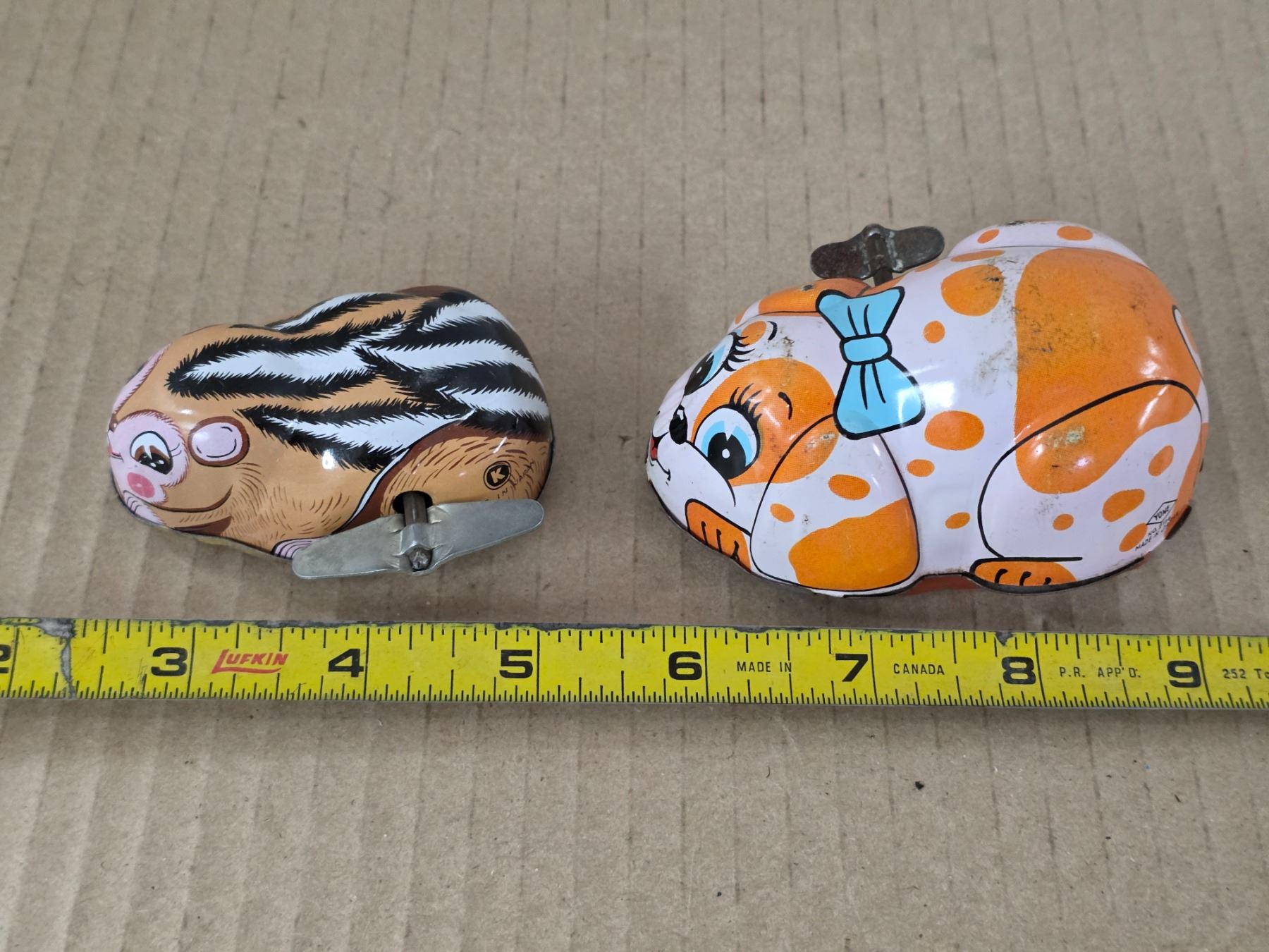 Vintage wind up bunny and chipmunk tin toys