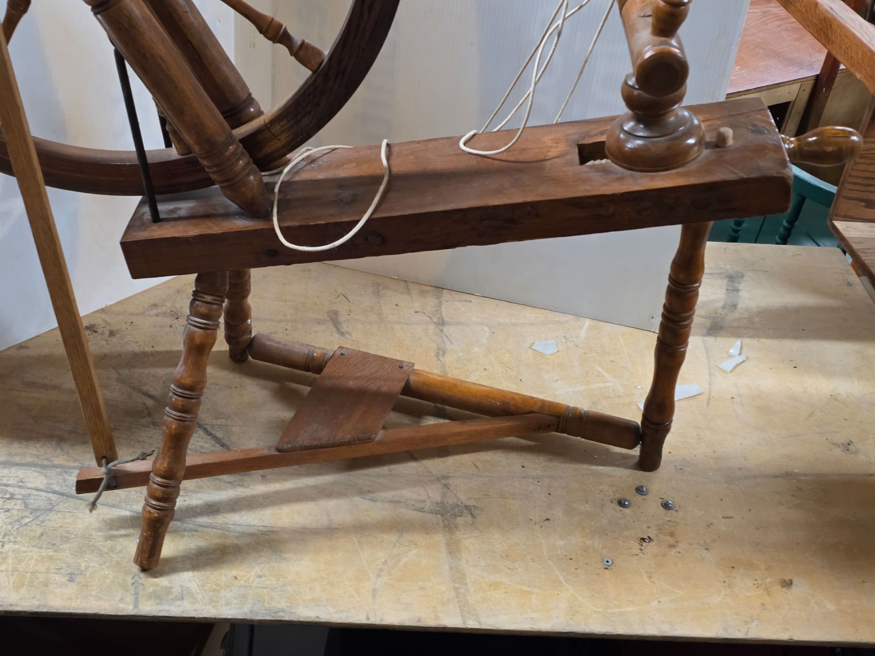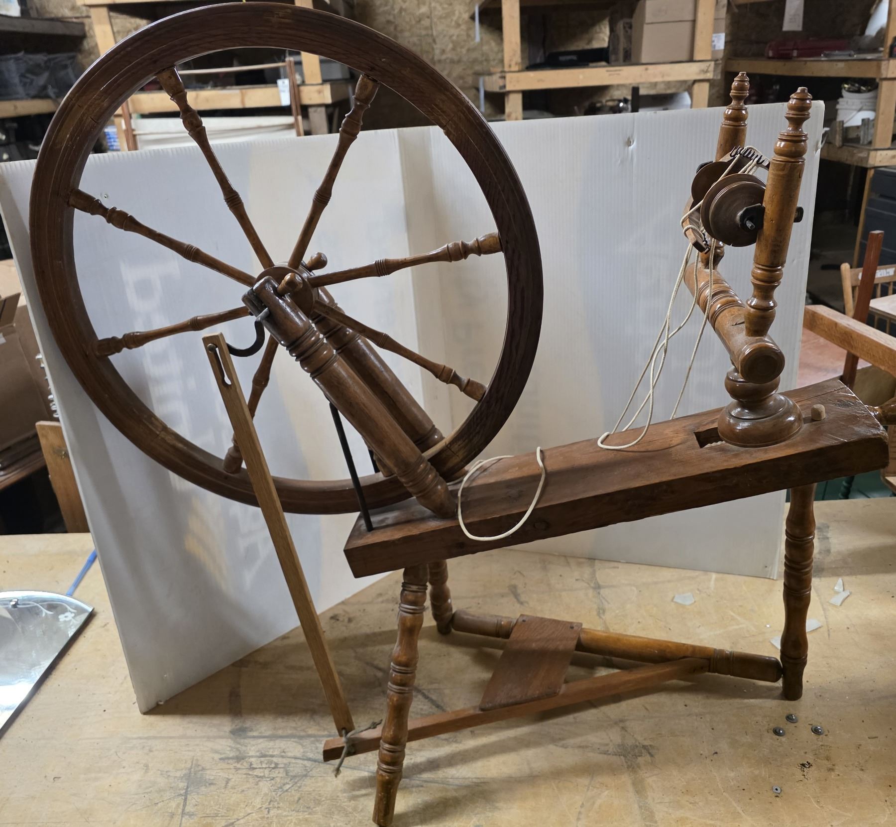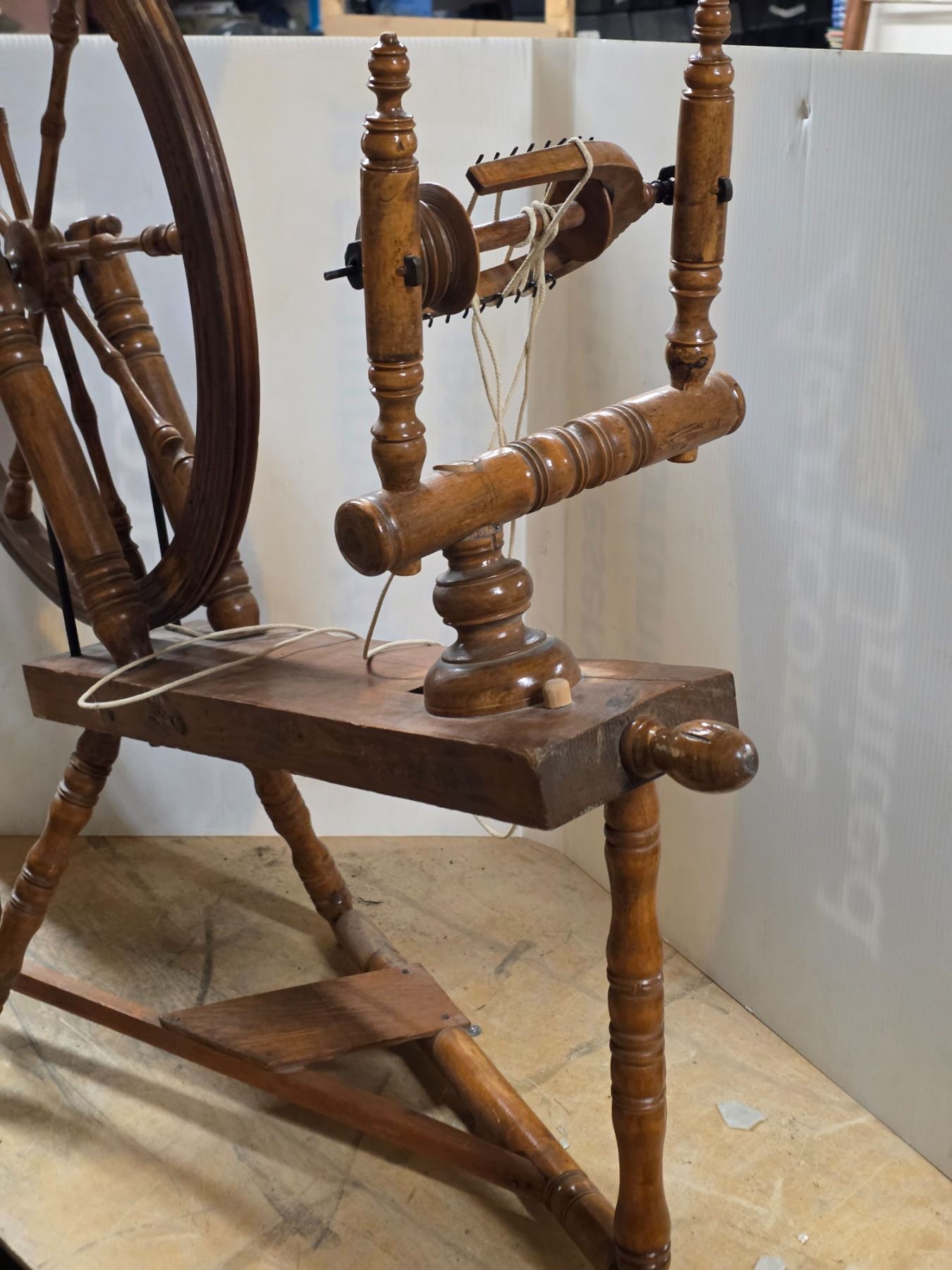 Vintage wood spinning wheel