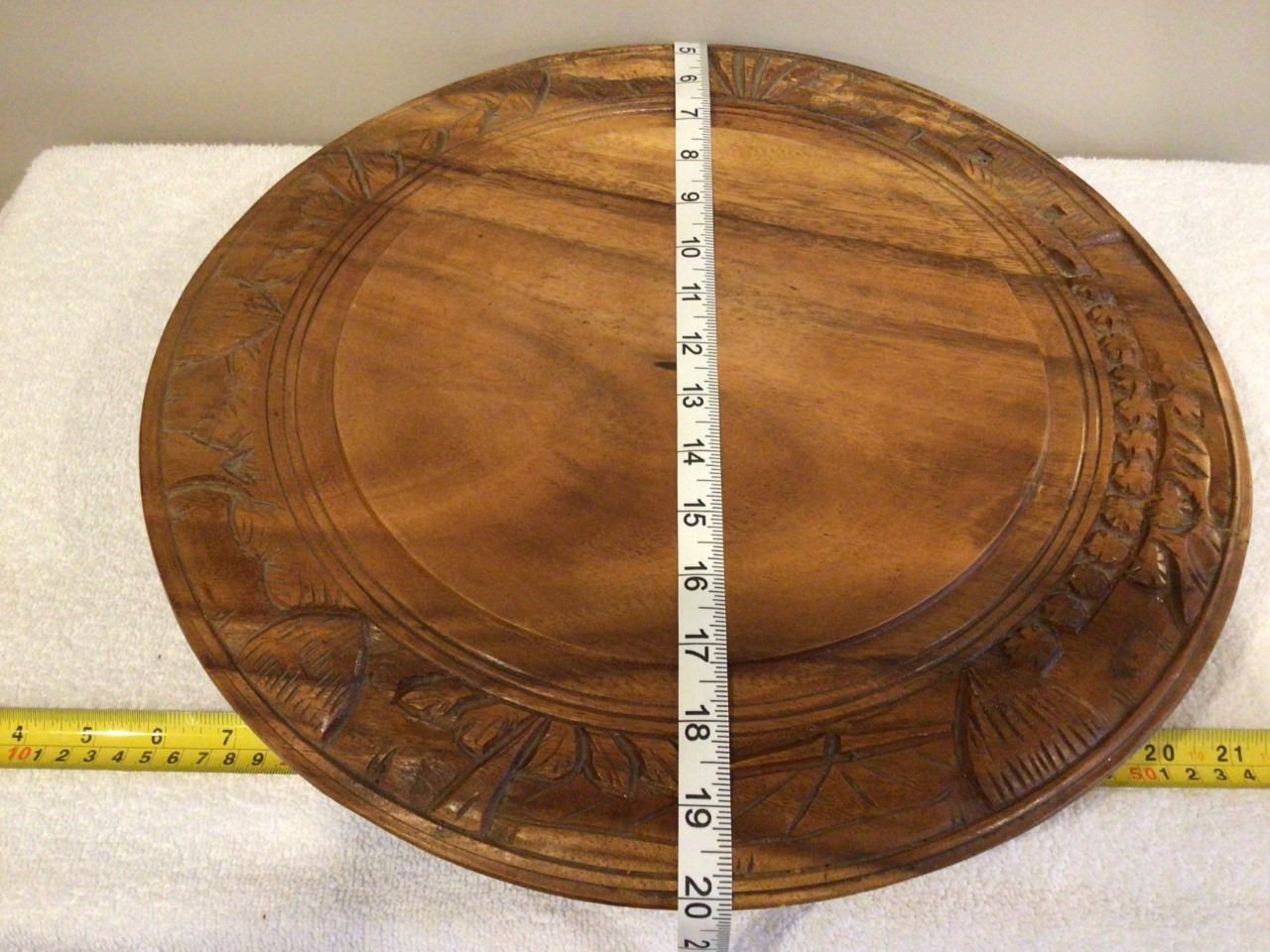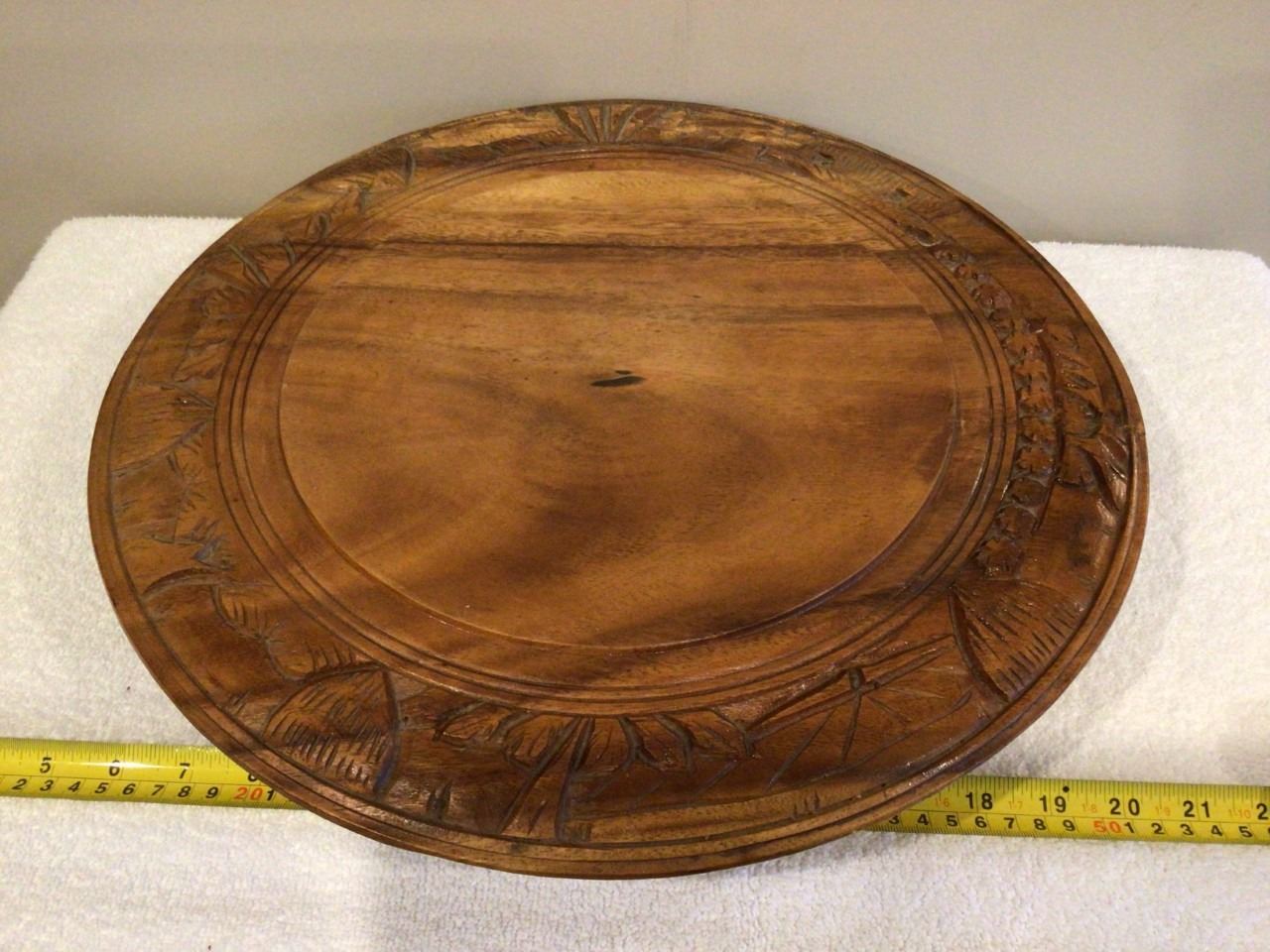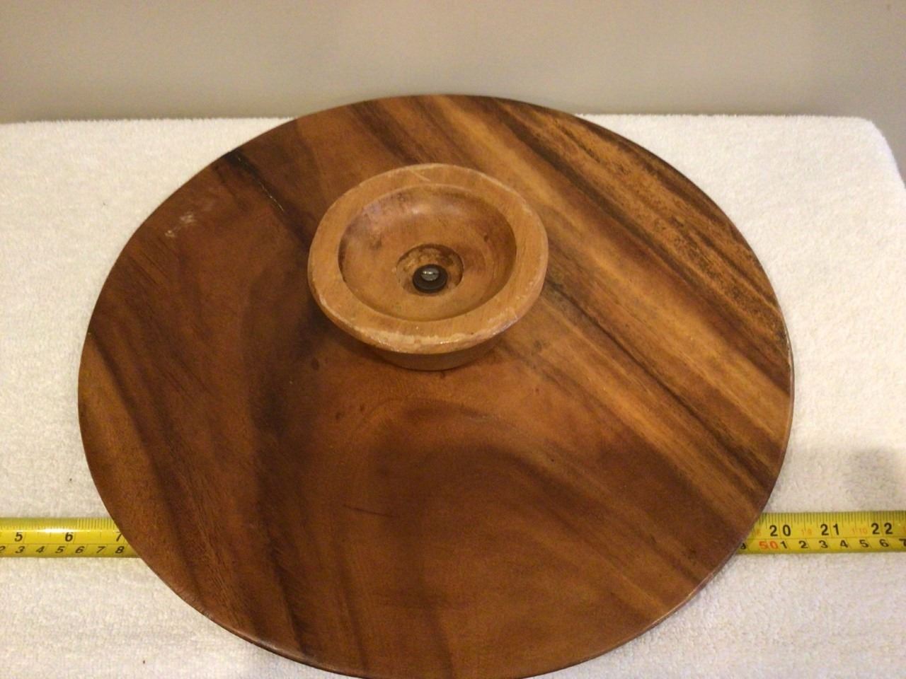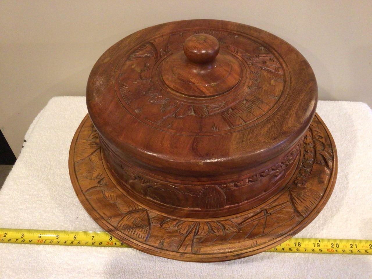 Vintage wooden cake stand, large hand carved covered plate. 15", beautiful