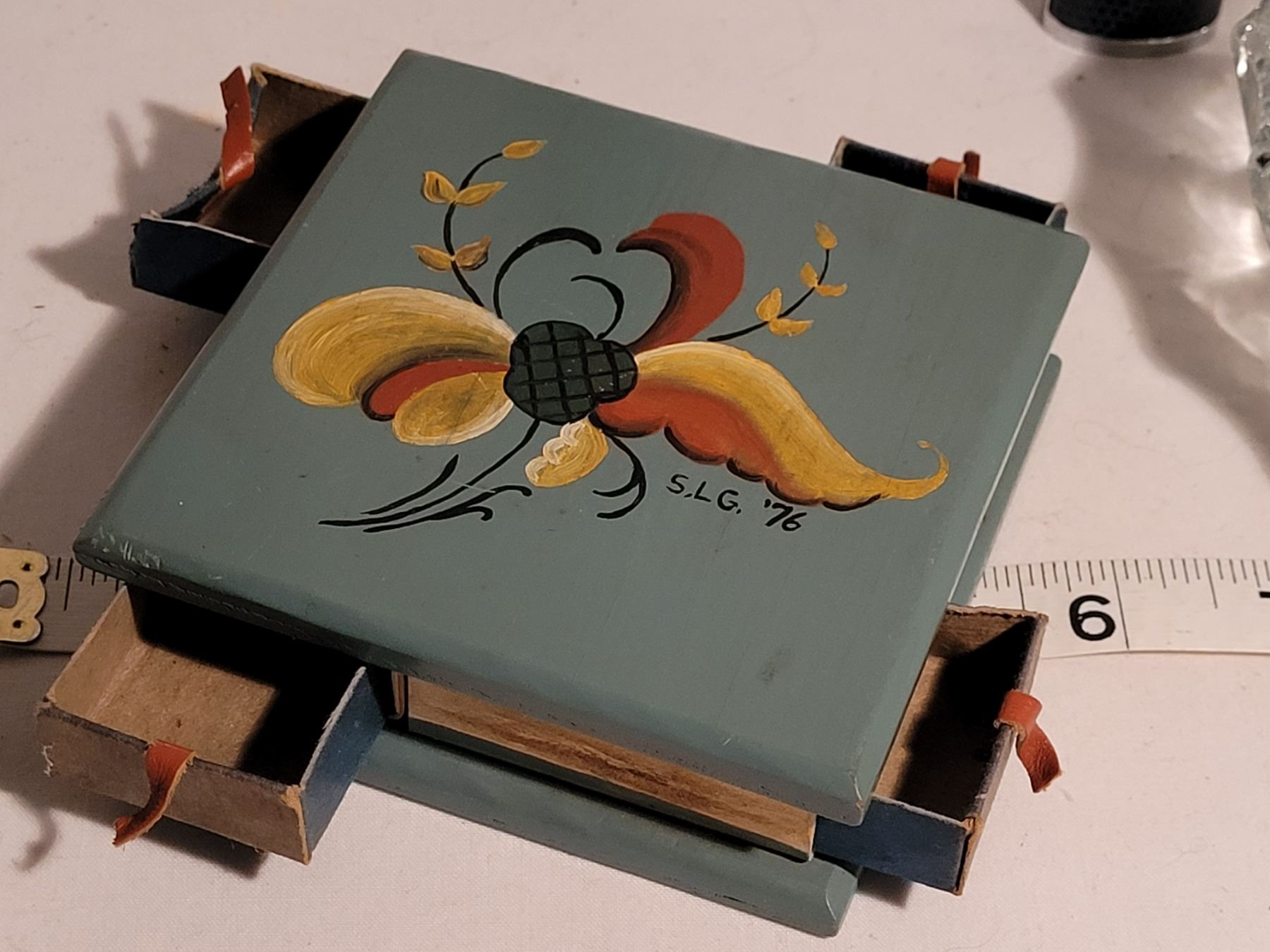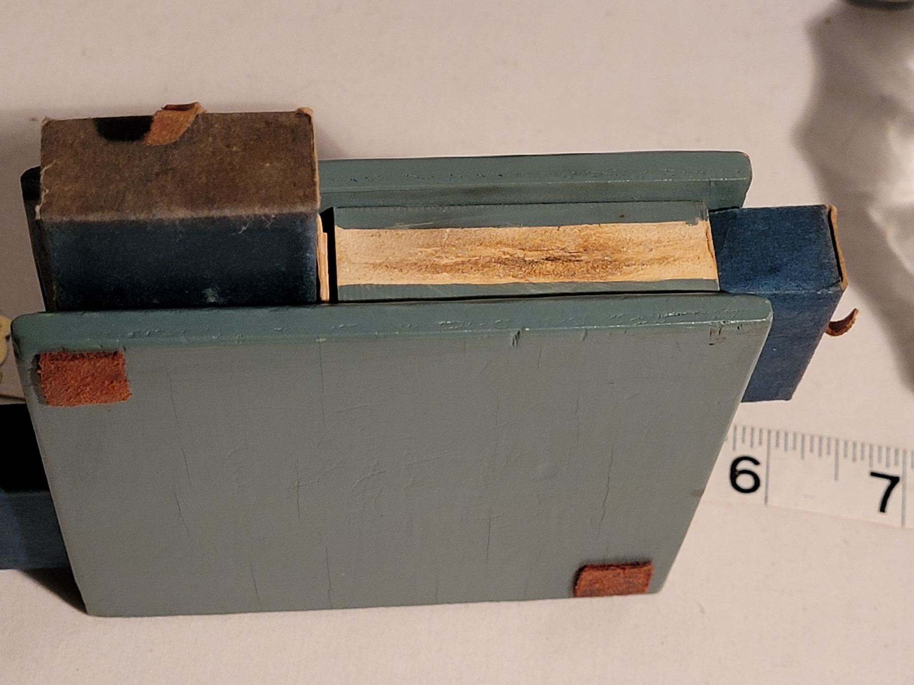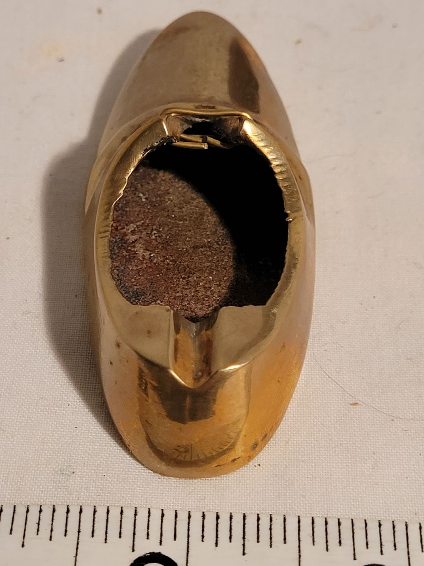 Vintage wooden matchbox (4) holder, butane lighter & brass shoe ashtray (made in India)