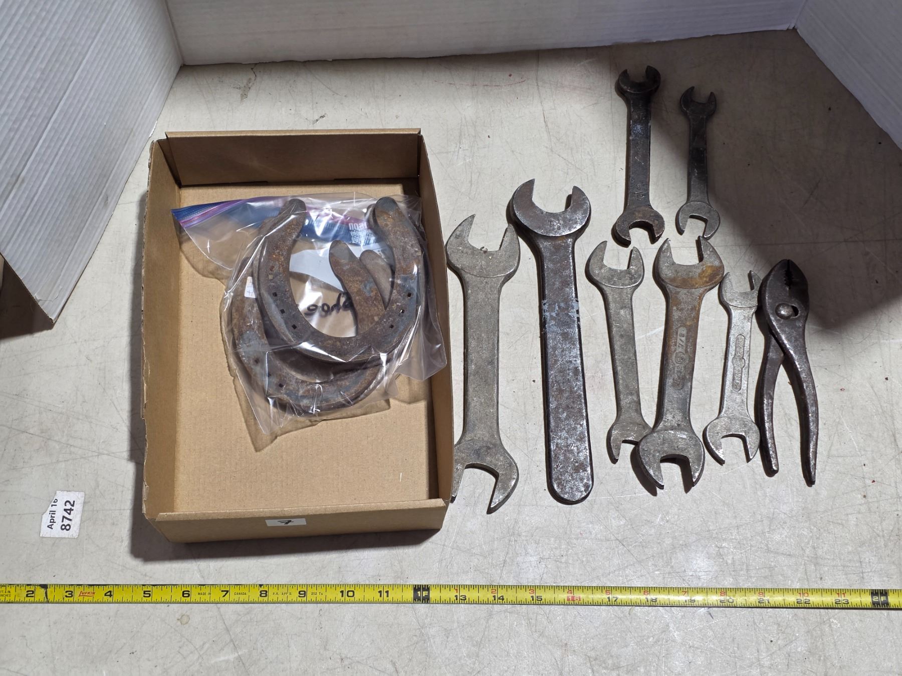 Vintage wrenchs and horse shoes