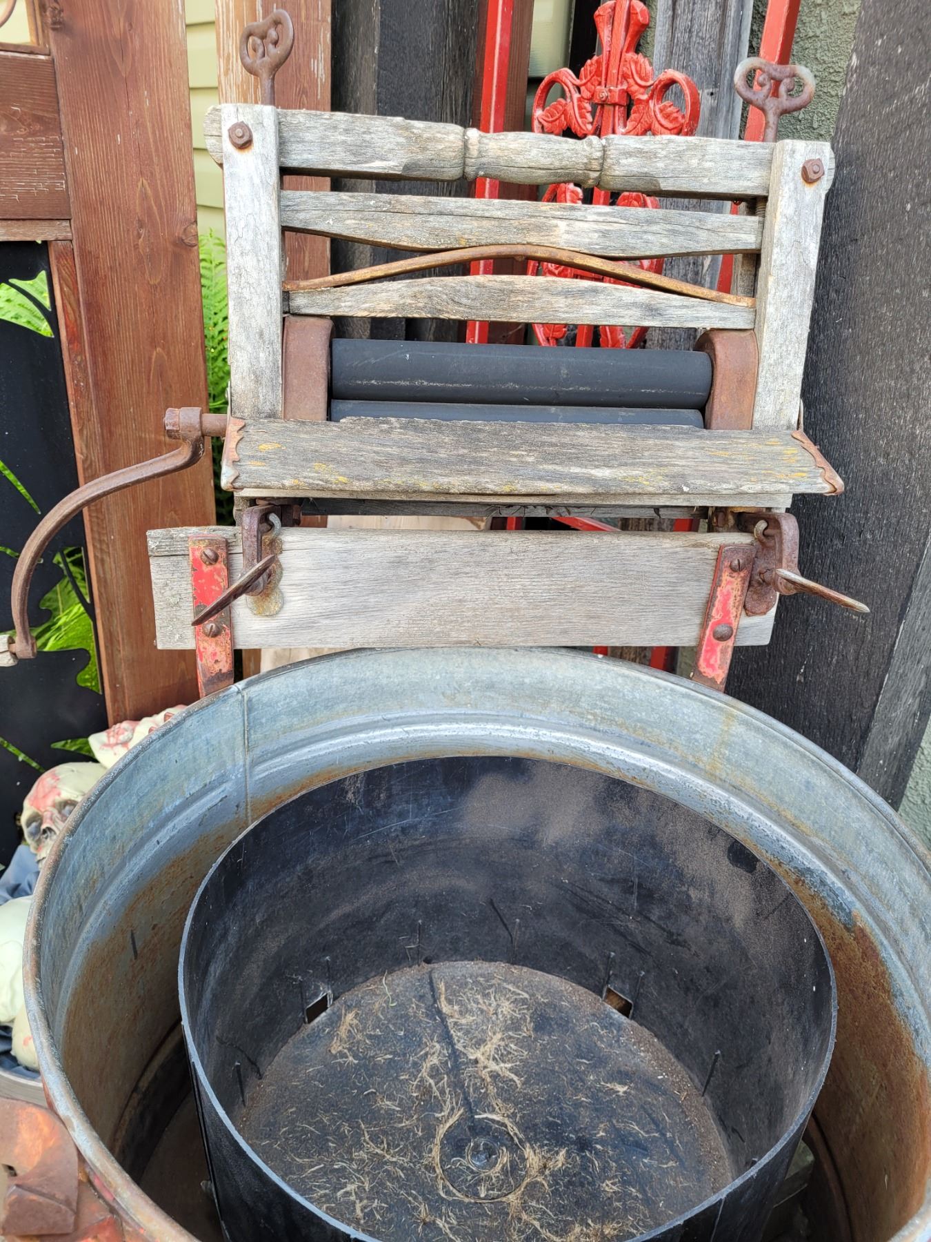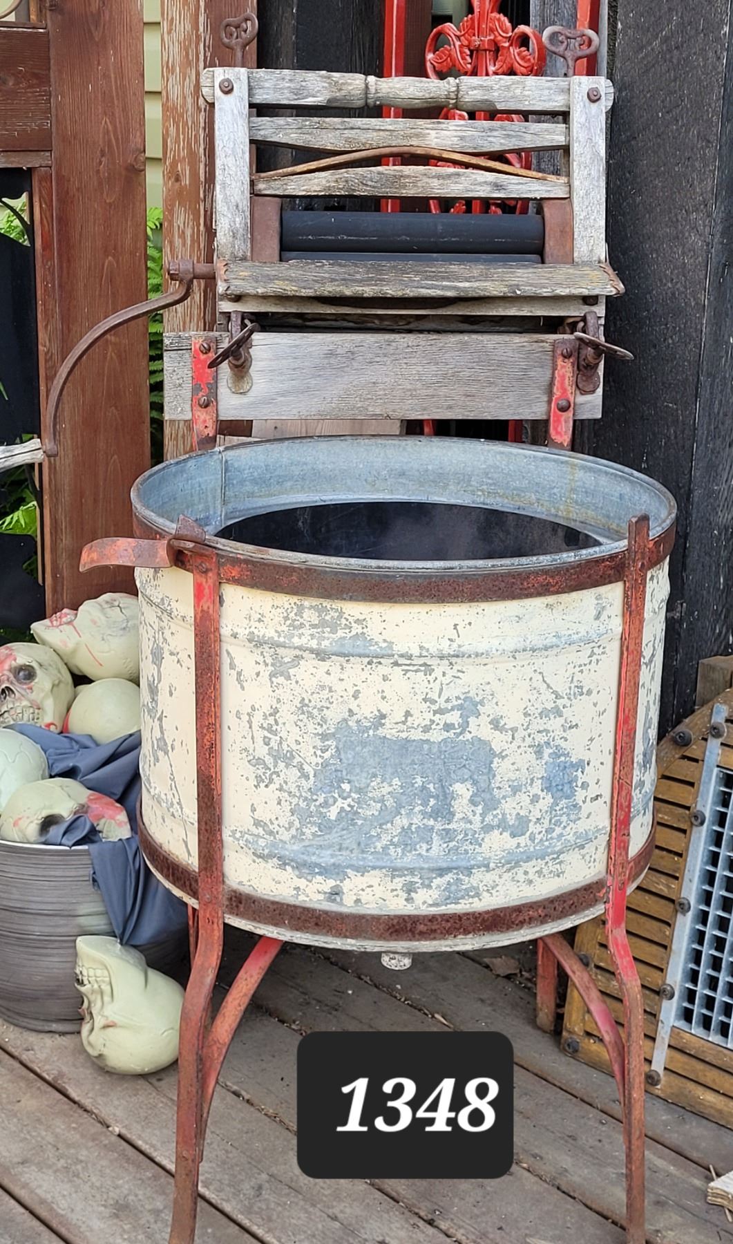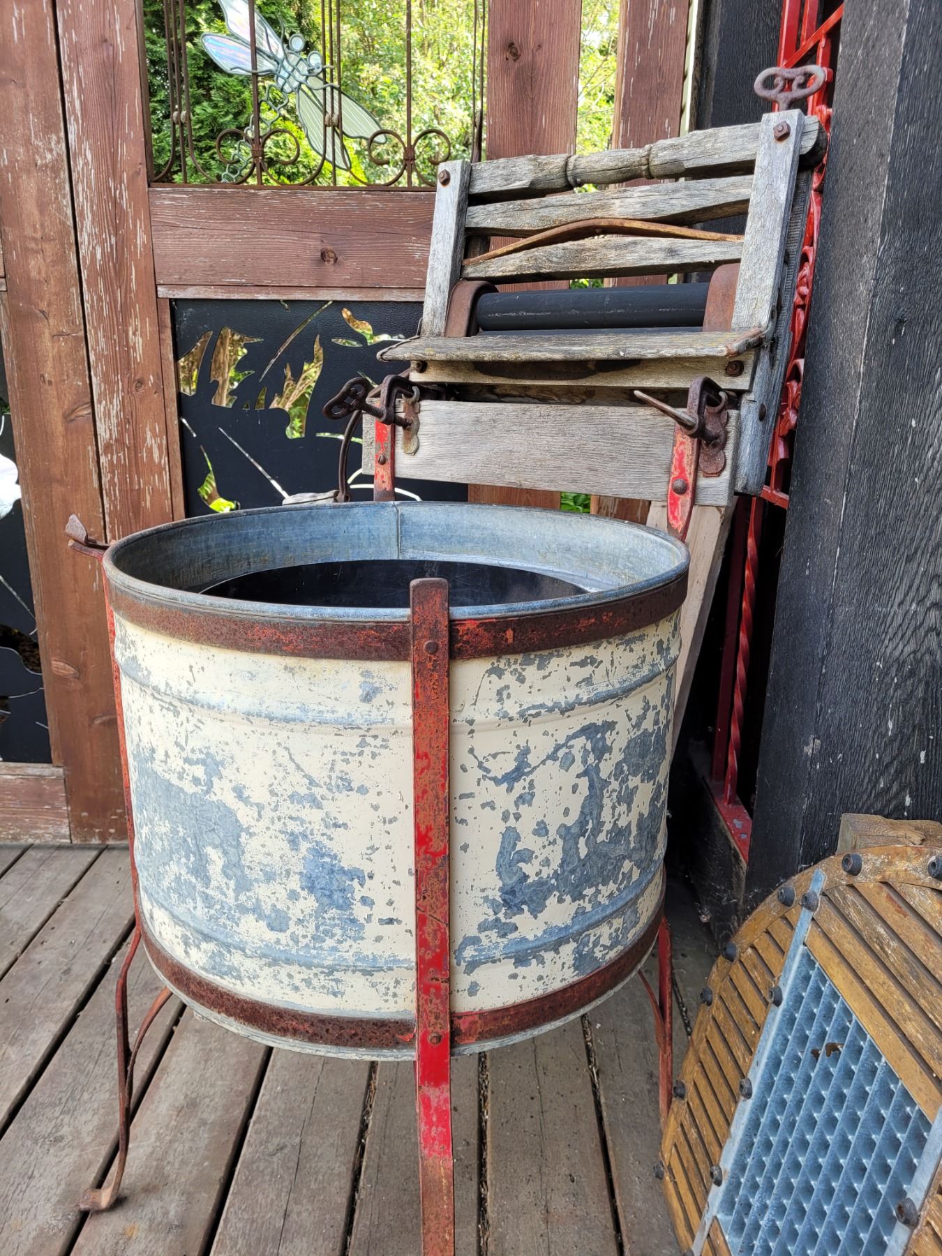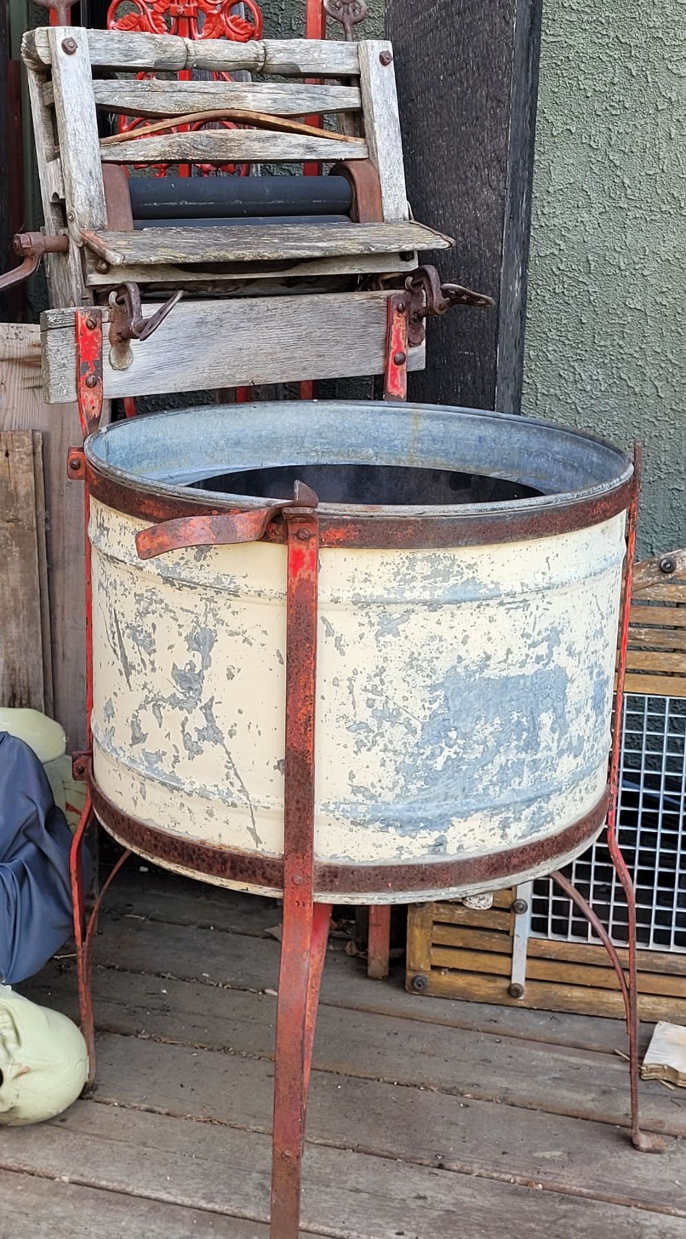 Vintage wringer wash tub. Planter.