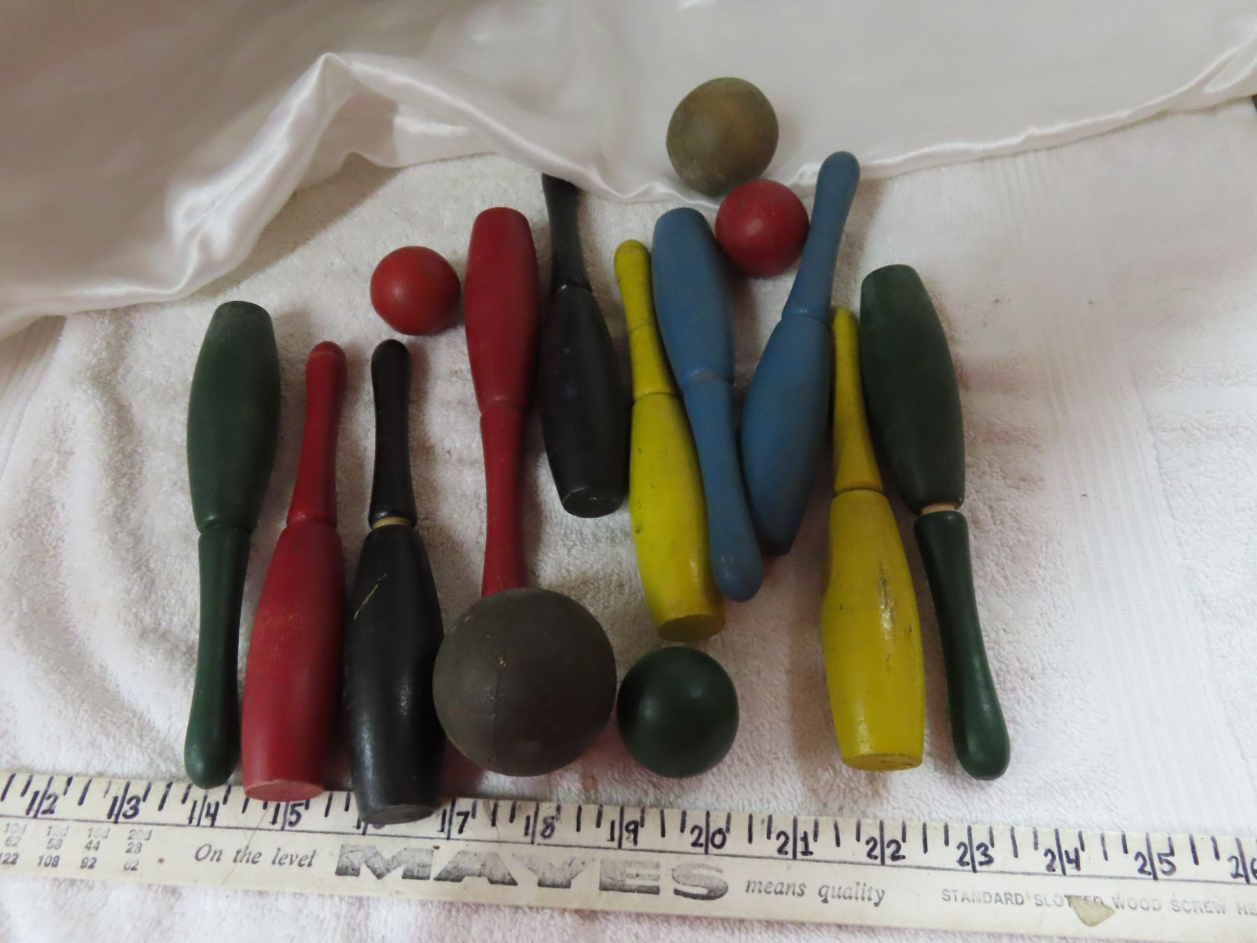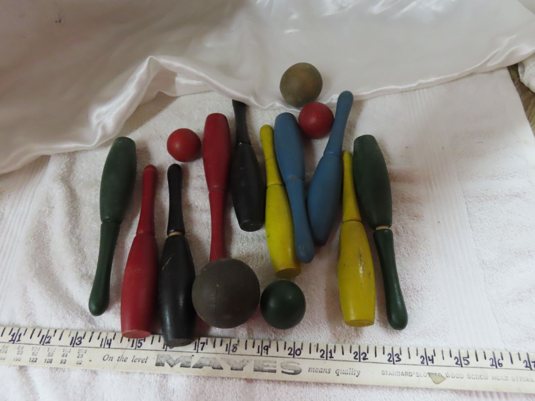 Vintager wooden bowling ball set w/ pins