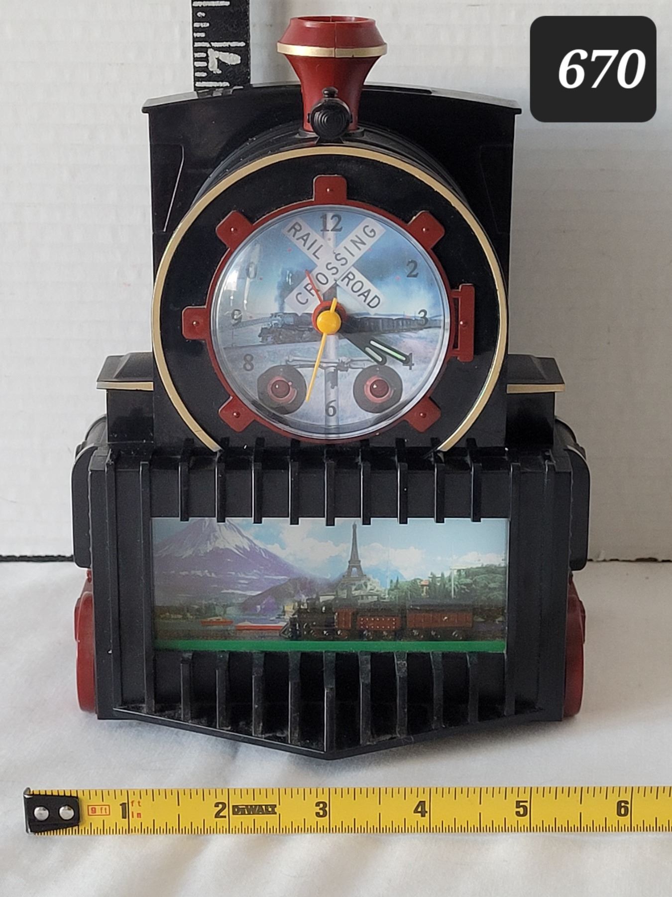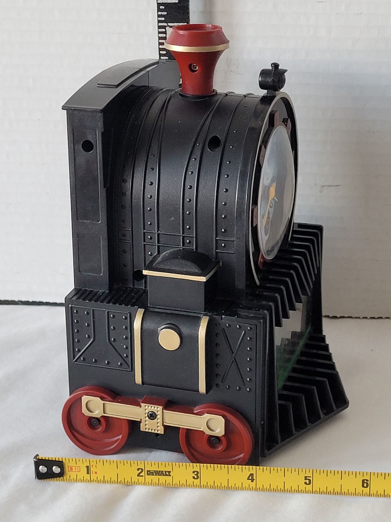 Vtg. All Aboard Quartz Train alarm clock with sound, lights & running sight screen.