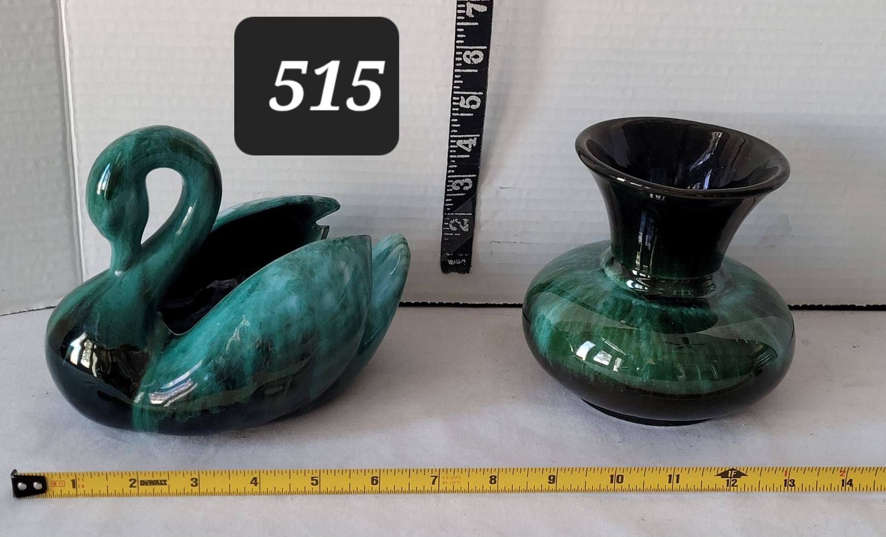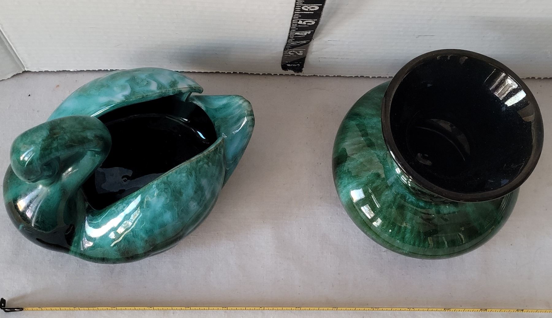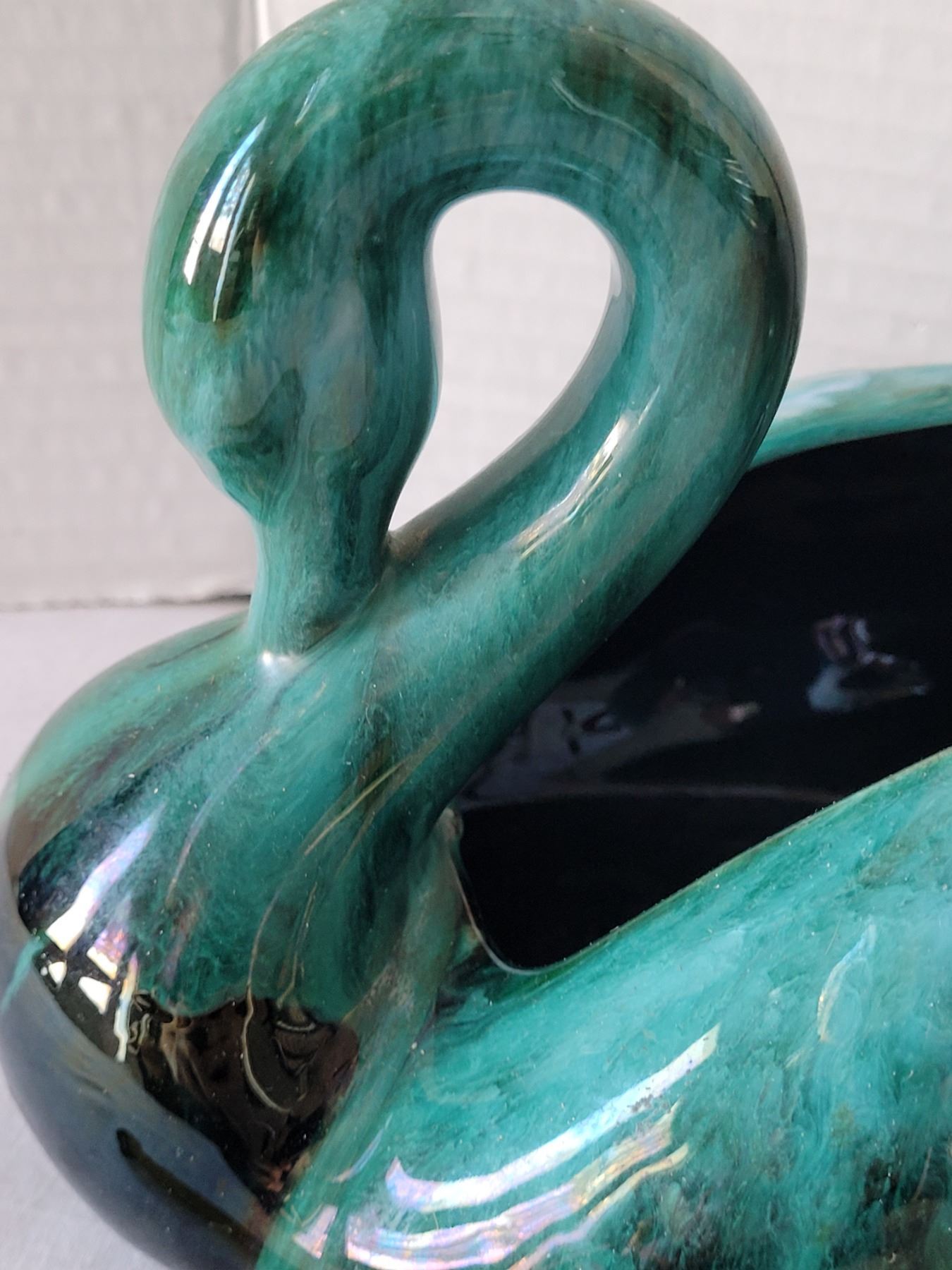 Vtg. Blue Mountain Pottery swan dish & flower vase.