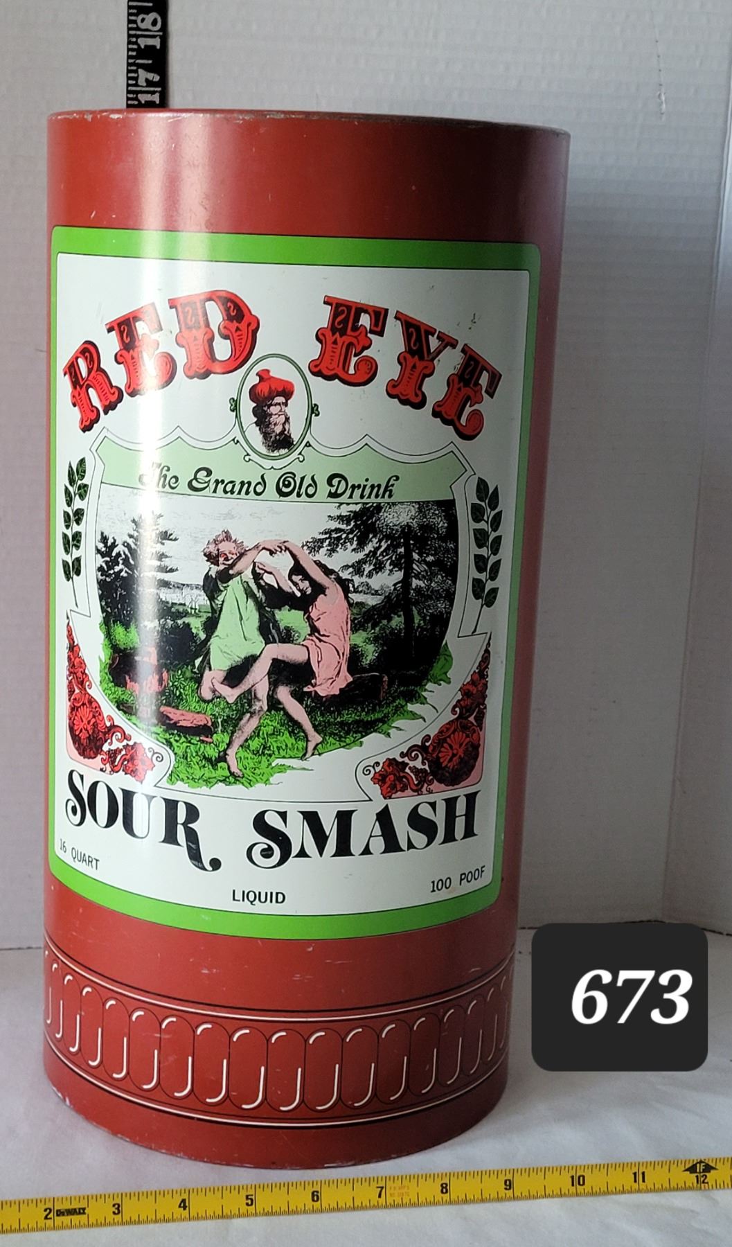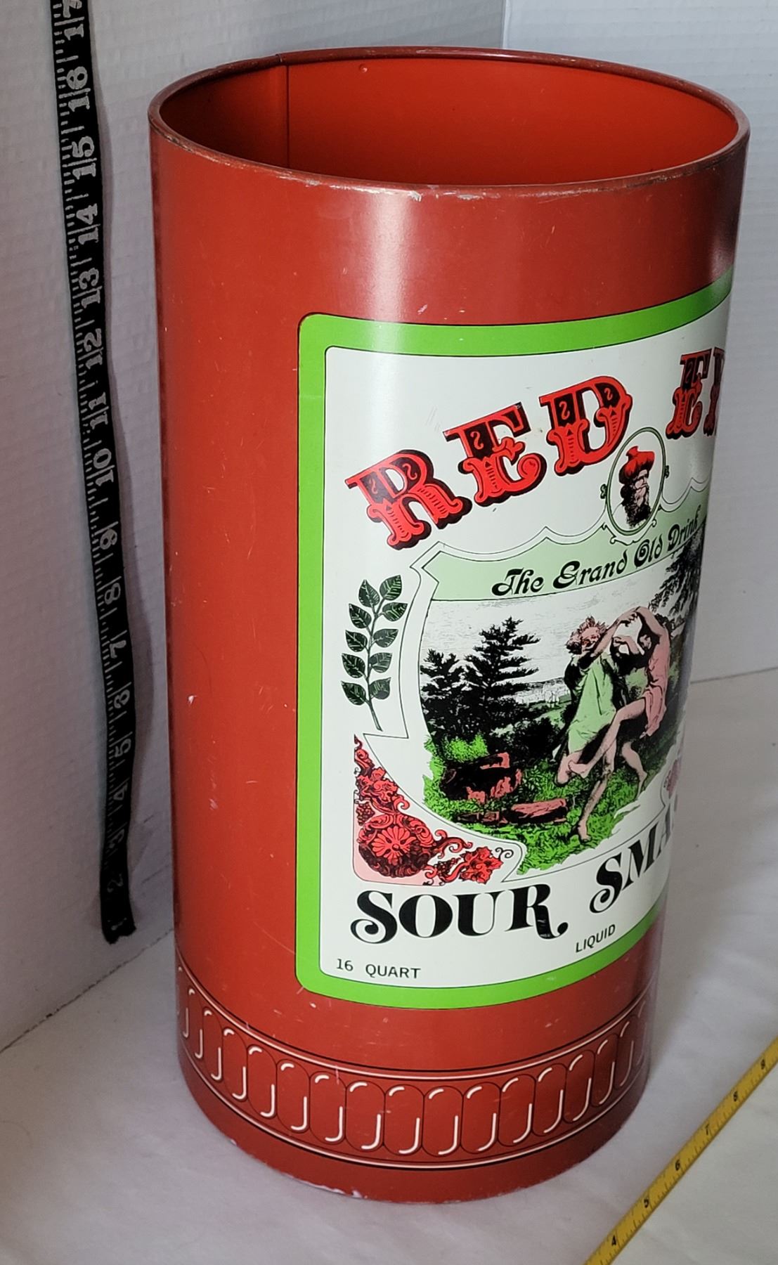 Vtg. Cheinco Red Eye Sour Smash waste can.