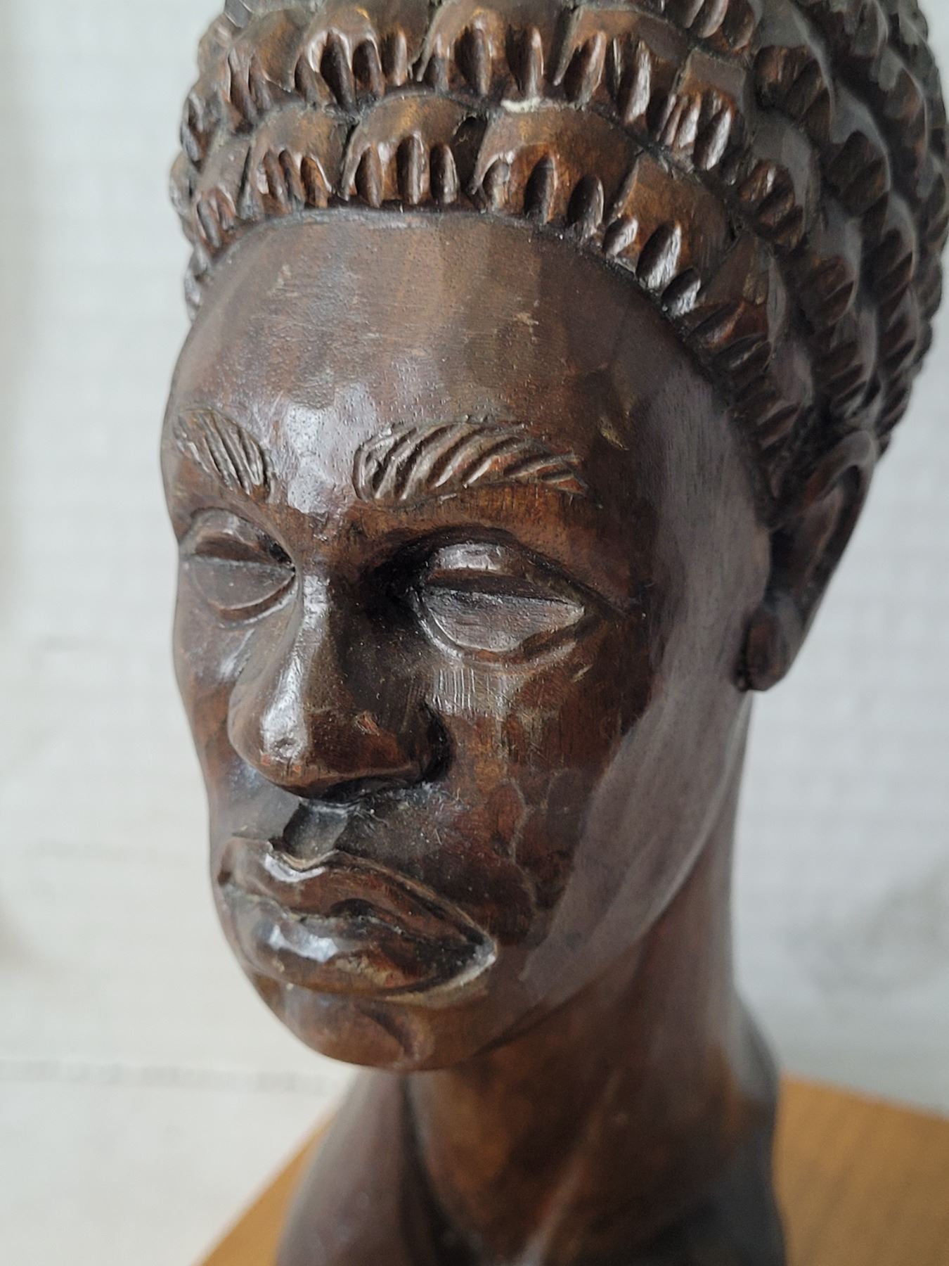 Vtg. Hand carved wooden traditional African bust sculpture. Made in Cuba.