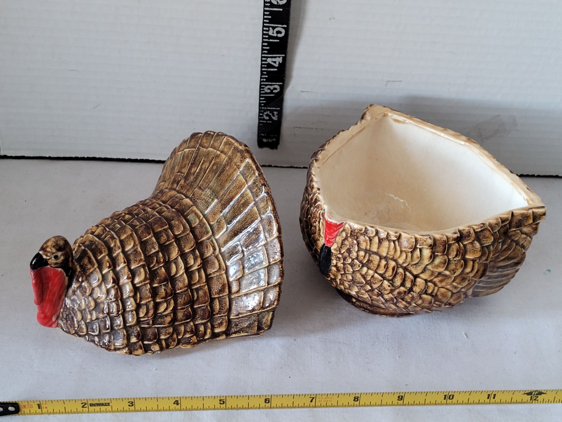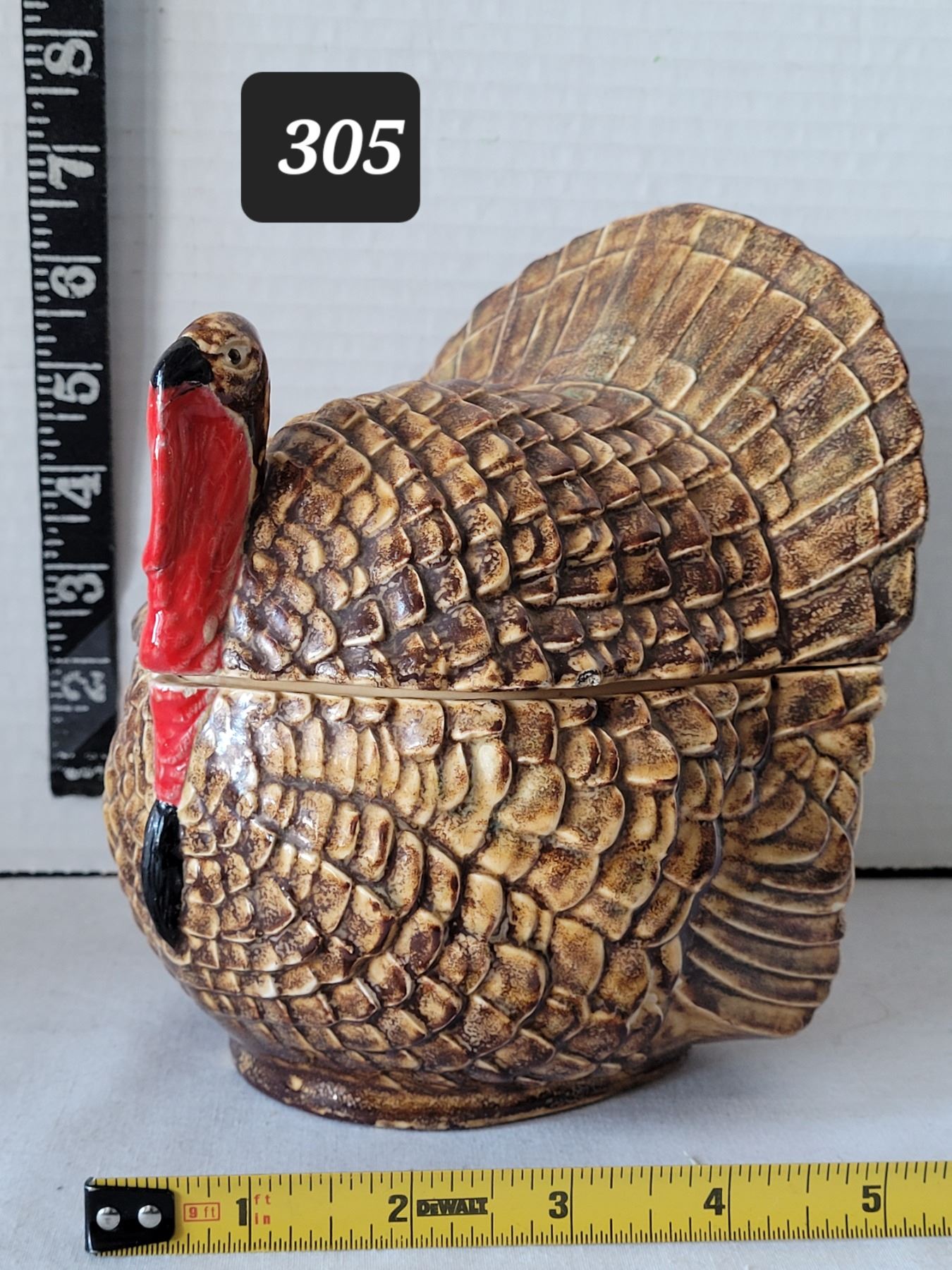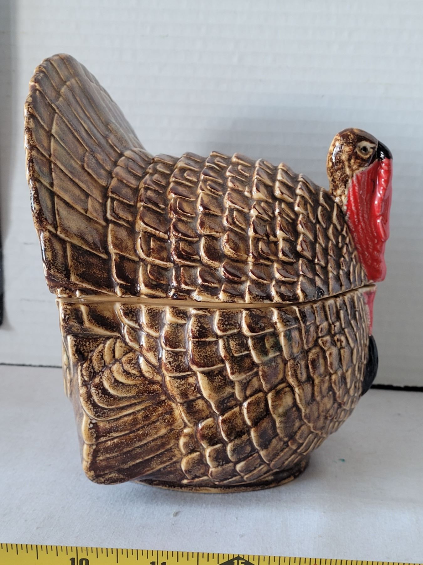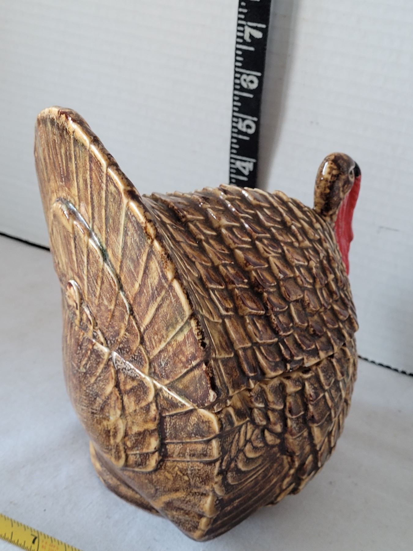 Vtg. Hand painted turkey cookie canister.