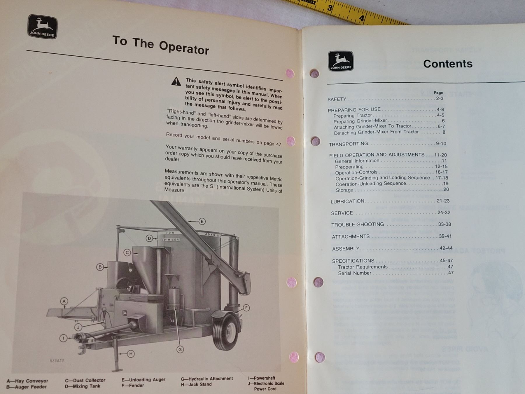 Vtg. John Deere Operator's manuals.