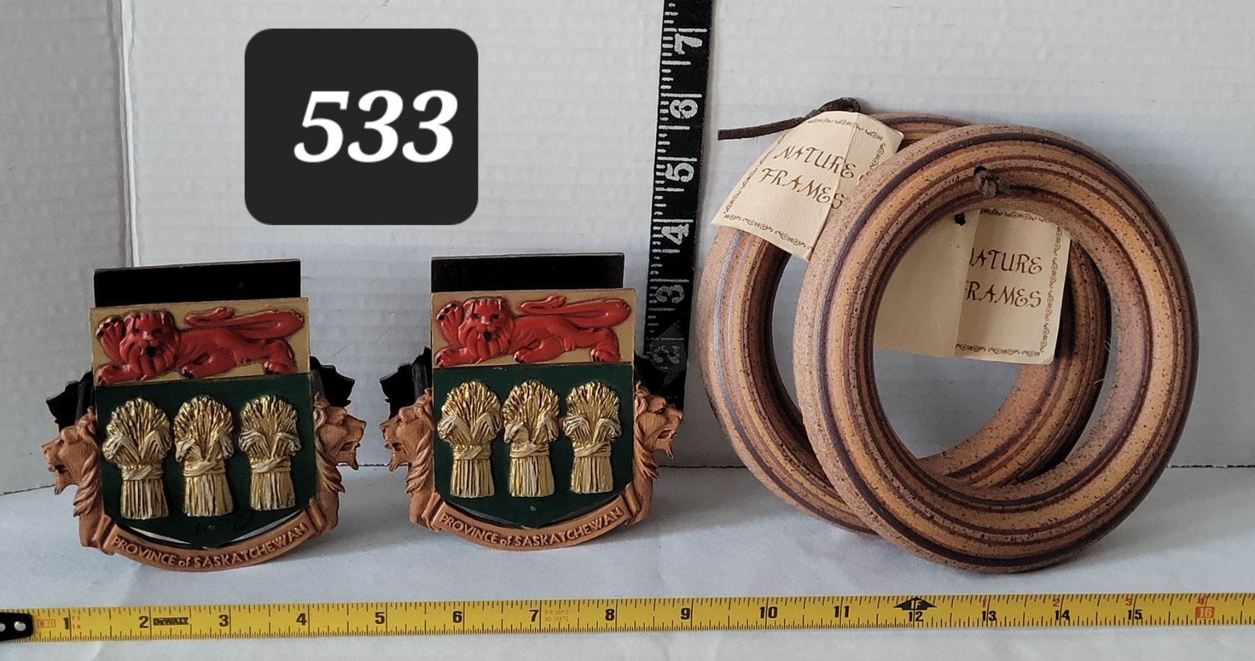 Vtg. John Walters & Sons “Durwood” Sask. Coat of arms napkin holders. Alberta pottery, clay nature frames.